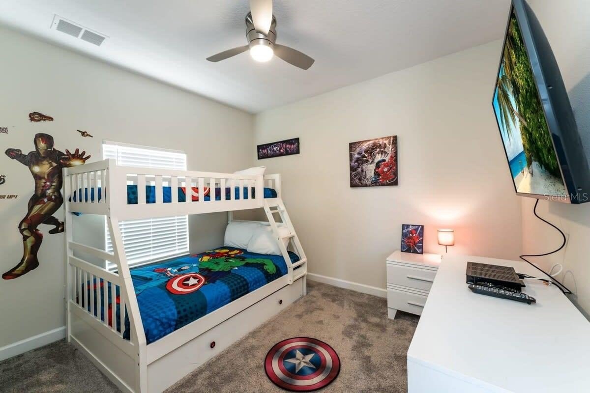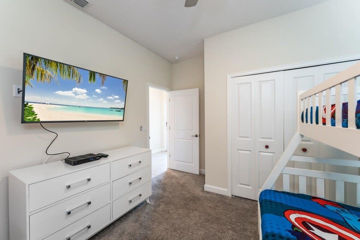 Built in 2020, it features 5 spacious bedrooms (including themed rooms that are a hit with families), 4 full bathrooms, an open-concept kitchen, dining, and living area, plus a private screened-in pool and covered patio. It’s being sold turnkey with luxury finishes and modern appliances — move-in or rental ready from day one.