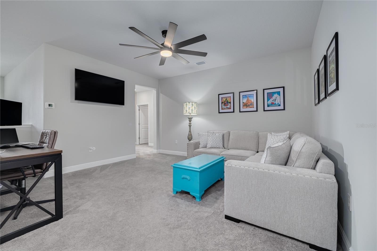 Upstairs, a spacious loft offers another hangout spot, while the serene master retreat pampers you with natural light, a huge walk-in closet, and a spa-style bath with double vanities and glass-enclosed shower. Two additional bedrooms and a full laundry room complete the picture.