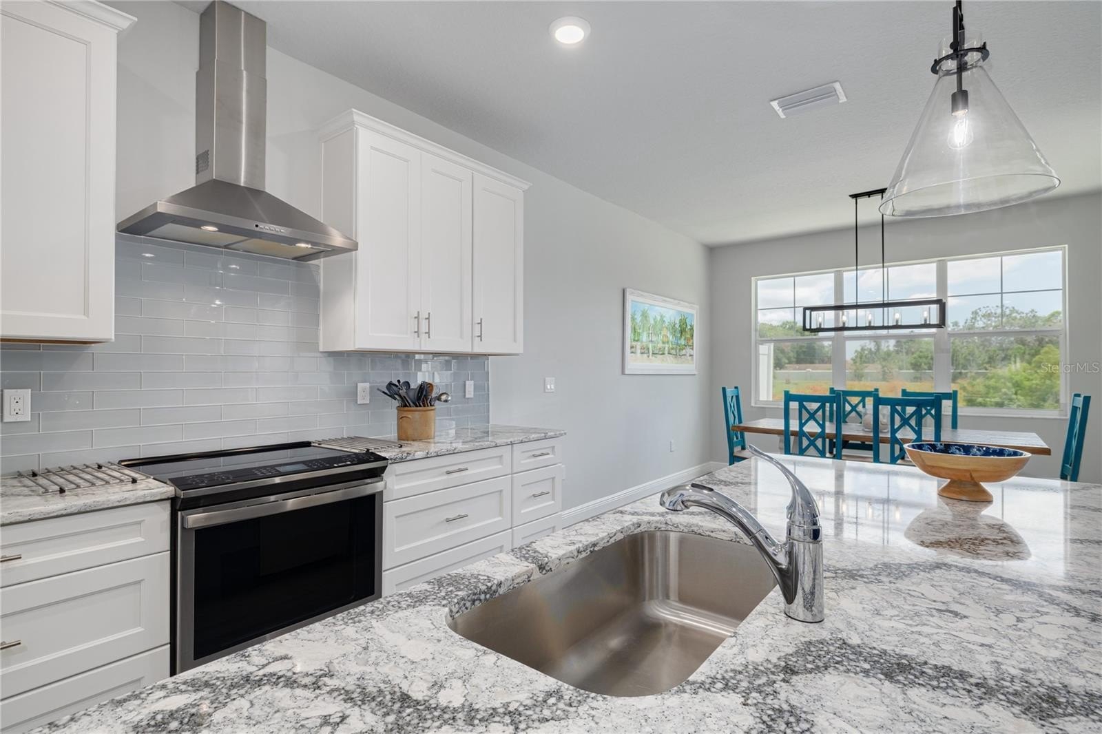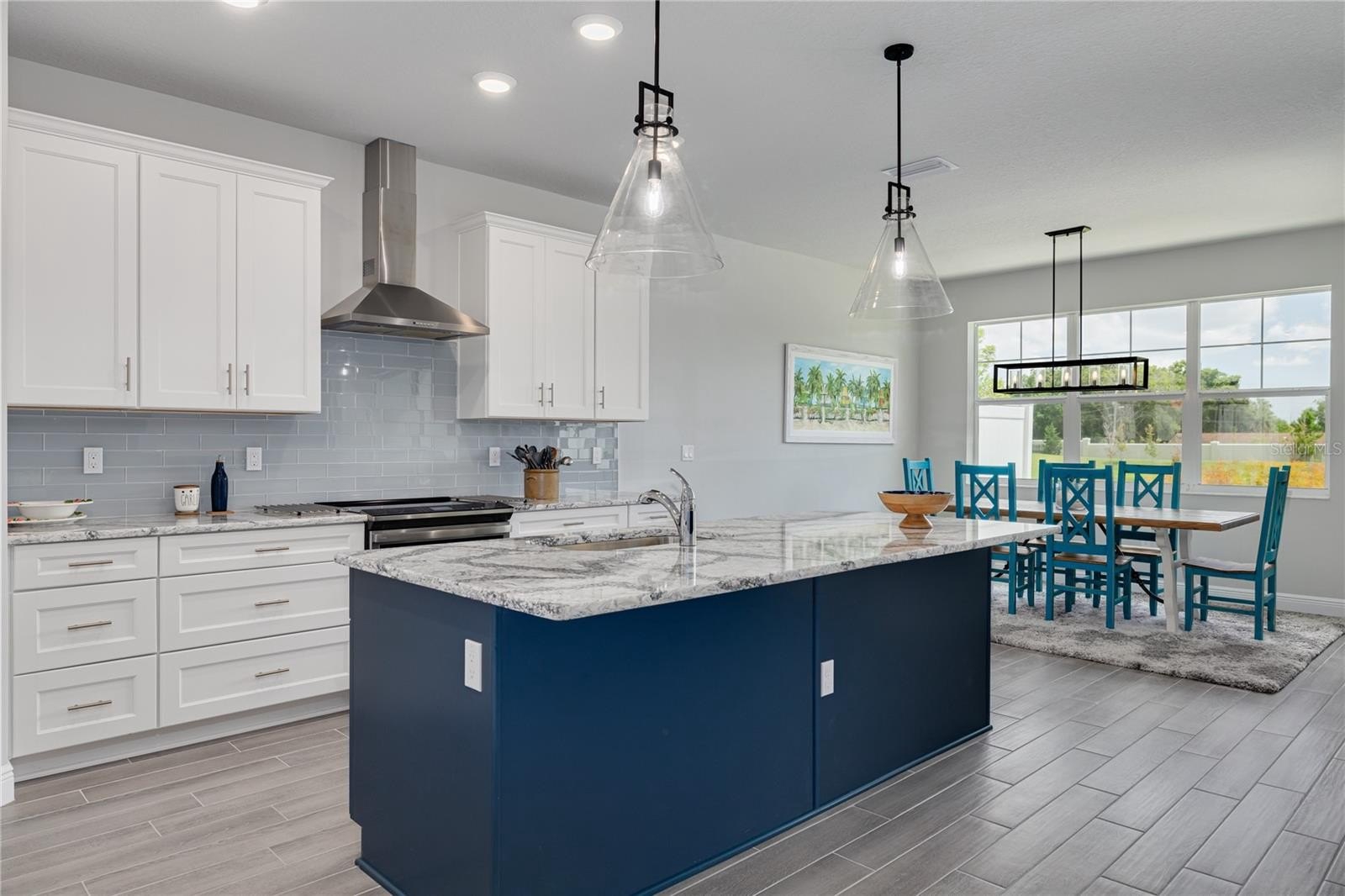 The heart of the home is the open great room, where a show-stopping kitchen takes center stage—white shaker cabinets, sparkling Cambria quartz countertops, premium GE Profile appliances with induction cooktop, and an oversized island big enough for everyone to gather around. A sunny breakfast area invites long weekend brunches and lively evenings of cards or board games.