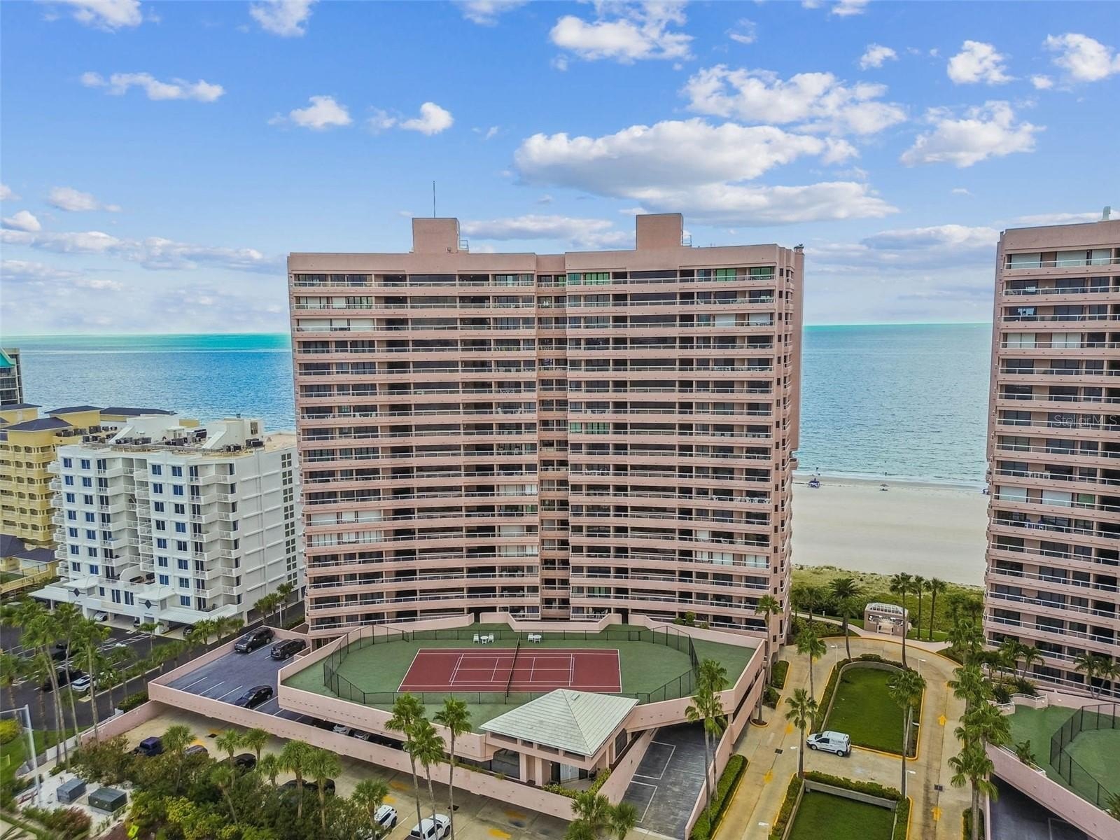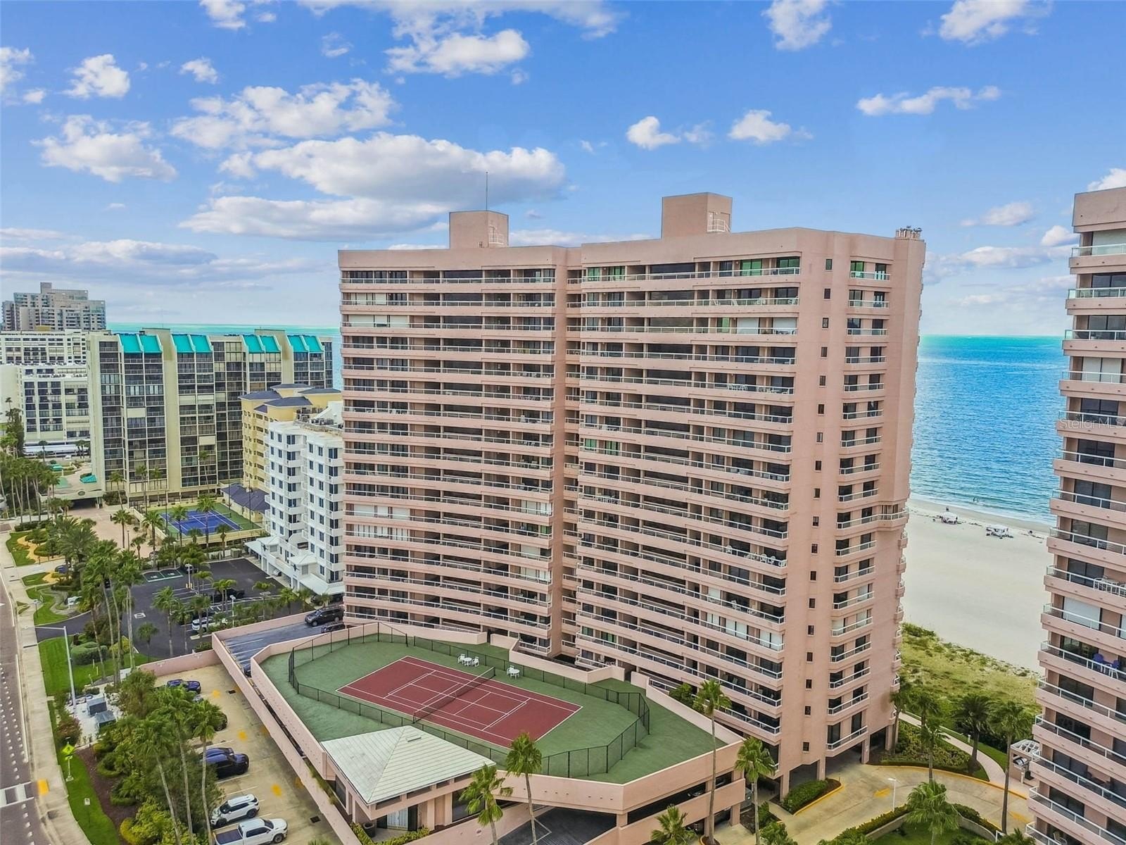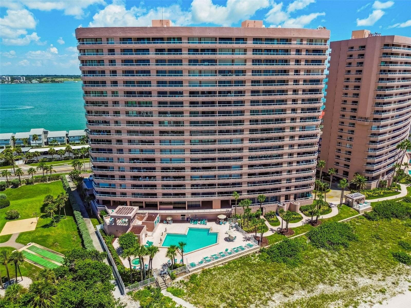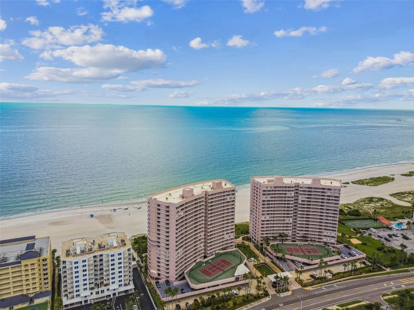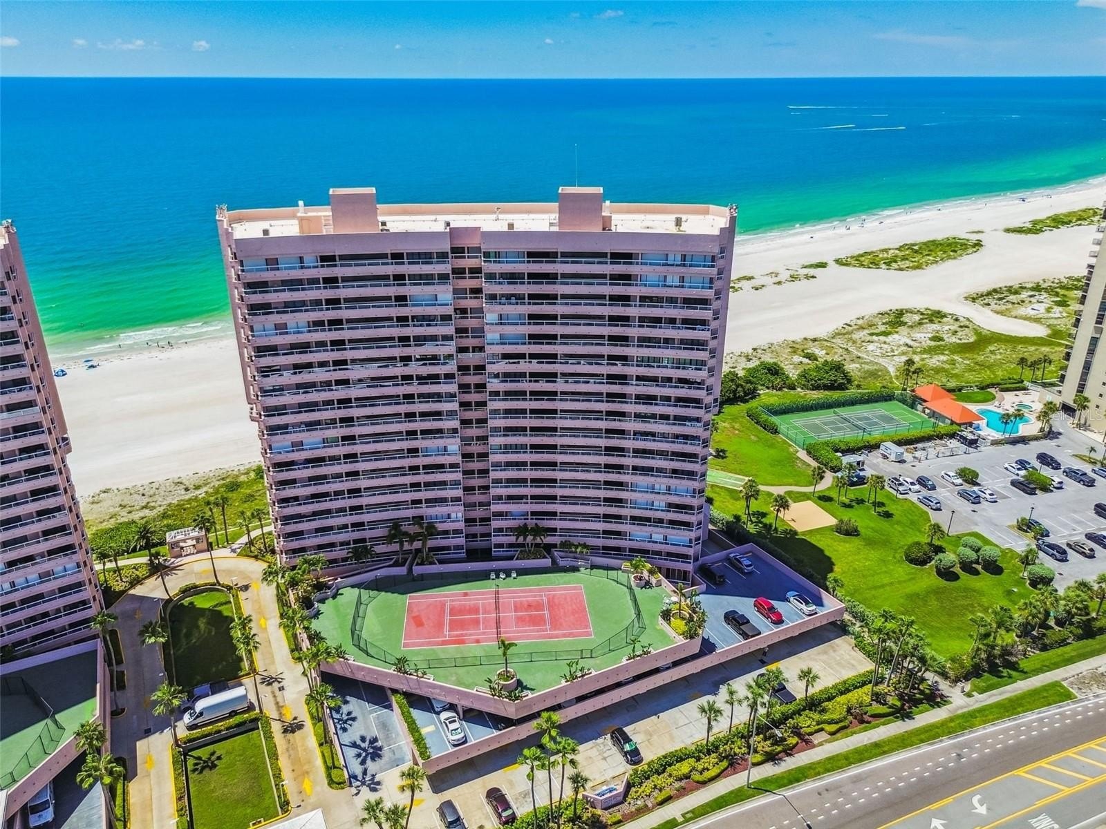 Step inside to a spacious, light-filled living and dining area that flows seamlessly onto one of the main balconies, creating an ideal space for entertaining. The updated kitchen features tons of cabinets, solid countertops, and stainless-steel appliances and its own balcony—the perfect spot for your morning coffee. The large master suite is a true retreat, boasting an en-suite bathroom with dual sinks, a large walk-in closet, and direct access to a private balcony to enjoy those beautiful beach sounds and views. Listen to the tranquility of the waves. The room also includes a custom wood wall desk, making it a functional and elegant space. Bedroom 2 is spacious with an en-suite bathroom that has a large tub/shower combination that overlooks those stunning water views. Huge walk-in closet. Enjoy the views from your own private balcony as well in this beautiful space. This beautiful building has Resort-Style Amenities that make every day feel like a vacation: Direct beach access,24-hour manned gate and security, Resort-style pool, Tennis and pickleball courts, fully equipped gym, sauna, and steam room, Billiard room and party/community room, and On-site building manager. With its prime location, exceptional views, and luxurious amenities, this property truly has it all. Don't miss your chance to own a piece of paradise in Sand Key. You can call this place home, or you can make this property a great investment and part of your portfolio as you can rent this unit at 2-week minimums. This home is being sold fully furnished, so bring your toothbrush and dip your toes right out your back door in the beautiful sand and crystal-clear waters in one of the top beaches in the country. This property is close to shopping, beach dining, marinas, just a 35-minute ride to Tampa International Airport, and minutes from all the action in Clearwater Beach. Call today for your private showing, paradise and solace awaits. You will never get tired of these stunning, breathtaking views!