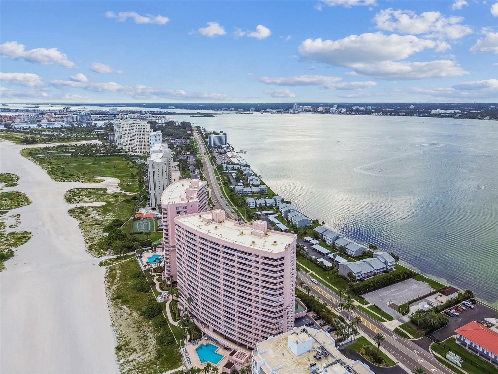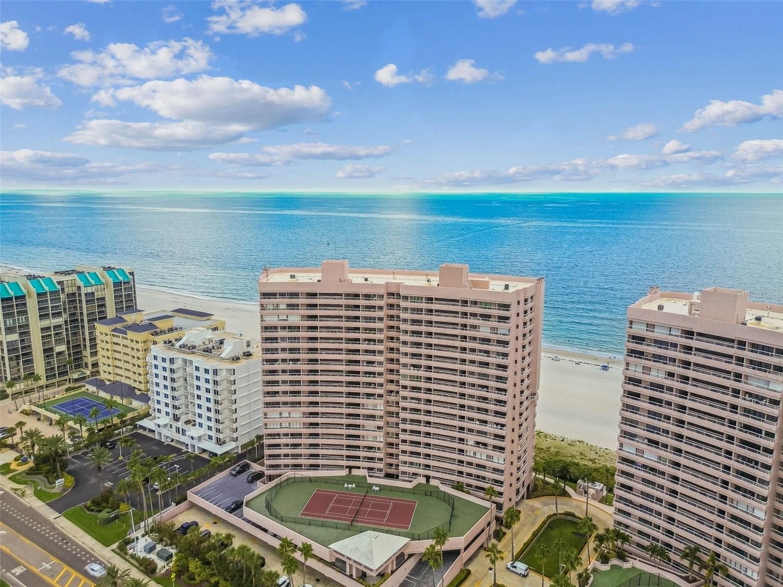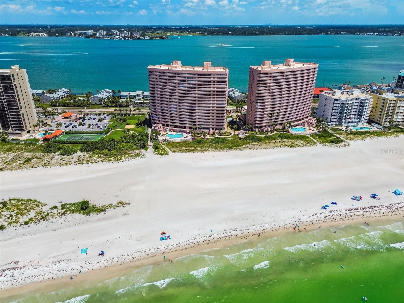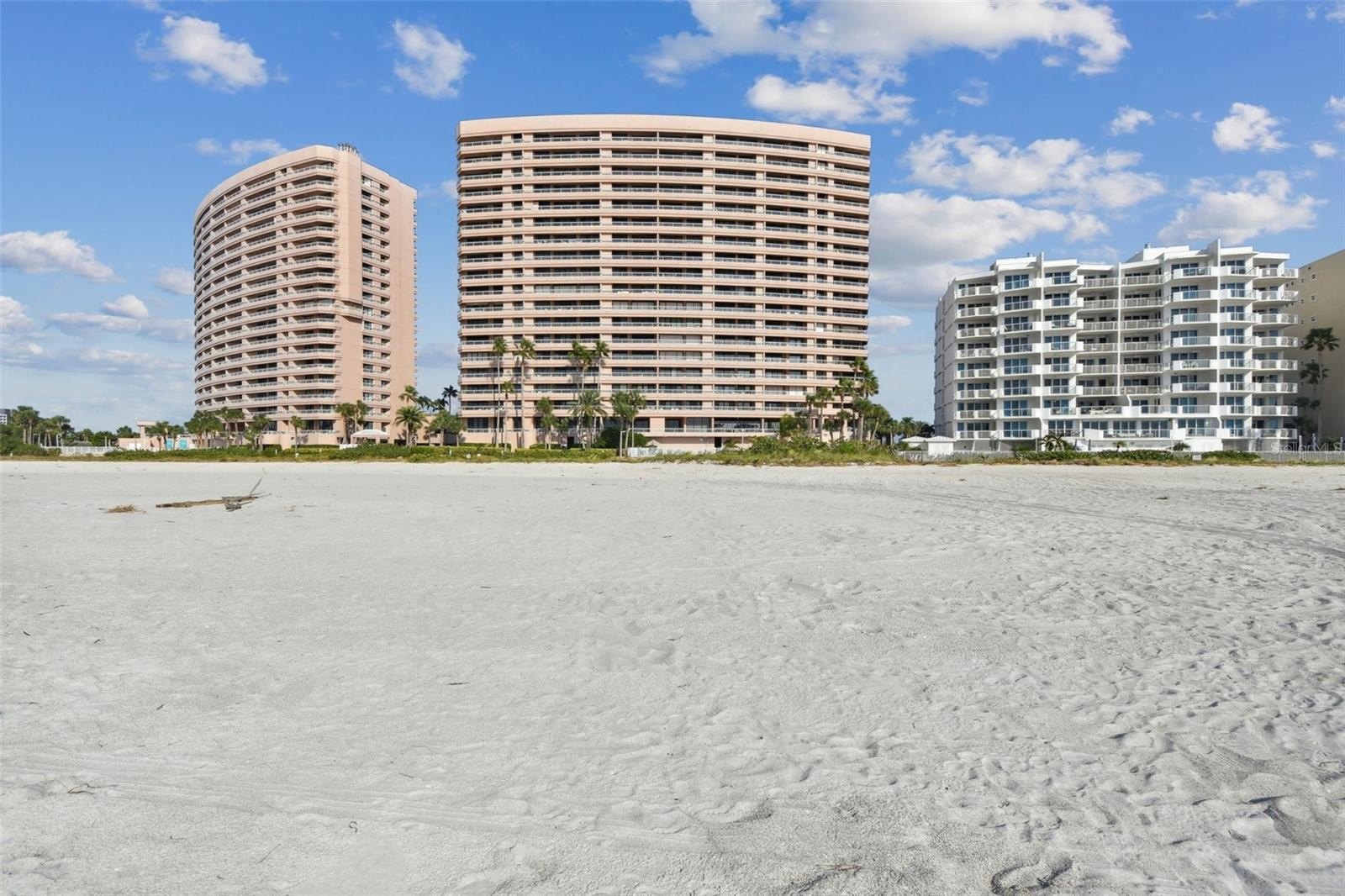 Step inside to a spacious, light-filled living and dining area that flows seamlessly onto one of the main balconies, creating an ideal space for entertaining. The updated kitchen features tons of cabinets, solid countertops, and stainless-steel appliances and its own balcony—the perfect spot for your morning coffee. The large master suite is a true retreat, boasting an en-suite bathroom with dual sinks, a large walk-in closet, and direct access to a private balcony to enjoy those beautiful beach sounds and views. Listen to the tranquility of the waves. The room also includes a custom wood wall desk, making it a functional and elegant space. Bedroom 2 is spacious with an en-suite bathroom that has a large tub/shower combination that overlooks those stunning water views. Huge walk-in closet. Enjoy the views from your own private balcony as well in this beautiful space. This beautiful building has Resort-Style Amenities that make every day feel like a vacation: Direct beach access,24-hour manned gate and security, Resort-style pool, Tennis and pickleball courts, fully equipped gym, sauna, and steam room, Billiard room and party/community room, and On-site building manager. With its prime location, exceptional views, and luxurious amenities, this property truly has it all. Don't miss your chance to own a piece of paradise in Sand Key. You can call this place home, or you can make this property a great investment and part of your portfolio as you can rent this unit at 2-week minimums. This home is being sold fully furnished, so bring your toothbrush and dip your toes right out your back door in the beautiful sand and crystal-clear waters in one of the top beaches in the country. This property is close to shopping, beach dining, marinas, just a 35-minute ride to Tampa International Airport, and minutes from all the action in Clearwater Beach. Call today for your private showing, paradise and solace awaits. You will never get tired of these stunning, breathtaking views!