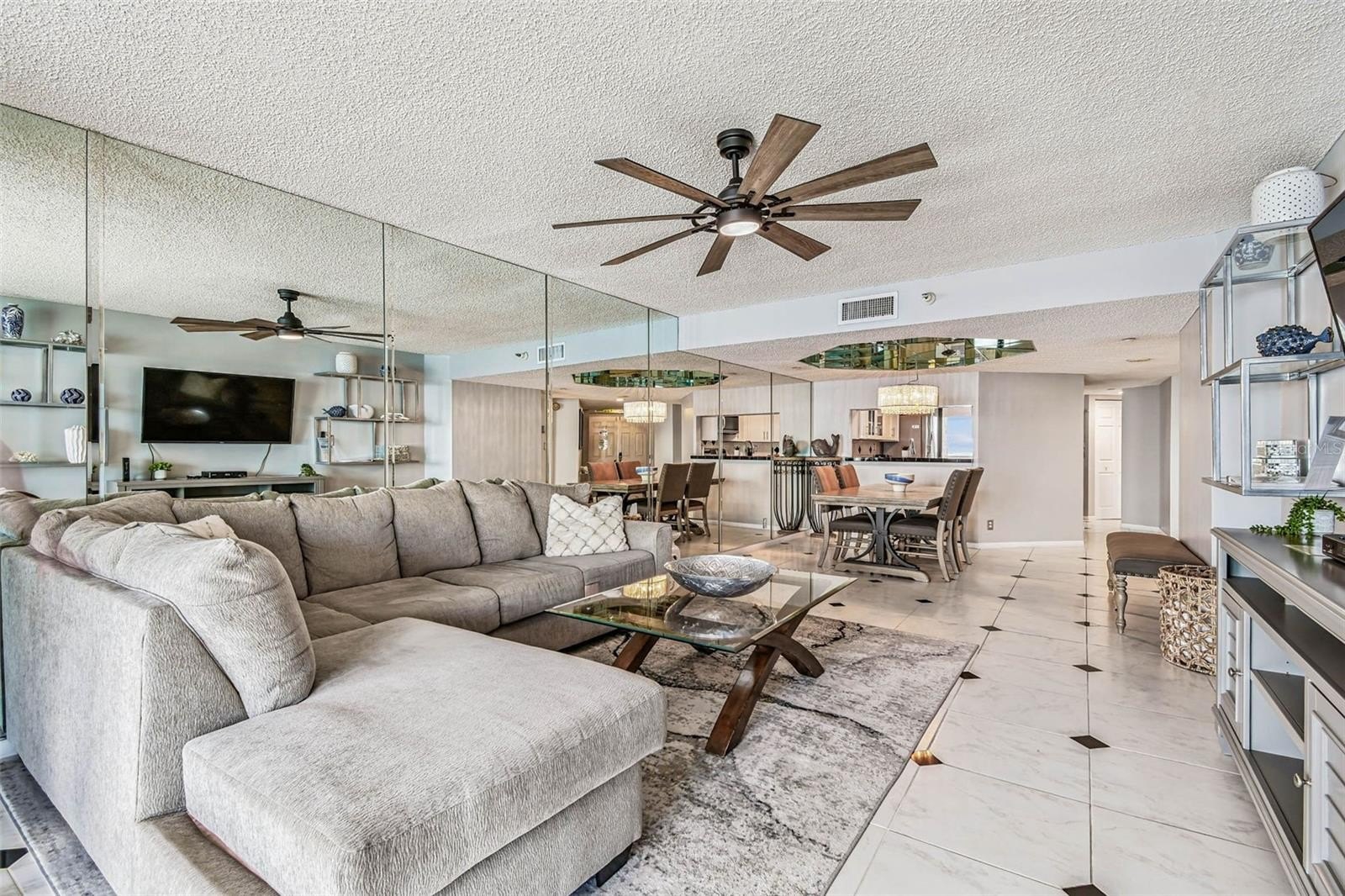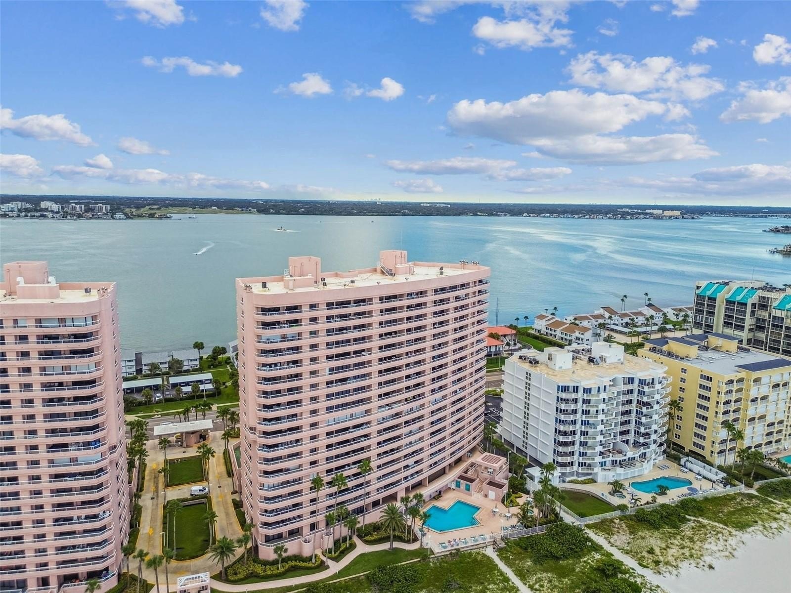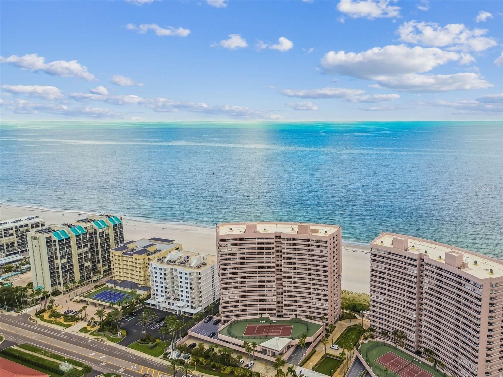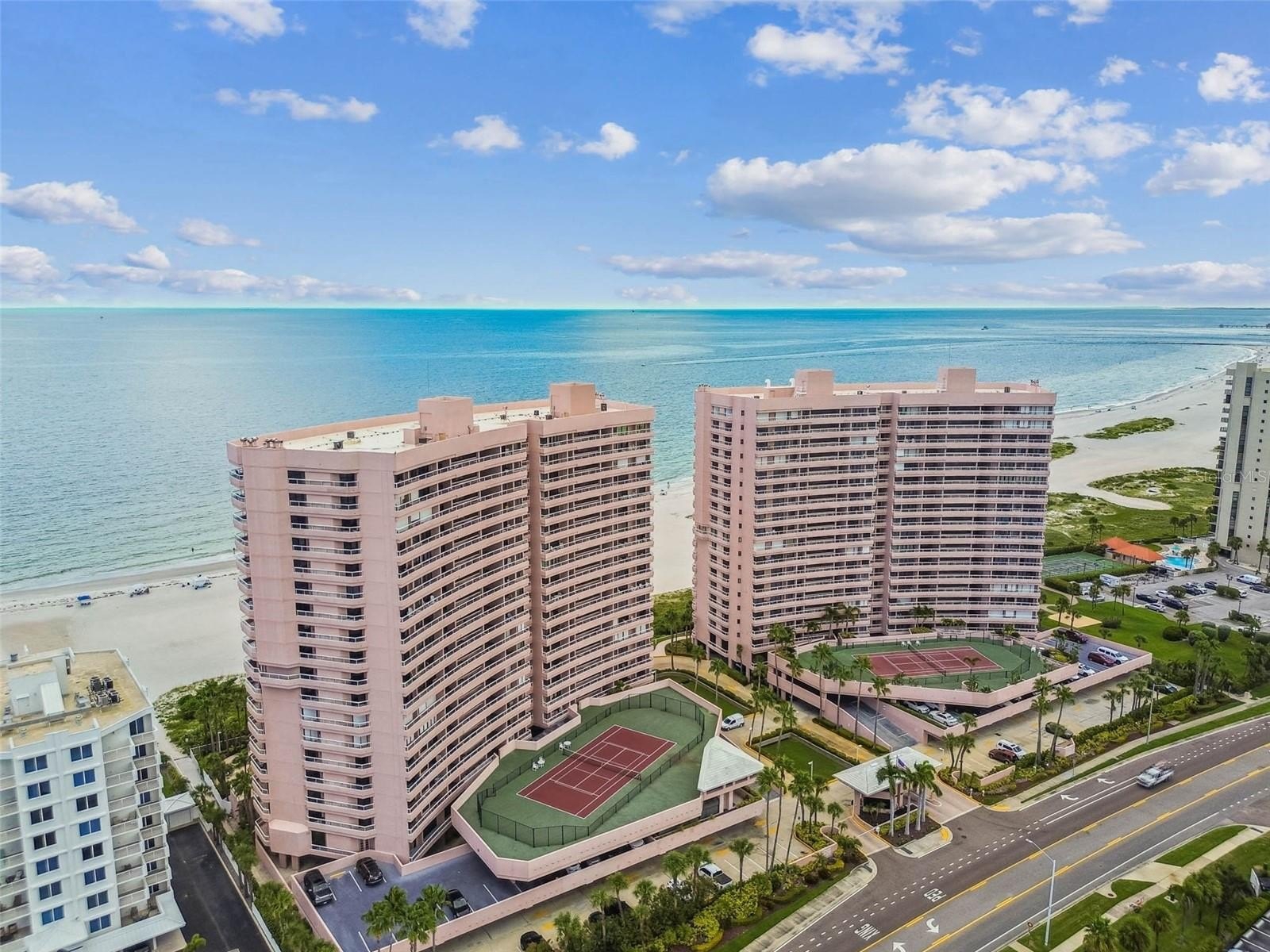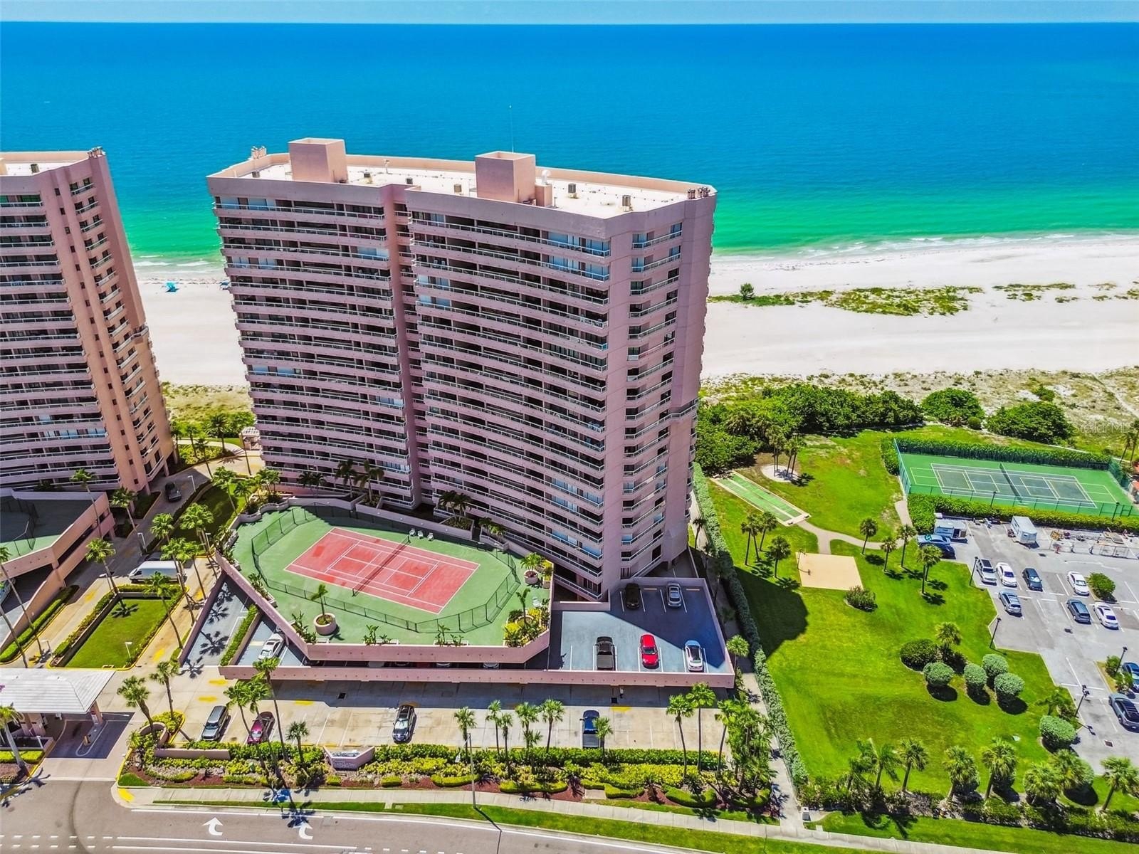 Step inside to a spacious, light-filled living and dining area that flows seamlessly onto one of the main balconies, creating an ideal space for entertaining. The updated kitchen features tons of cabinets, solid countertops, and stainless-steel appliances and its own balcony—the perfect spot for your morning coffee. The large master suite is a true retreat, boasting an en-suite bathroom with dual sinks, a large walk-in closet, and direct access to a private balcony to enjoy those beautiful beach sounds and views. Listen to the tranquility of the waves. The room also includes a custom wood wall desk, making it a functional and elegant space. Bedroom 2 is spacious with an en-suite bathroom that has a large tub/shower combination that overlooks those stunning water views. Huge walk-in closet. Enjoy the views from your own private balcony as well in this beautiful space. This beautiful building has Resort-Style Amenities that make every day feel like a vacation: Direct beach access,24-hour manned gate and security, Resort-style pool, Tennis and pickleball courts, fully equipped gym, sauna, and steam room, Billiard room and party/community room, and On-site building manager. With its prime location, exceptional views, and luxurious amenities, this property truly has it all. Don't miss your chance to own a piece of paradise in Sand Key. You can call this place home, or you can make this property a great investment and part of your portfolio as you can rent this unit at 2-week minimums. This home is being sold fully furnished, so bring your toothbrush and dip your toes right out your back door in the beautiful sand and crystal-clear waters in one of the top beaches in the country. This property is close to shopping, beach dining, marinas, just a 35-minute ride to Tampa International Airport, and minutes from all the action in Clearwater Beach. Call today for your private showing, paradise and solace awaits. You will never get tired of these stunning, breathtaking views!