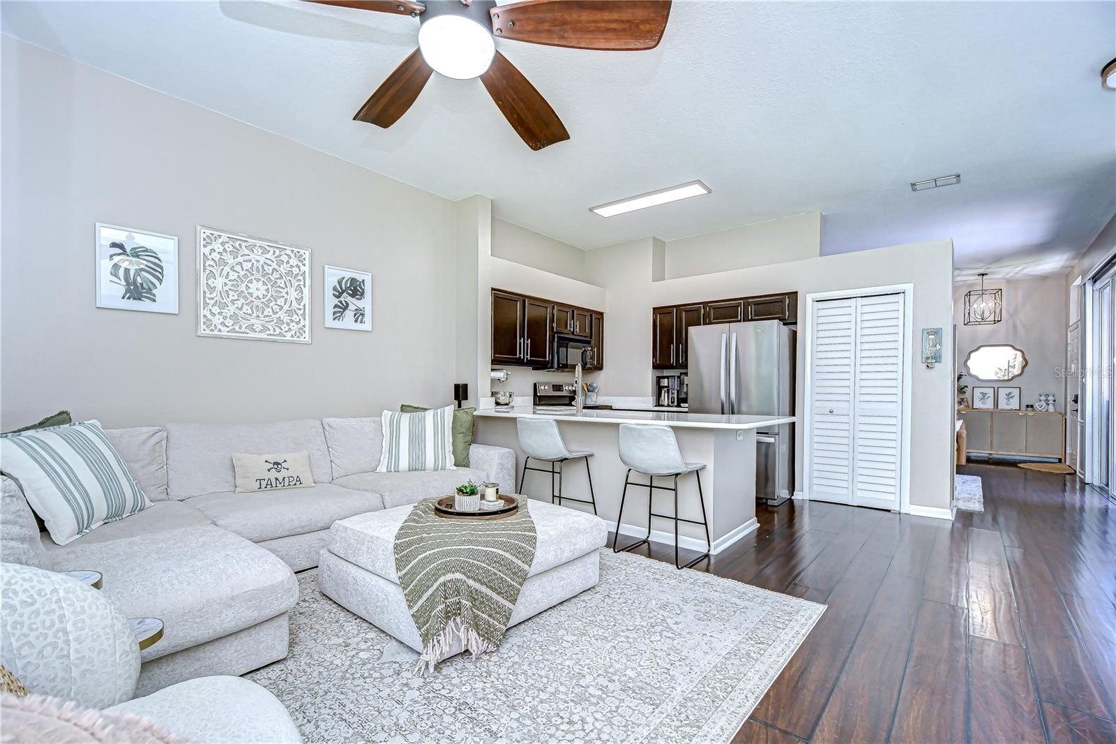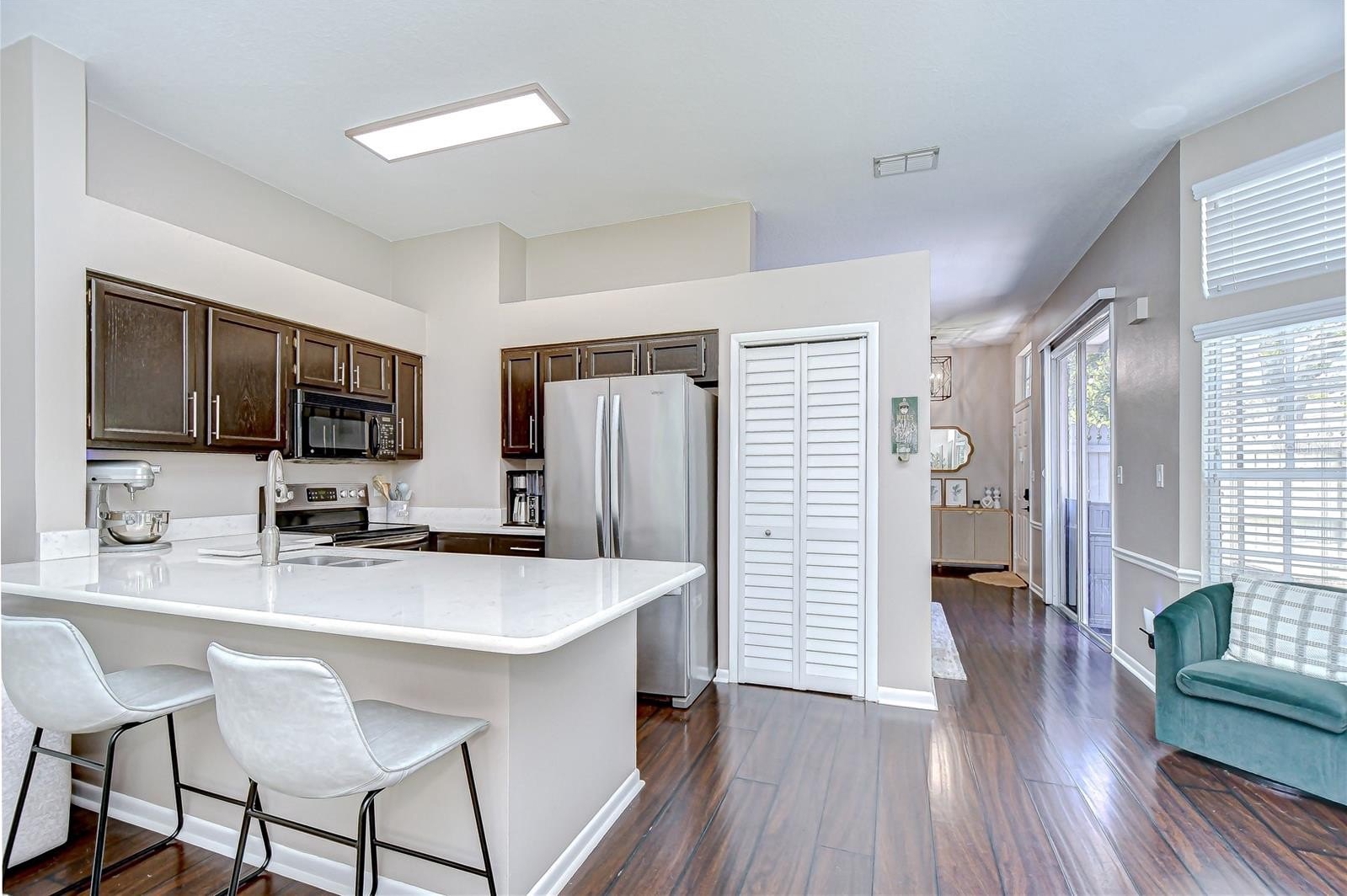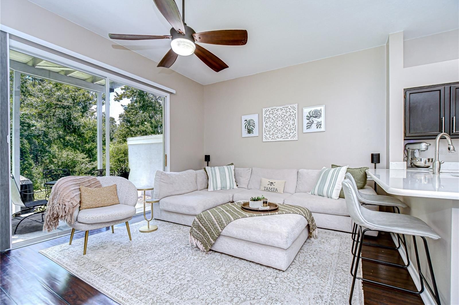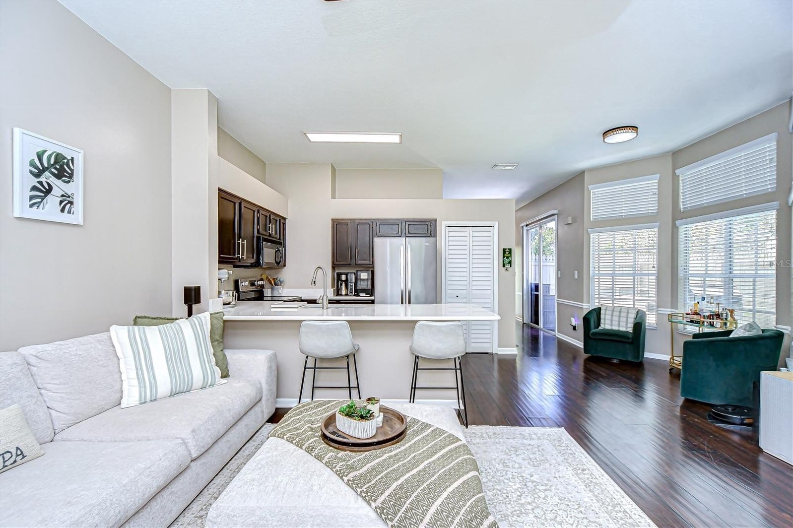 CARROLLWOOD VILLAGE GEM! Light and bright END UNIT 2 bedroom/2.5 bath/1-car garage townhome with PRIVATE CONSERVATION VIEWS in the coveted community of CHARDONNAY. This home has been lovingly cared for by the owners. Updates include NEW ROOF 2025; NEW A/C 2024; NEW INTERIOR PAINT on first level and up the stairs 2025; NEW low-flow high toilets in primary and downstairs half bath 2025; Stainless Steel French Door refrigerator 2023; newer light fixtures throughout, remote fan and light for second bedroom; custom slider window shades; RING doorbell; SMART thermostat. Additional features include expanded quartz countertop in kitchen with bar seating; remodeled half bath; granite countertops in both upstairs bathrooms, laminate flooring throughout living areas and primary bedroom. Laundry closet is conveniently located upstairs between the two bedrooms. The primary bedroom has a spacious private bath with dual sinks, garden tub, shower and oversized walk-in closet. The extra large second bedroom with vaulted ceiling has an ensuite bath with dual sinks and tub/shower, and can also be accessed from the hallway. THREE OPTIONS FOR OUTDOOR LIVING SPACE: private side patio perfect for lounging and grilling, back covered deck off family room and second floor balcony off primary bedroom where you can relax and enjoy beautiful sunsets along with the sights and sounds of nature. PARKING FOR THREE VEHICLES (single garage and two driveway spaces). Chardonnay monthly HOA of $172 includes community pool with new patio furniture, grounds and driveway maintenance, exterior painting and private roads. Carrollwood Village Master HOA is paid annually ($670.46) and amenities include playgrounds, tennis, pickleball and basketball courts and scenic picnic area along with miles of sidewalk for walking, jogging and biking. Nearby Carrollwood Park features walking paths, large pond with fountain and walking bridge, two dog parks, splash pad, work out stations and pavilions which can be rented for private parties. Carrollwood Country Club has optional golf, tennis and social memberships available for additional fees. Convenient shopping and restaurants in the Village. Easy access to the Veteran's Expressway (589). LOCATION! LOCATION! LOCATION! This townhome gives you the opportunity to enjoy all the amenities, conveniences and beauty that Carrollwood Village affords in a central Tampa location.