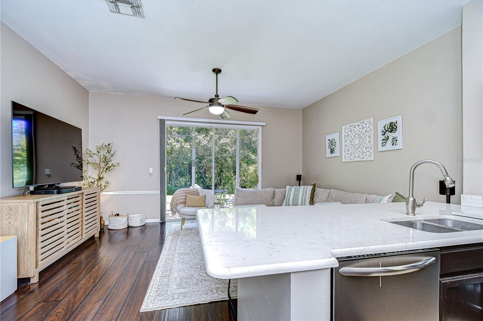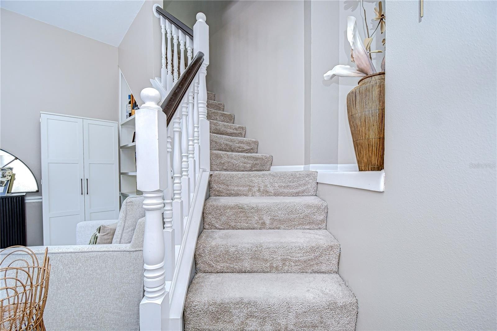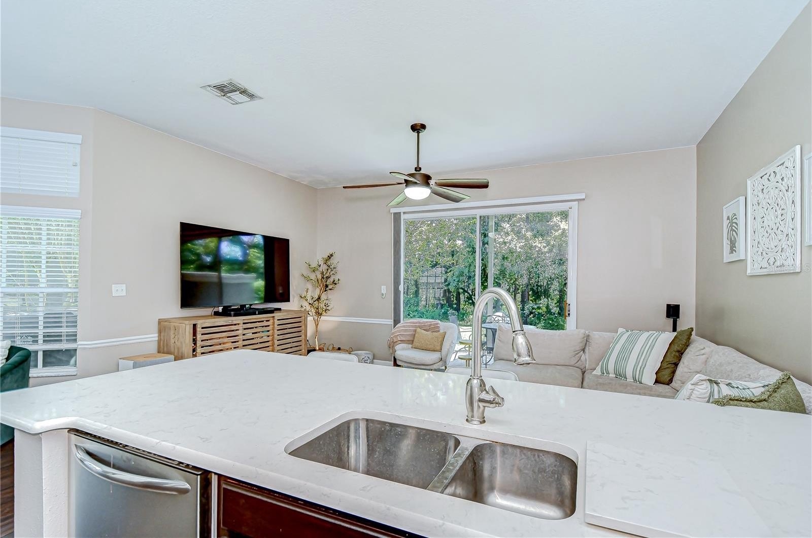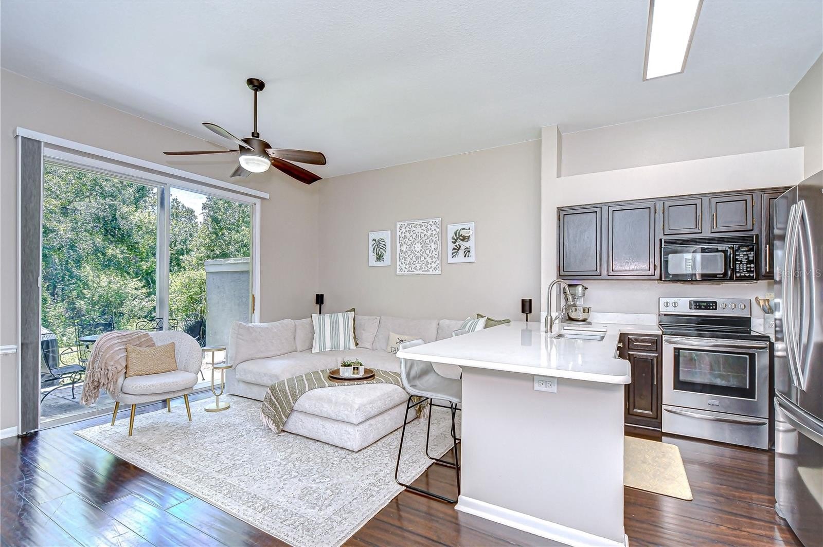 CARROLLWOOD VILLAGE GEM! Light and bright END UNIT 2 bedroom/2.5 bath/1-car garage townhome with PRIVATE CONSERVATION VIEWS in the coveted community of CHARDONNAY. This home has been lovingly cared for by the owners. Updates include NEW ROOF 2025; NEW A/C 2024; NEW INTERIOR PAINT on first level and up the stairs 2025; NEW low-flow high toilets in primary and downstairs half bath 2025; Stainless Steel French Door refrigerator 2023; newer light fixtures throughout, remote fan and light for second bedroom; custom slider window shades; RING doorbell; SMART thermostat. Additional features include expanded quartz countertop in kitchen with bar seating; remodeled half bath; granite countertops in both upstairs bathrooms, laminate flooring throughout living areas and primary bedroom. Laundry closet is conveniently located upstairs between the two bedrooms. The primary bedroom has a spacious private bath with dual sinks, garden tub, shower and oversized walk-in closet. The extra large second bedroom with vaulted ceiling has an ensuite bath with dual sinks and tub/shower, and can also be accessed from the hallway. THREE OPTIONS FOR OUTDOOR LIVING SPACE: private side patio perfect for lounging and grilling, back covered deck off family room and second floor balcony off primary bedroom where you can relax and enjoy beautiful sunsets along with the sights and sounds of nature. PARKING FOR THREE VEHICLES (single garage and two driveway spaces). Chardonnay monthly HOA of $172 includes community pool with new patio furniture, grounds and driveway maintenance, exterior painting and private roads. Carrollwood Village Master HOA is paid annually ($670.46) and amenities include playgrounds, tennis, pickleball and basketball courts and scenic picnic area along with miles of sidewalk for walking, jogging and biking. Nearby Carrollwood Park features walking paths, large pond with fountain and walking bridge, two dog parks, splash pad, work out stations and pavilions which can be rented for private parties. Carrollwood Country Club has optional golf, tennis and social memberships available for additional fees. Convenient shopping and restaurants in the Village. Easy access to the Veteran's Expressway (589). LOCATION! LOCATION! LOCATION! This townhome gives you the opportunity to enjoy all the amenities, conveniences and beauty that Carrollwood Village affords in a central Tampa location.