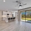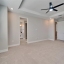 Inside, the open-concept layout flows seamlessly from the expansive great room to a stylish kitchen that wows with quartz countertops, a large prep-and-gather island, upgraded cabinetry with pull-out shelving, and top-tier stainless appliances. Cordless blinds, designer fans, and custom walk-in closet systems add both function and flair.