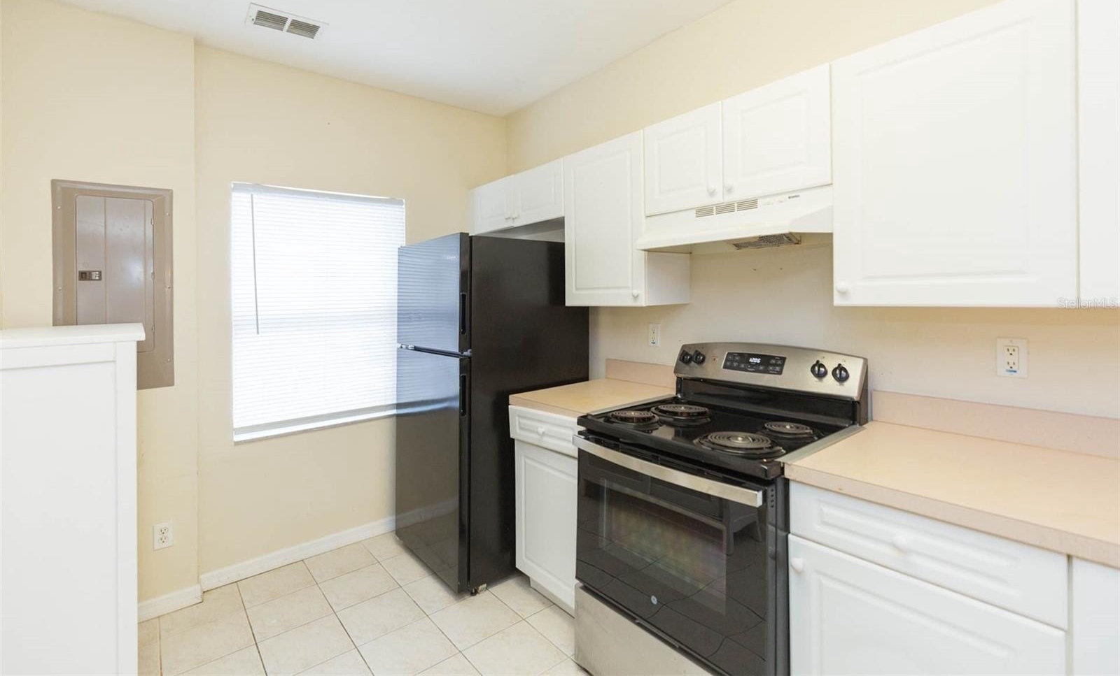Step inside to discover a spacious living area that seamlessly flows into a kitchen equipped with stainless steel oven, dishwasher, and ample cabinet space. The primary suite offers a private retreat with an en-suite bathroom and generous closet space. One additional bedroom provide flexibility for guests or a home office.