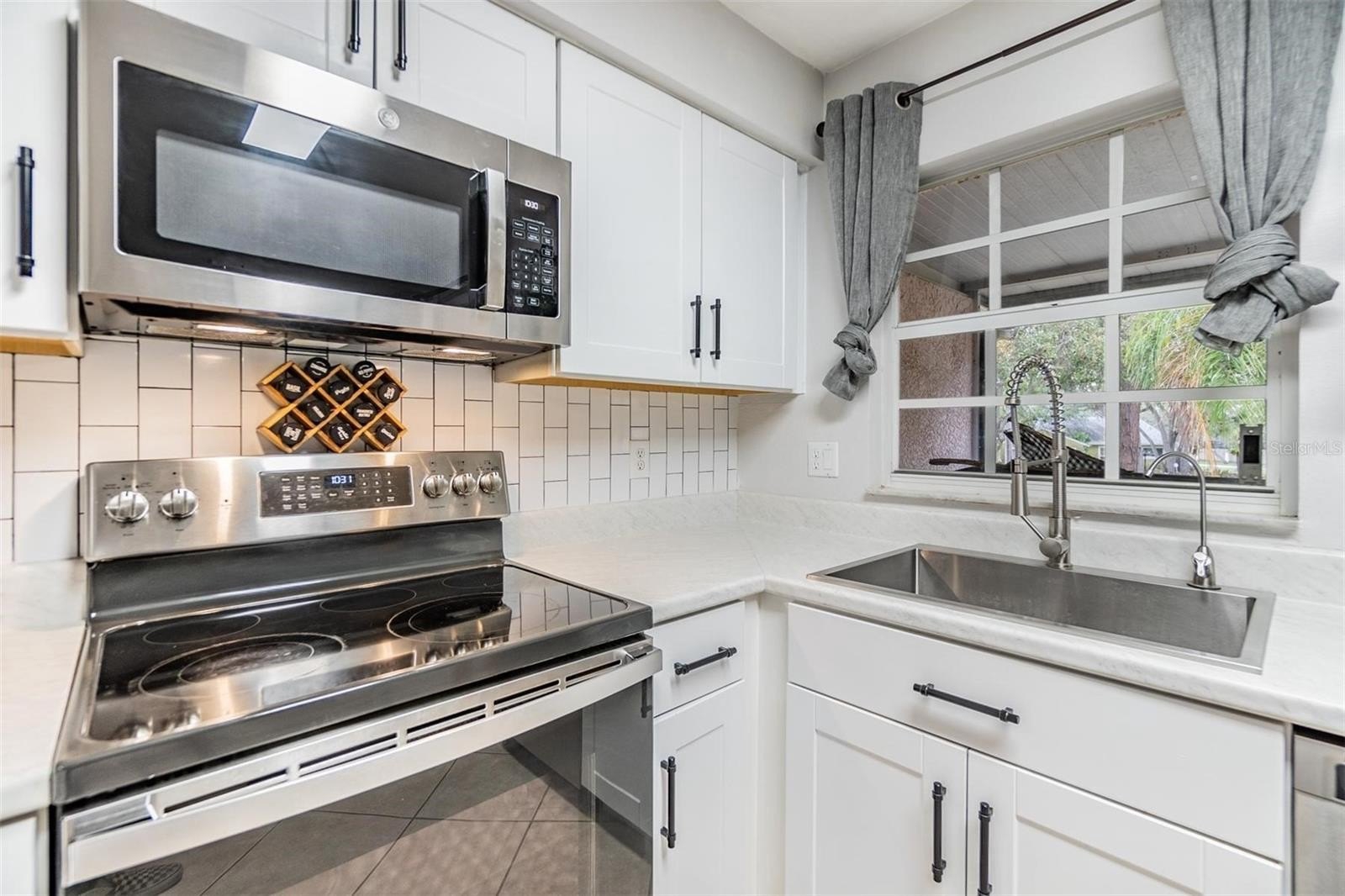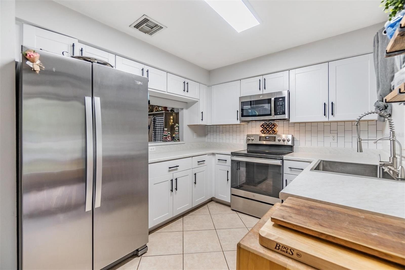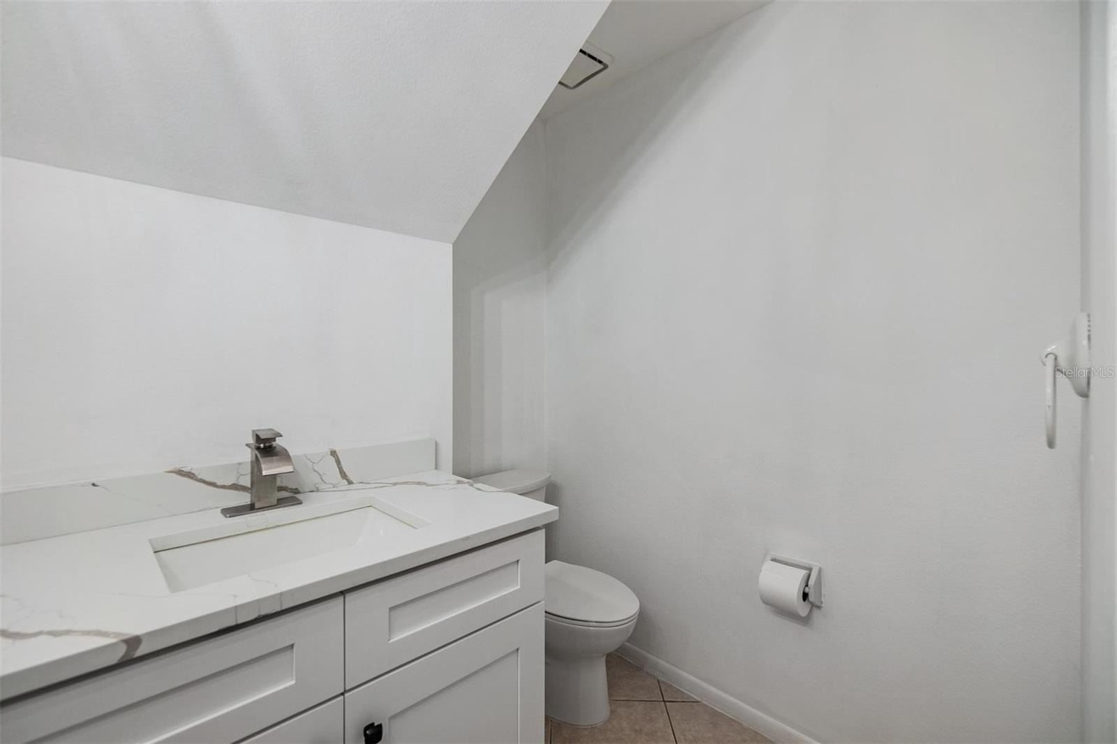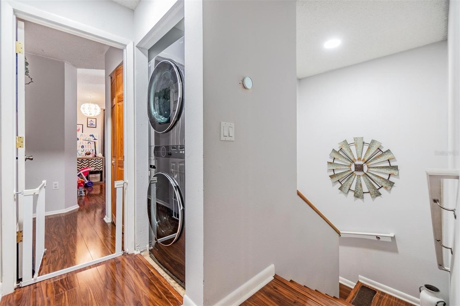 On the main level, you’ll also find a beautifully updated half bath and a deep walk-in storage closet under the stairs. Upstairs, a convenient laundry closet with stackable washer & dryer (included) makes everyday living easy.