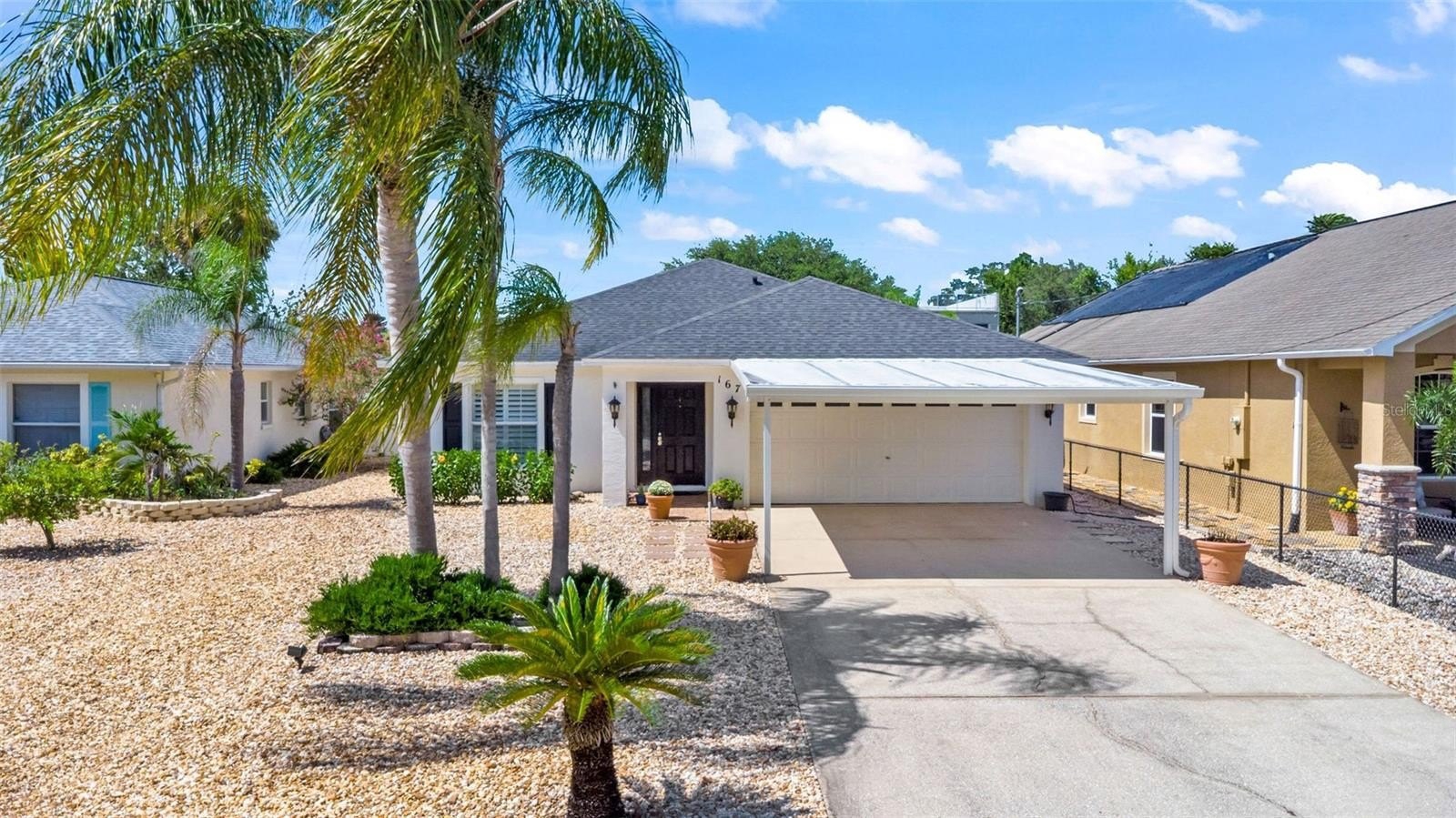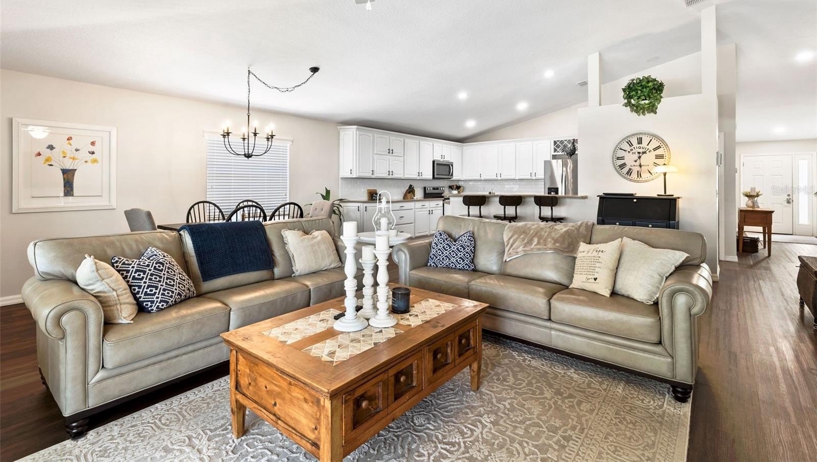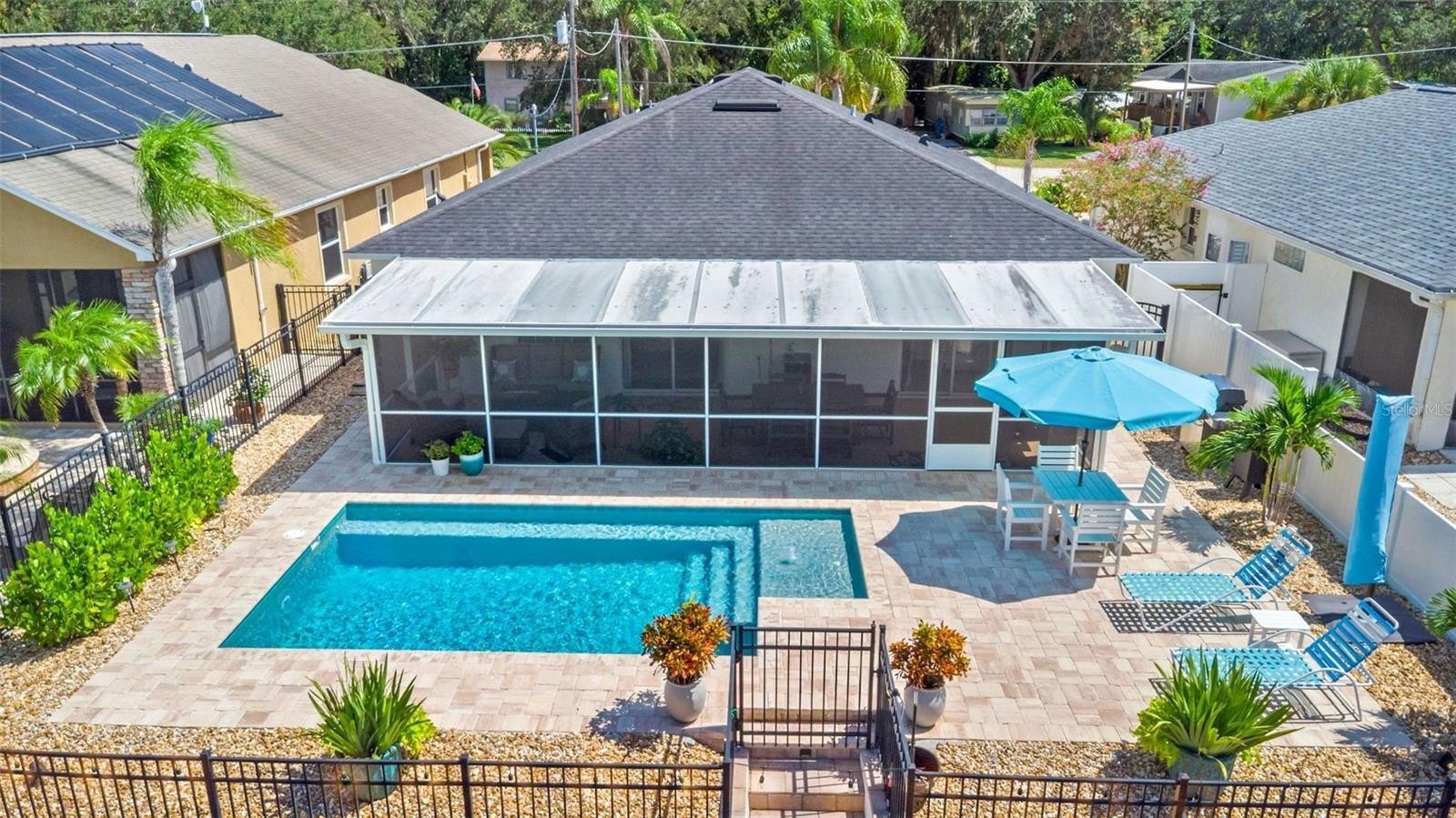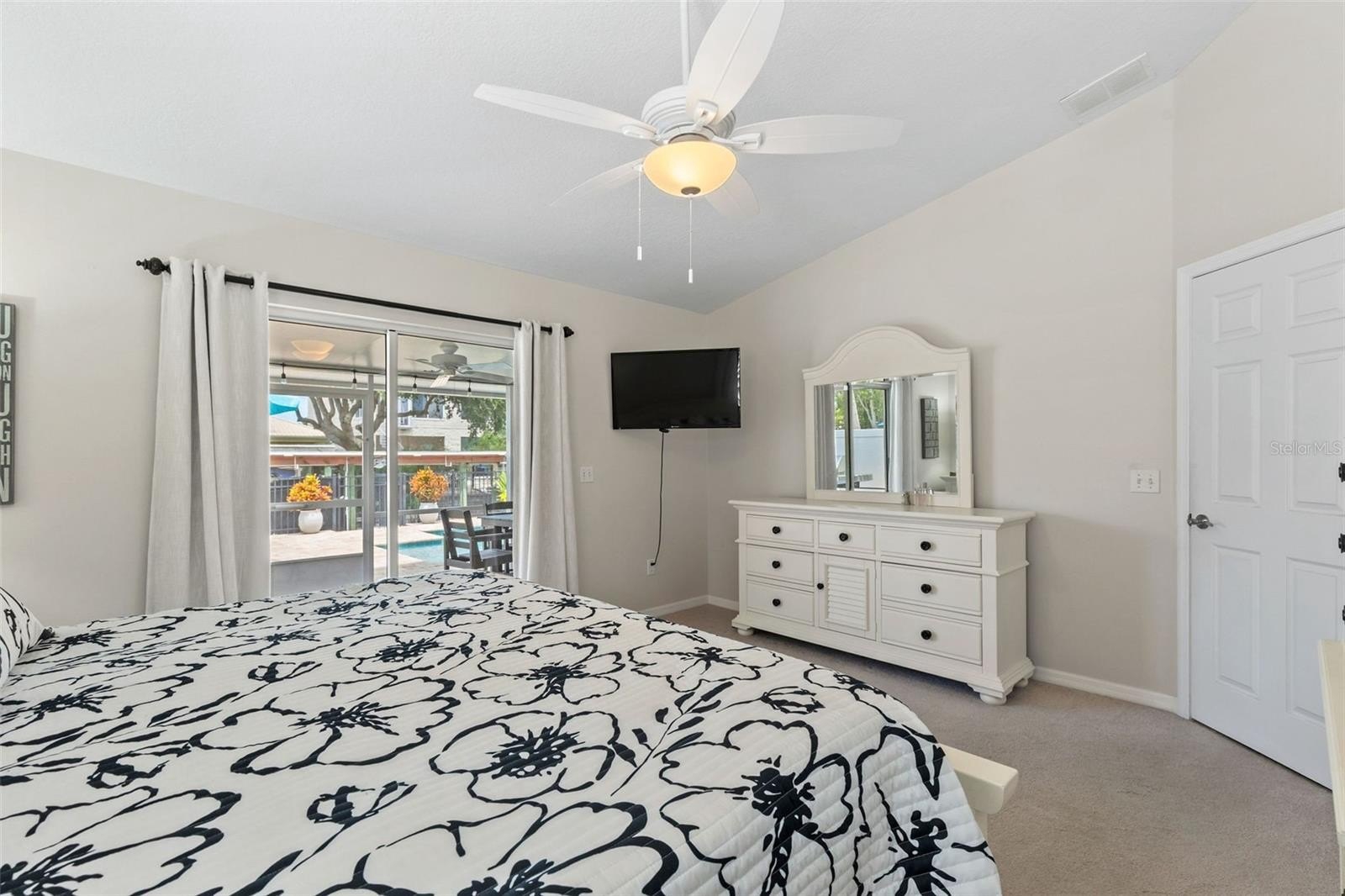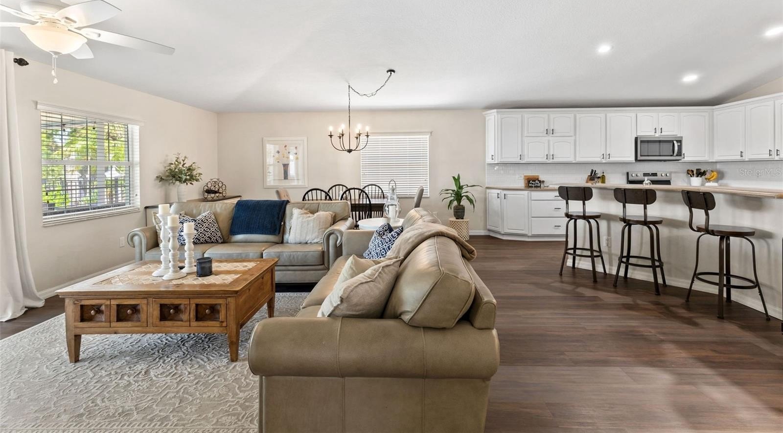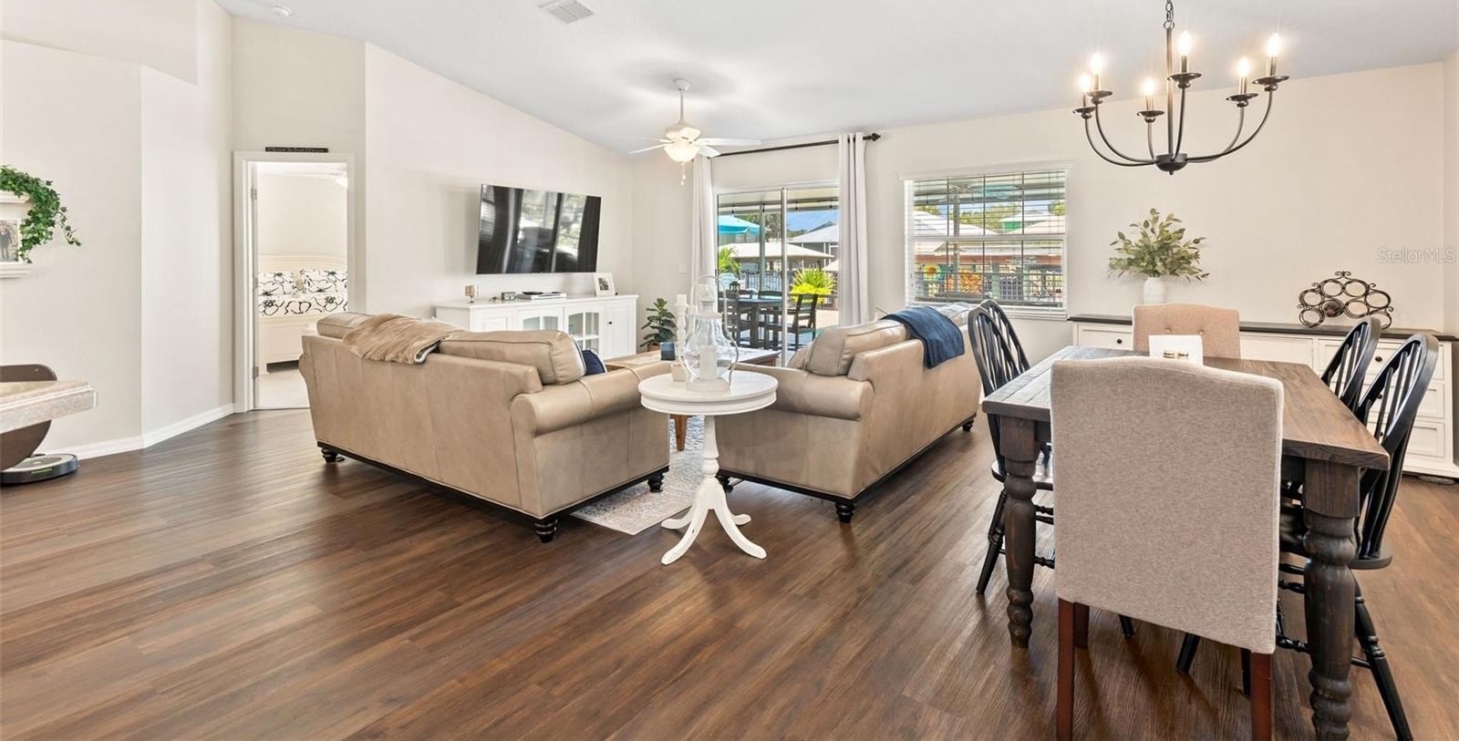 The home itself is immaculate, offering bright, open living spaces that flow seamlessly to the outdoors. The large kitchen is the heart of the home with tons of beautiful white cabinets and breakfast bar. The entire home has newer vinyl flooring, new roof and A/C in 2017 and 2018. The master suite has a custom-designed walk-in closet, and a slider to the large, newly screened patio and private backyard retreat where a new sparkling pool (2024), expansive paved patio, and waterfront views create the perfect setting for entertaining, relaxing, or soaking up the Florida sunshine. This home was designed for those who want it all—luxury, comfort, and the best of Florida’s outdoor living. With everything newer, and the no-maintenance yard, there's nothing left to do but have fun!