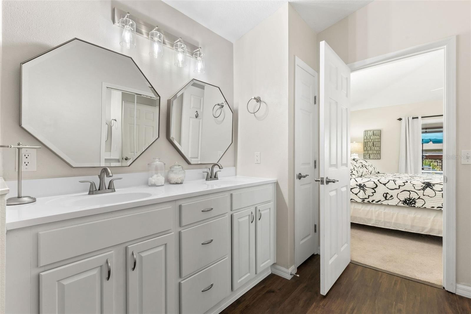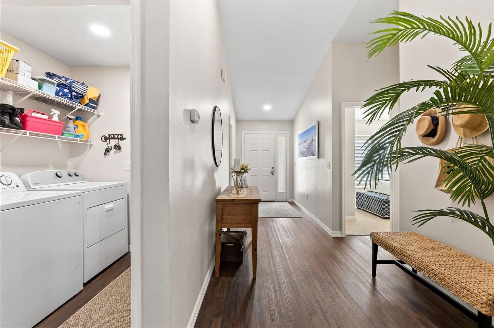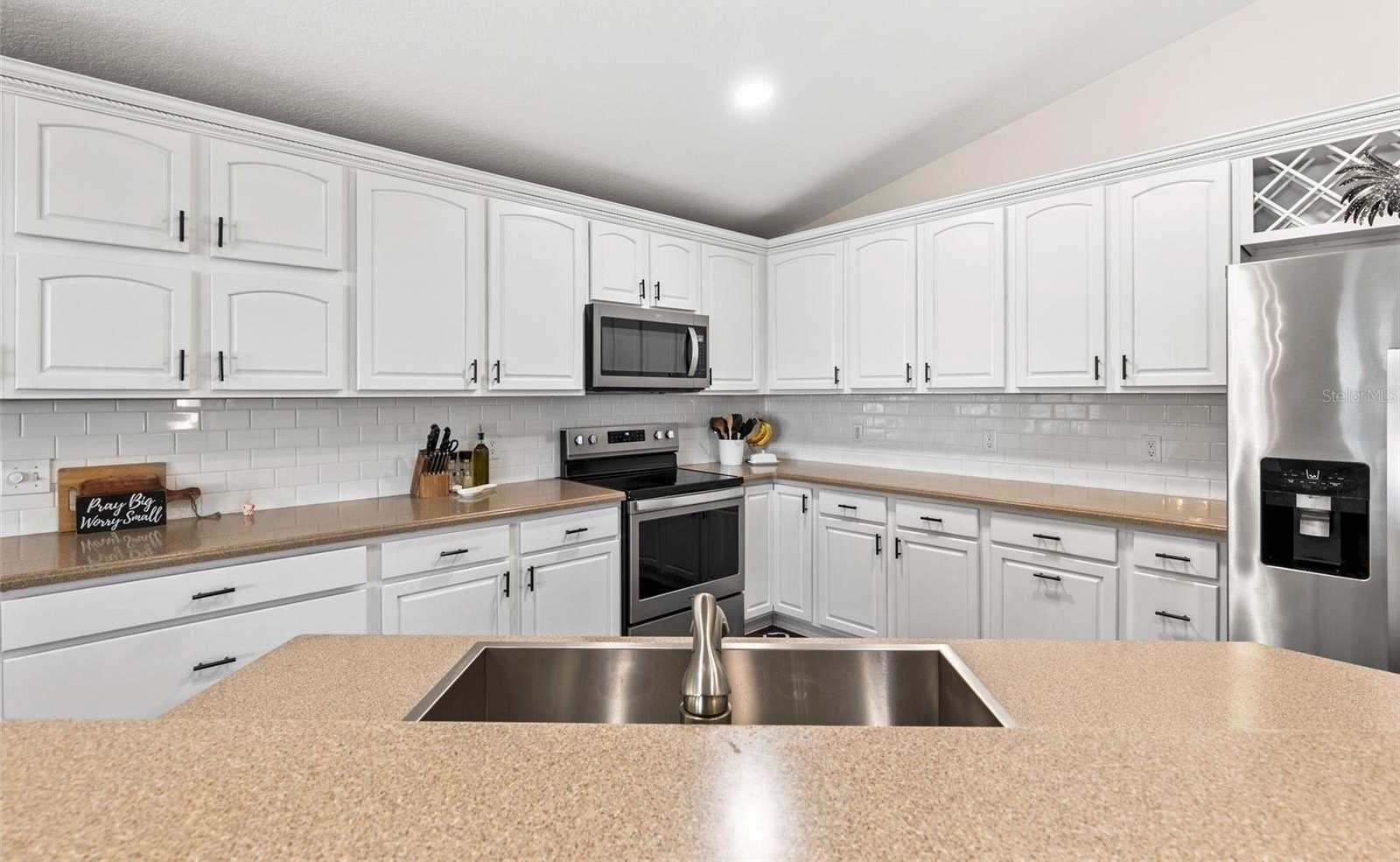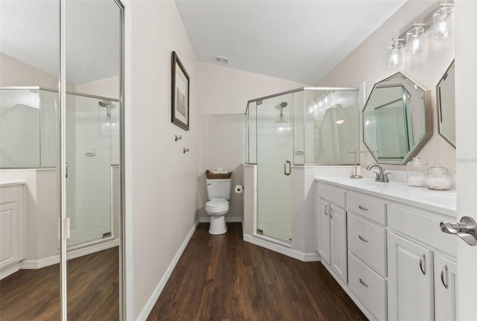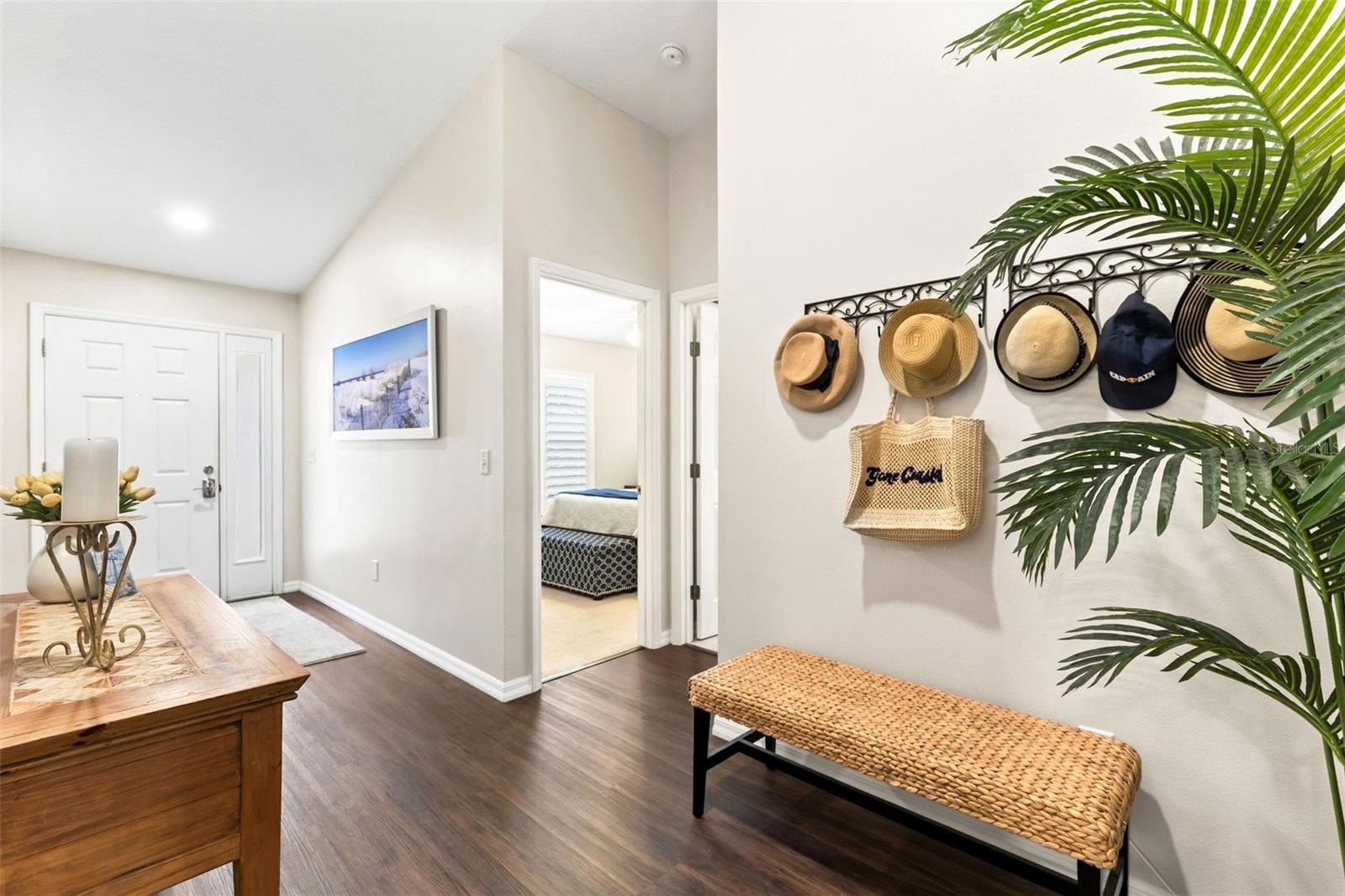 The home itself is immaculate, offering bright, open living spaces that flow seamlessly to the outdoors. The large kitchen is the heart of the home with tons of beautiful white cabinets and breakfast bar. The entire home has newer vinyl flooring, new roof and A/C in 2017 and 2018. The master suite has a custom-designed walk-in closet, and a slider to the large, newly screened patio and private backyard retreat where a new sparkling pool (2024), expansive paved patio, and waterfront views create the perfect setting for entertaining, relaxing, or soaking up the Florida sunshine. This home was designed for those who want it all—luxury, comfort, and the best of Florida’s outdoor living. With everything newer, and the no-maintenance yard, there's nothing left to do but have fun!
