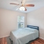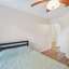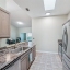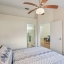The kitchen features a convenient eat-at bar, abundant cabinet space, and sleek stainless steel appliances. The split floorplan provides privacy, with a spacious primary suite offering a walk-in closet, ample storage, and an en suite bath with walk-in shower. The generous second bedroom also boasts excellent closet space. A dedicated laundry room connects the kitchen to the garage for added functionality.