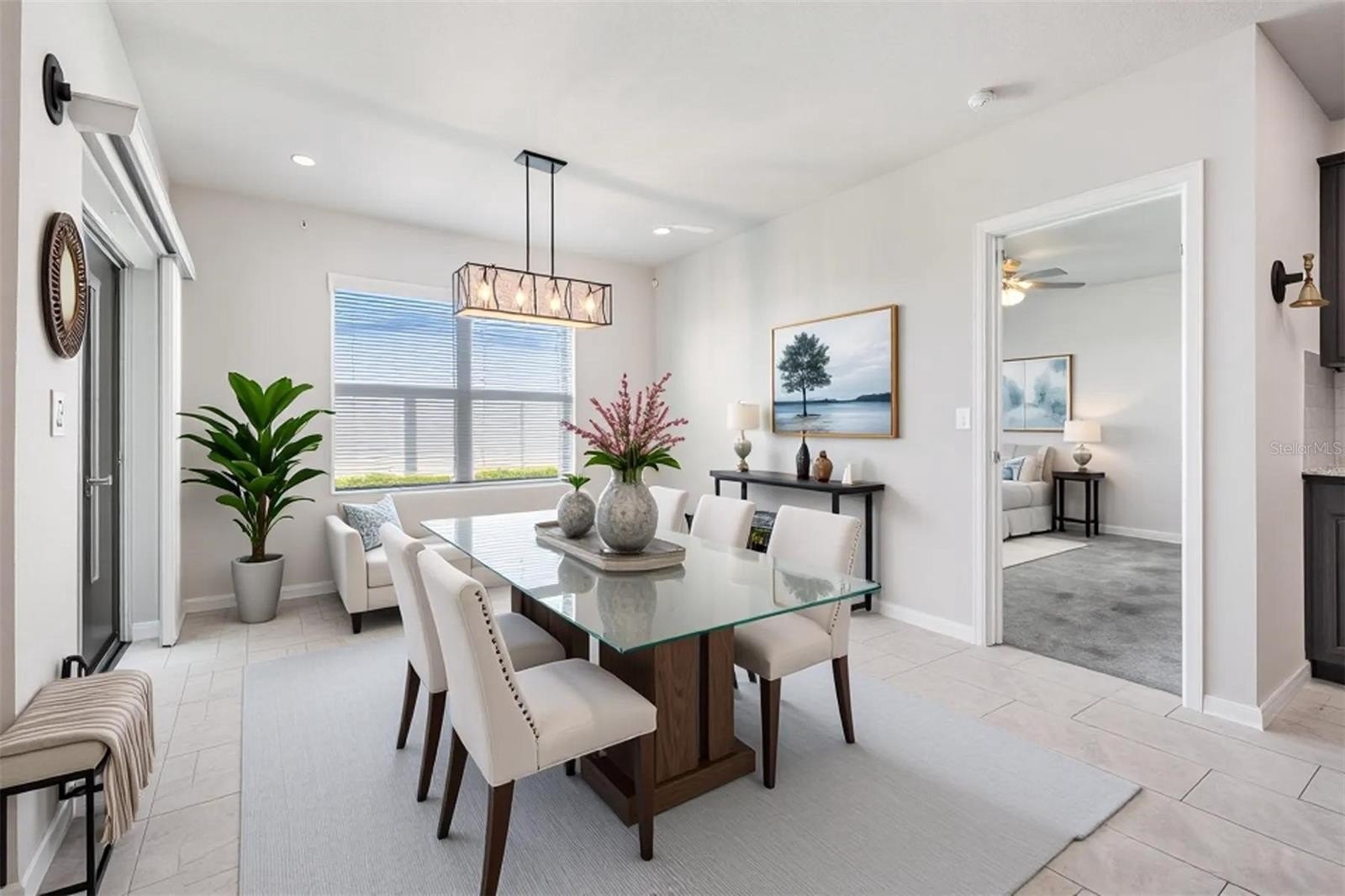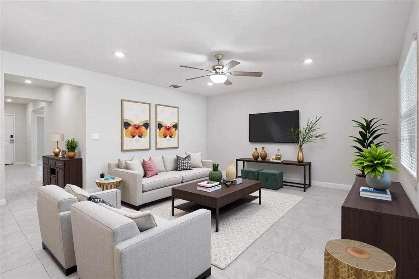 From the moment you arrive, this home captures you with its inviting curb appeal and Florida charm. Step inside and you’re greeted by a wide entryway that immediately gives a sense of warmth and space. At the front of the home, you’ll find two comfortable bedrooms paired with a full guest bathroom—an ideal setup for family, visitors, or even a home office.