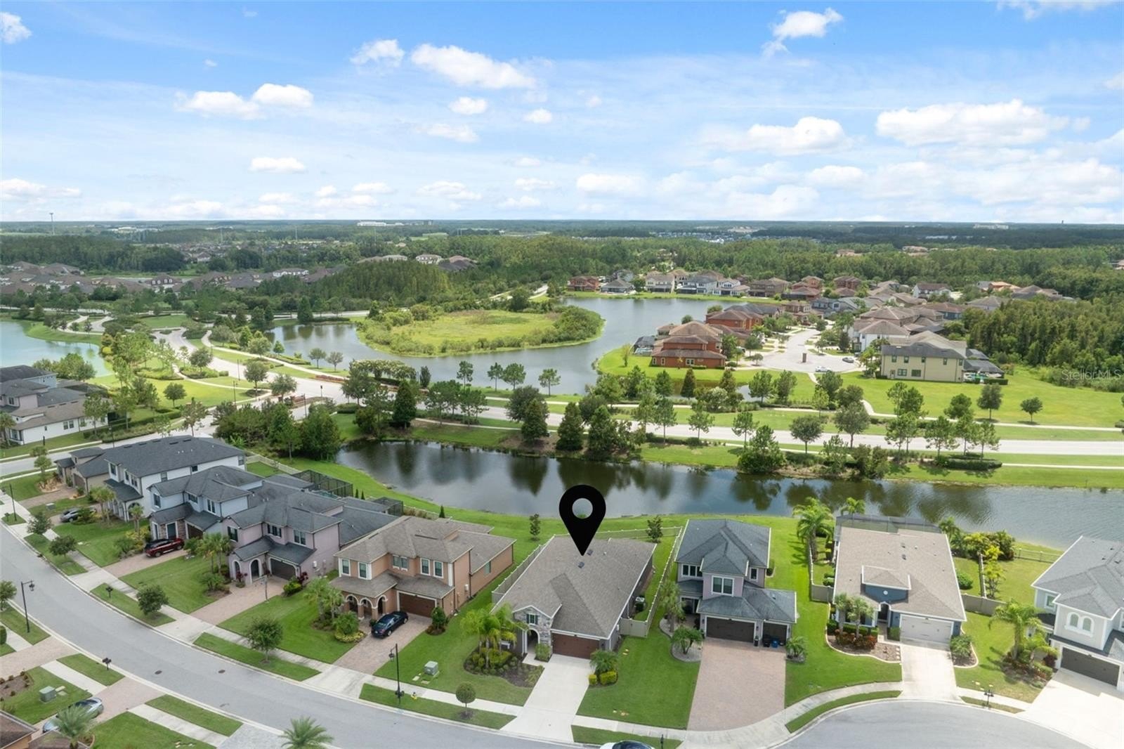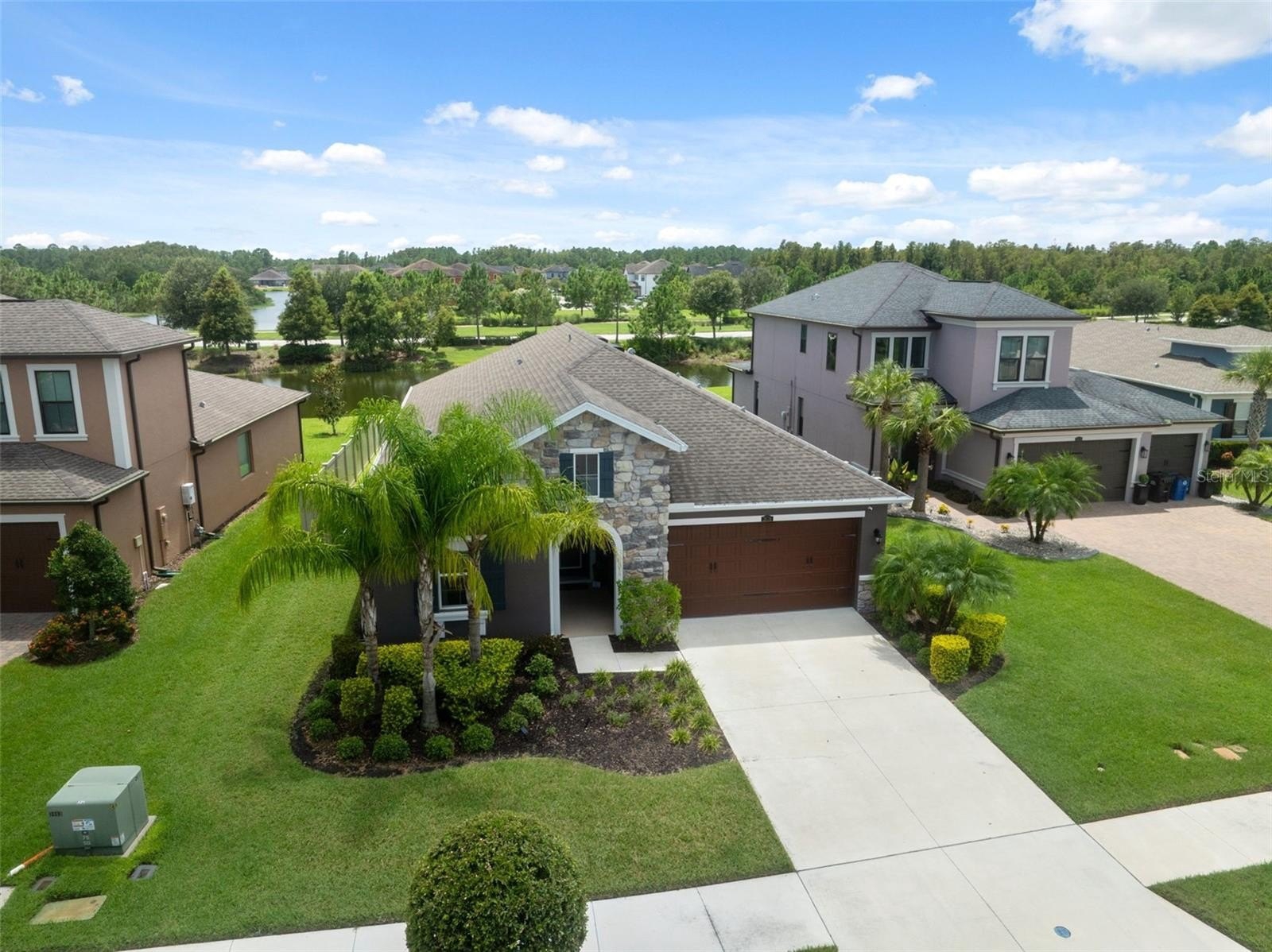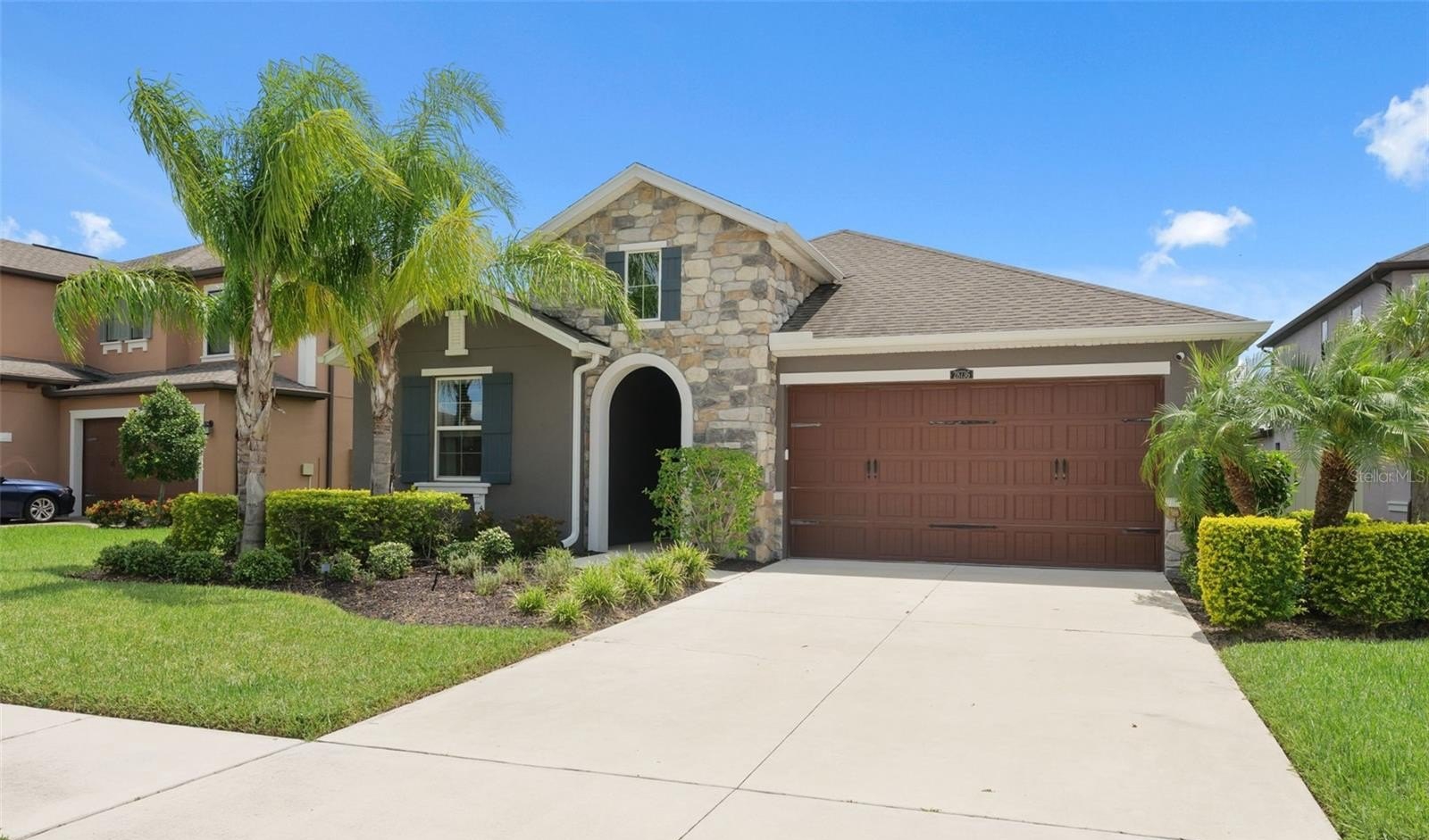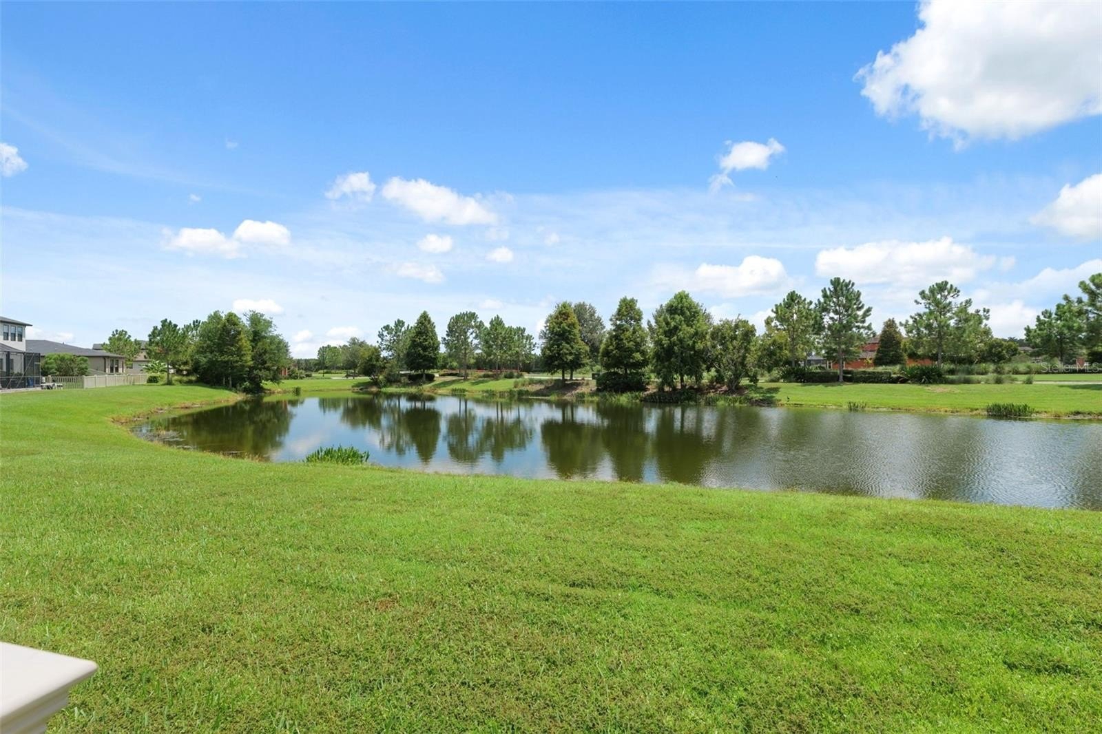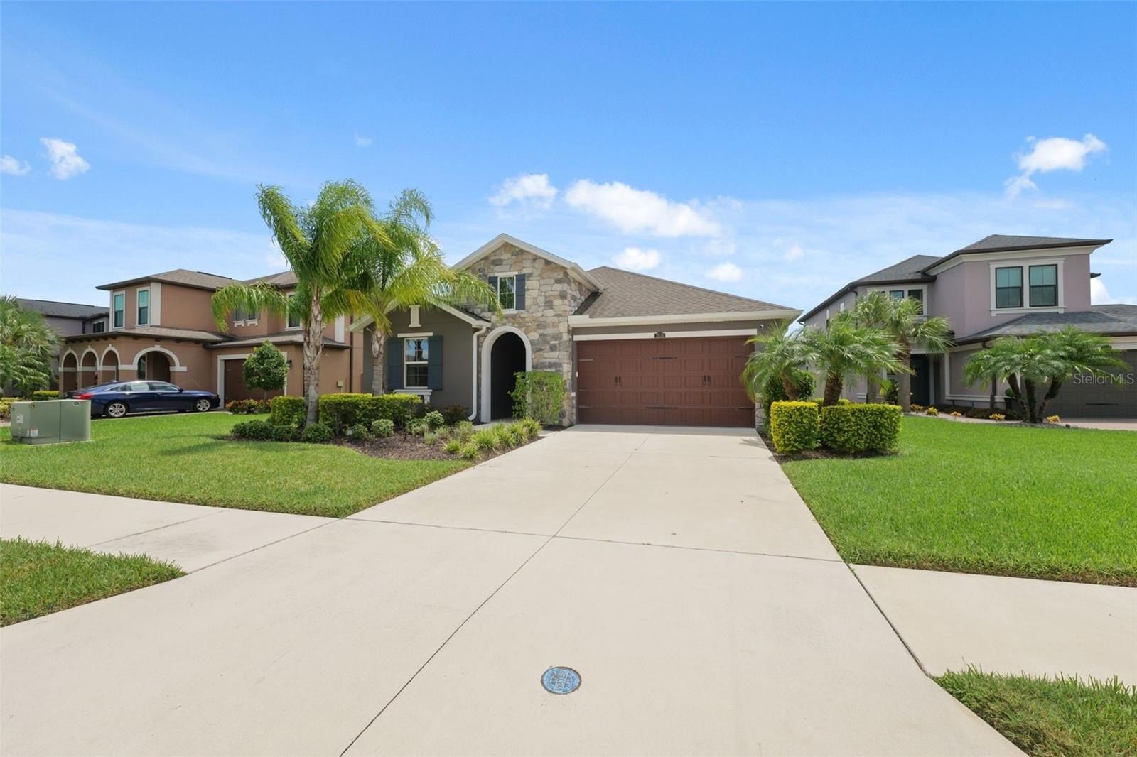 Welcome to this stunning single-story WATERFRONT home featuring 3 bedrooms + office + 3 full bathrooms in the highly sought-after Estancia at Wiregrass Ranch. Built by CalAtlantic, this home offers extensive builder and owner upgrades that elevate both style and functionality. Designed with both comfort and sophistication in mind, the open layout offers airy spaces filled with natural light and crown moulding . Situated on a cul-de-sac road, enjoy serene pond views from the expansive covered lanai, perfect for outdoor relaxation and entertaining. The upgraded chef’s kitchen overlooks the family room and dining area, showcasing max-tier cabinetry, quartz countertops, a farm sink, soft-close drawers and doors, Whirlpool smart oven/microwave, NEW stainless steel dishwasher, a mini refrigerator with quartz cabinetry surround, plus a water filtration system—all powered by gas. Additional highlights include wood-look tile flooring, upgraded front entry door with keypad lock, Ring camera, upgraded glass pantry and office doors, alarm system, finished laundry room with washer and dryer included, and a pull-down ladder in the garage for attic access. The home is also equipped with plumbing for an outdoor kitchen and a car charger for hybrid vehicles. Bedrooms feature StainMaster upgraded carpets, and the owner’s suite offers spa-inspired finishes. Fully fenced yard perfect for pets and privacy. With thoughtful details like designer lighting, smart features, and timeless finishes throughout, this home is truly move-in ready. Located in the gated Cortona section, residents enjoy world-class amenities including a grand clubhouse, resort-style pool with water slide, tennis and pickleball courts, dog parks, walking trails, and more—all just minutes from top-rated schools, shopping, dining, and major highways. Schedule your private showing today!