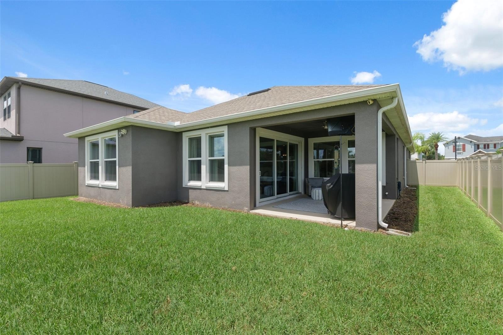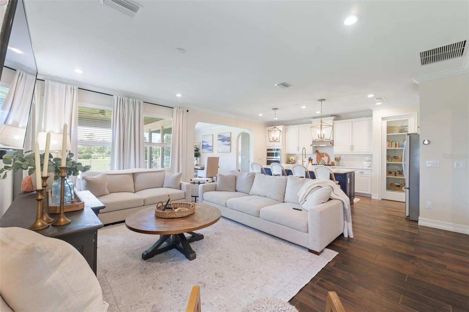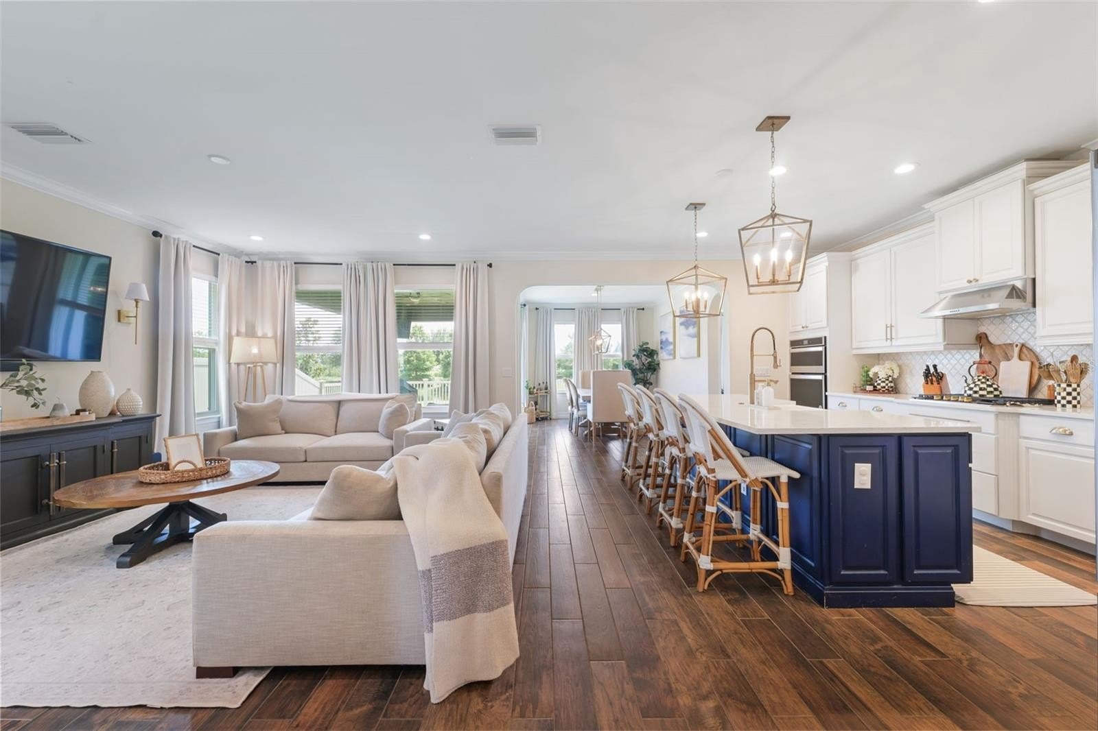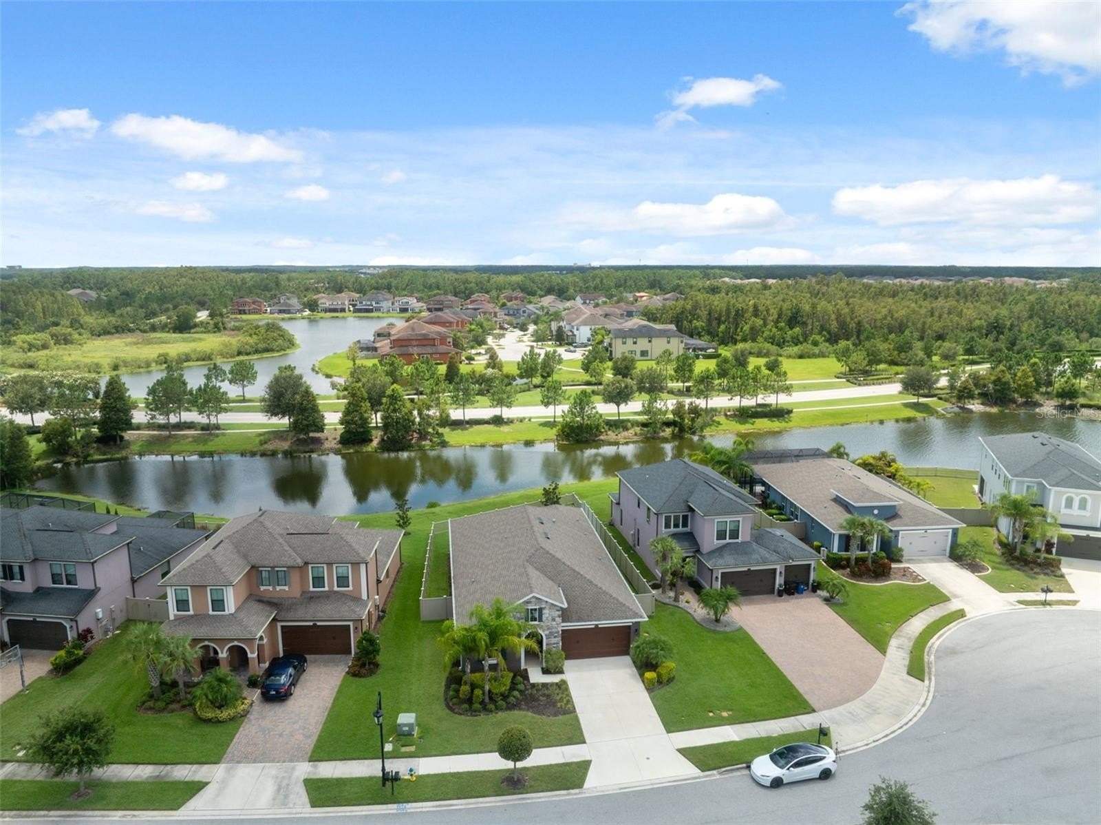 Welcome to this stunning single-story WATERFRONT home featuring 3 bedrooms + office + 3 full bathrooms in the highly sought-after Estancia at Wiregrass Ranch. Built by CalAtlantic, this home offers extensive builder and owner upgrades that elevate both style and functionality. Designed with both comfort and sophistication in mind, the open layout offers airy spaces filled with natural light and crown moulding . Situated on a cul-de-sac road, enjoy serene pond views from the expansive covered lanai, perfect for outdoor relaxation and entertaining. The upgraded chef’s kitchen overlooks the family room and dining area, showcasing max-tier cabinetry, quartz countertops, a farm sink, soft-close drawers and doors, Whirlpool smart oven/microwave, NEW stainless steel dishwasher, a mini refrigerator with quartz cabinetry surround, plus a water filtration system—all powered by gas. Additional highlights include wood-look tile flooring, upgraded front entry door with keypad lock, Ring camera, upgraded glass pantry and office doors, alarm system, finished laundry room with washer and dryer included, and a pull-down ladder in the garage for attic access. The home is also equipped with plumbing for an outdoor kitchen and a car charger for hybrid vehicles. Bedrooms feature StainMaster upgraded carpets, and the owner’s suite offers spa-inspired finishes. Fully fenced yard perfect for pets and privacy. With thoughtful details like designer lighting, smart features, and timeless finishes throughout, this home is truly move-in ready. Located in the gated Cortona section, residents enjoy world-class amenities including a grand clubhouse, resort-style pool with water slide, tennis and pickleball courts, dog parks, walking trails, and more—all just minutes from top-rated schools, shopping, dining, and major highways. Schedule your private showing today!
