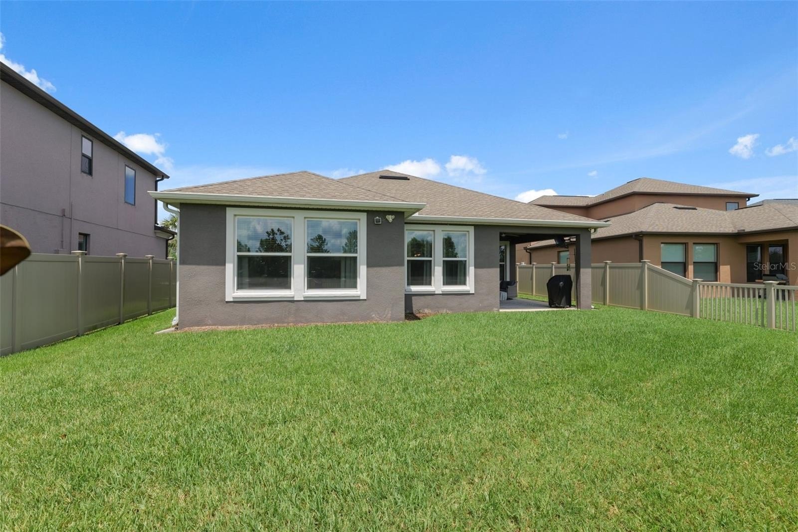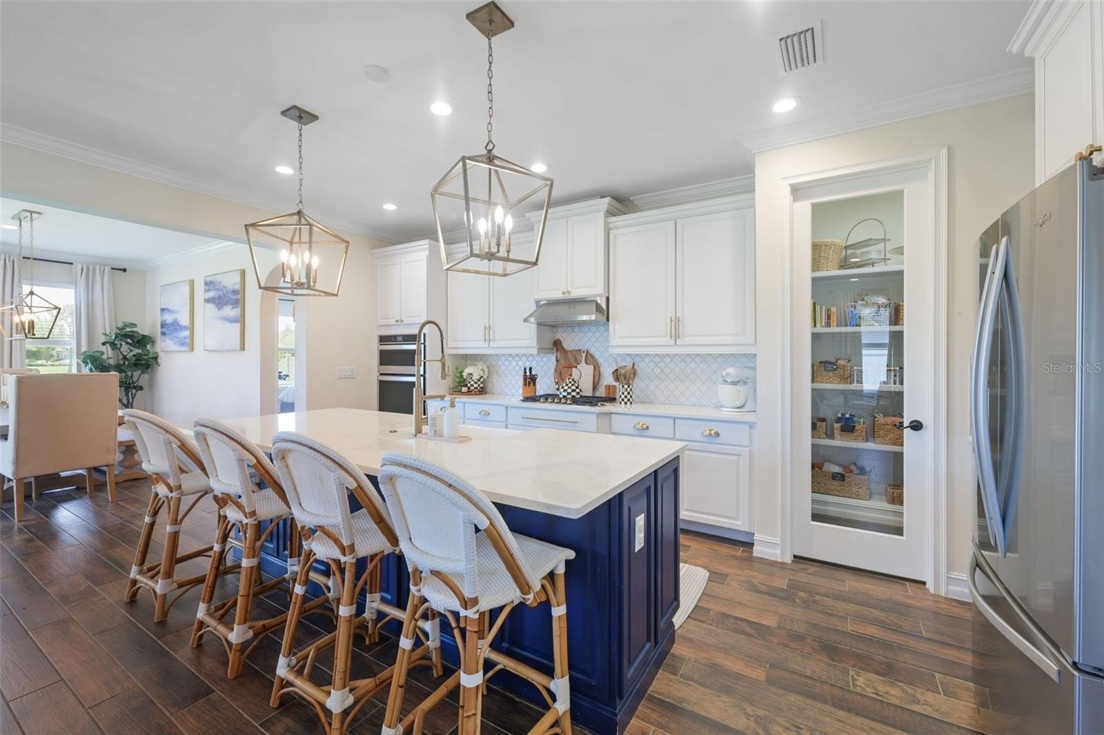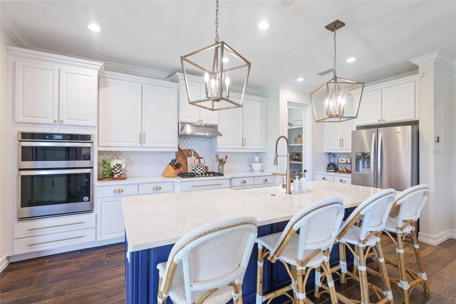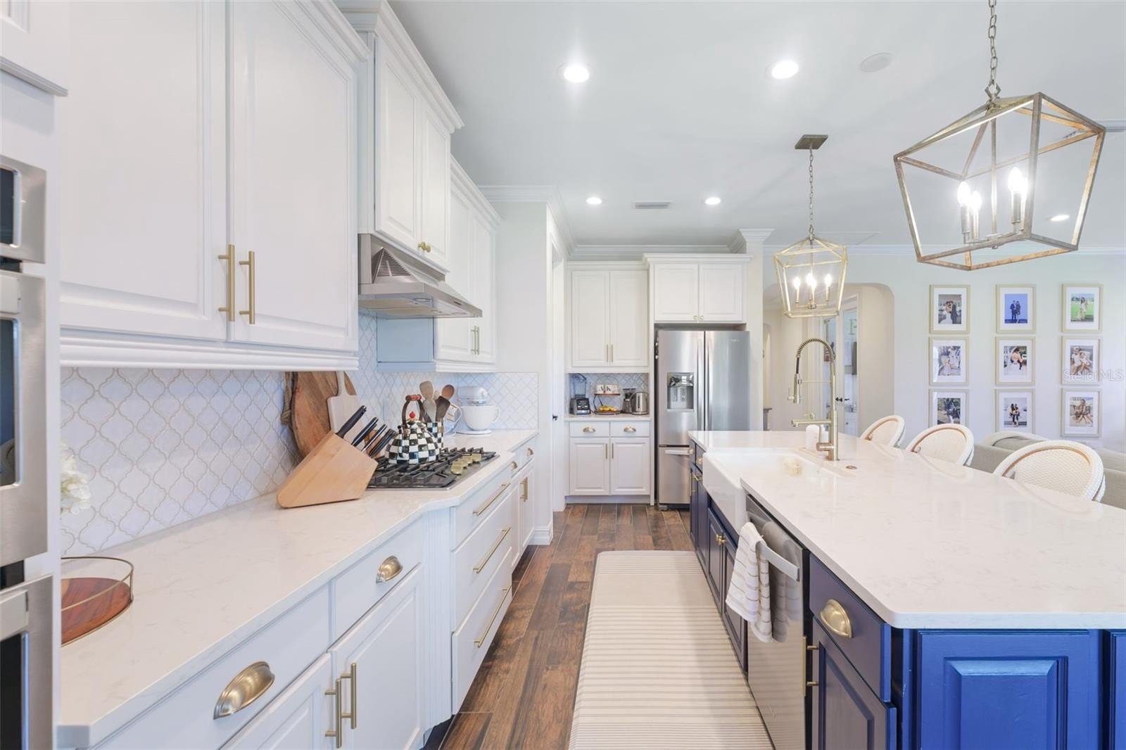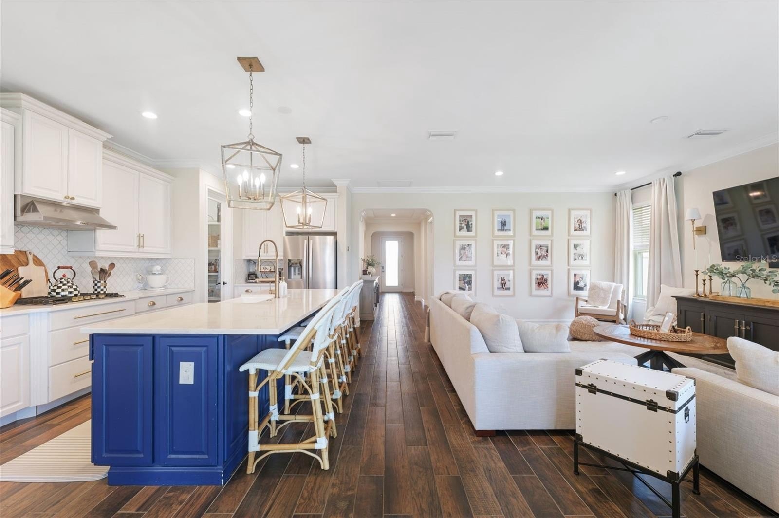 Welcome to this stunning single-story WATERFRONT home featuring 3 bedrooms + office + 3 full bathrooms in the highly sought-after Estancia at Wiregrass Ranch. Built by CalAtlantic, this home offers extensive builder and owner upgrades that elevate both style and functionality. Designed with both comfort and sophistication in mind, the open layout offers airy spaces filled with natural light and crown moulding . Situated on a cul-de-sac road, enjoy serene pond views from the expansive covered lanai, perfect for outdoor relaxation and entertaining. The upgraded chef’s kitchen overlooks the family room and dining area, showcasing max-tier cabinetry, quartz countertops, a farm sink, soft-close drawers and doors, Whirlpool smart oven/microwave, NEW stainless steel dishwasher, a mini refrigerator with quartz cabinetry surround, plus a water filtration system—all powered by gas. Additional highlights include wood-look tile flooring, upgraded front entry door with keypad lock, Ring camera, upgraded glass pantry and office doors, alarm system, finished laundry room with washer and dryer included, and a pull-down ladder in the garage for attic access. The home is also equipped with plumbing for an outdoor kitchen and a car charger for hybrid vehicles. Bedrooms feature StainMaster upgraded carpets, and the owner’s suite offers spa-inspired finishes. Fully fenced yard perfect for pets and privacy. With thoughtful details like designer lighting, smart features, and timeless finishes throughout, this home is truly move-in ready. Located in the gated Cortona section, residents enjoy world-class amenities including a grand clubhouse, resort-style pool with water slide, tennis and pickleball courts, dog parks, walking trails, and more—all just minutes from top-rated schools, shopping, dining, and major highways. Schedule your private showing today!