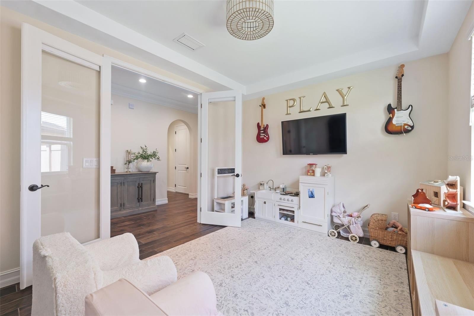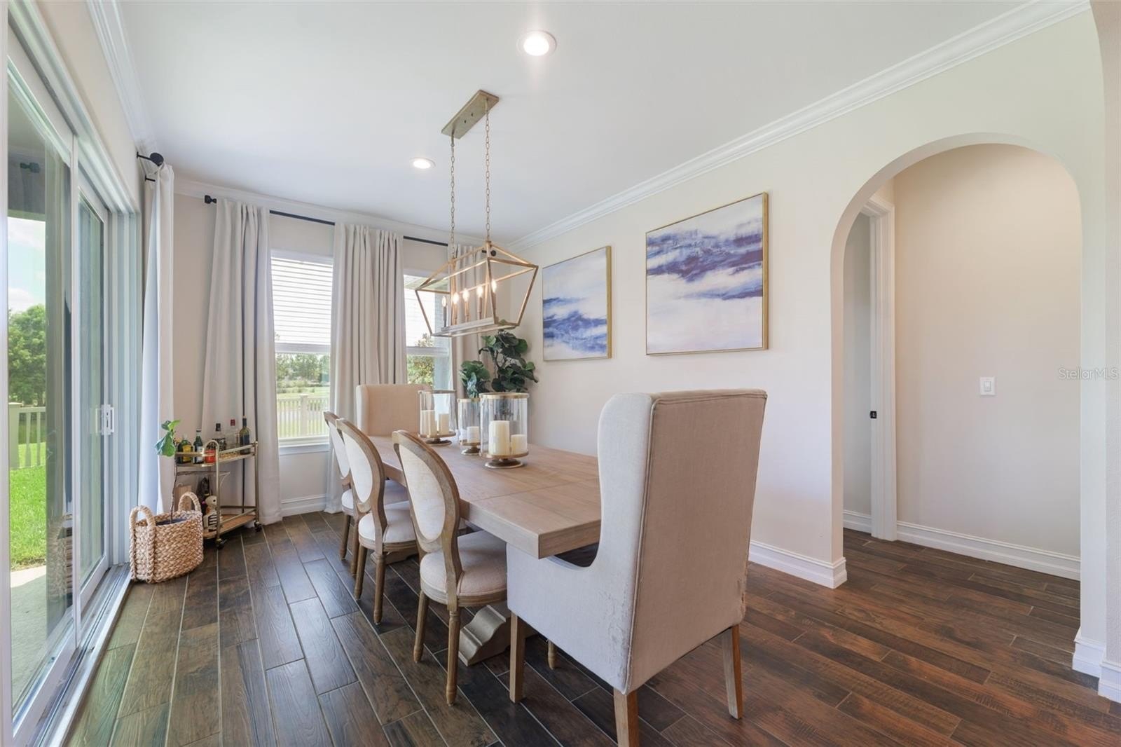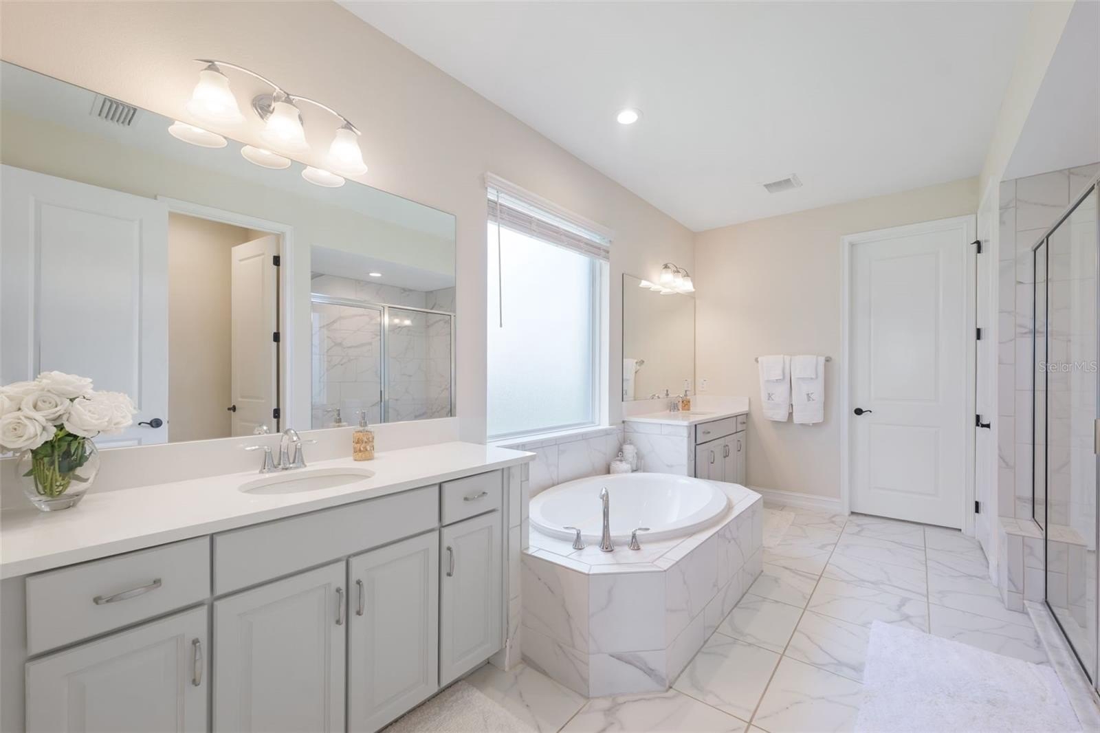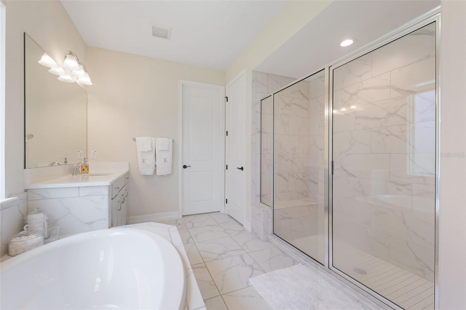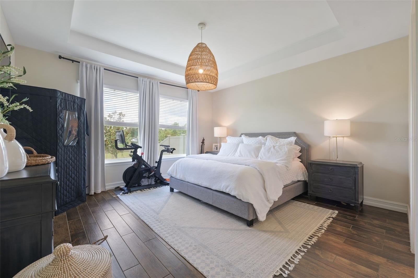 Welcome to this stunning single-story WATERFRONT home featuring 3 bedrooms + office + 3 full bathrooms in the highly sought-after Estancia at Wiregrass Ranch. Built by CalAtlantic, this home offers extensive builder and owner upgrades that elevate both style and functionality. Designed with both comfort and sophistication in mind, the open layout offers airy spaces filled with natural light and crown moulding . Situated on a cul-de-sac road, enjoy serene pond views from the expansive covered lanai, perfect for outdoor relaxation and entertaining. The upgraded chef’s kitchen overlooks the family room and dining area, showcasing max-tier cabinetry, quartz countertops, a farm sink, soft-close drawers and doors, Whirlpool smart oven/microwave, NEW stainless steel dishwasher, a mini refrigerator with quartz cabinetry surround, plus a water filtration system—all powered by gas. Additional highlights include wood-look tile flooring, upgraded front entry door with keypad lock, Ring camera, upgraded glass pantry and office doors, alarm system, finished laundry room with washer and dryer included, and a pull-down ladder in the garage for attic access. The home is also equipped with plumbing for an outdoor kitchen and a car charger for hybrid vehicles. Bedrooms feature StainMaster upgraded carpets, and the owner’s suite offers spa-inspired finishes. Fully fenced yard perfect for pets and privacy. With thoughtful details like designer lighting, smart features, and timeless finishes throughout, this home is truly move-in ready. Located in the gated Cortona section, residents enjoy world-class amenities including a grand clubhouse, resort-style pool with water slide, tennis and pickleball courts, dog parks, walking trails, and more—all just minutes from top-rated schools, shopping, dining, and major highways. Schedule your private showing today!