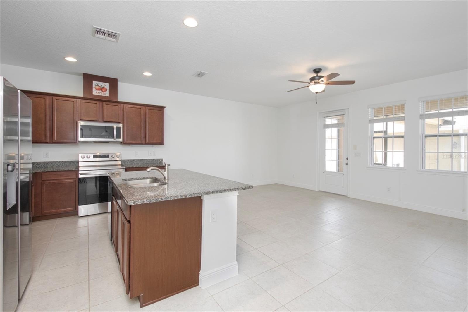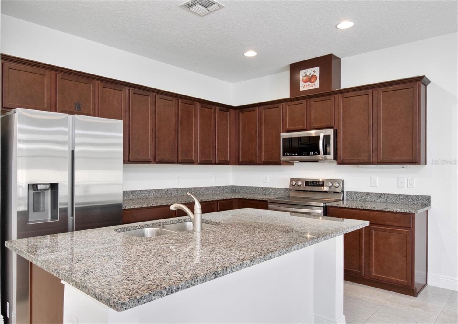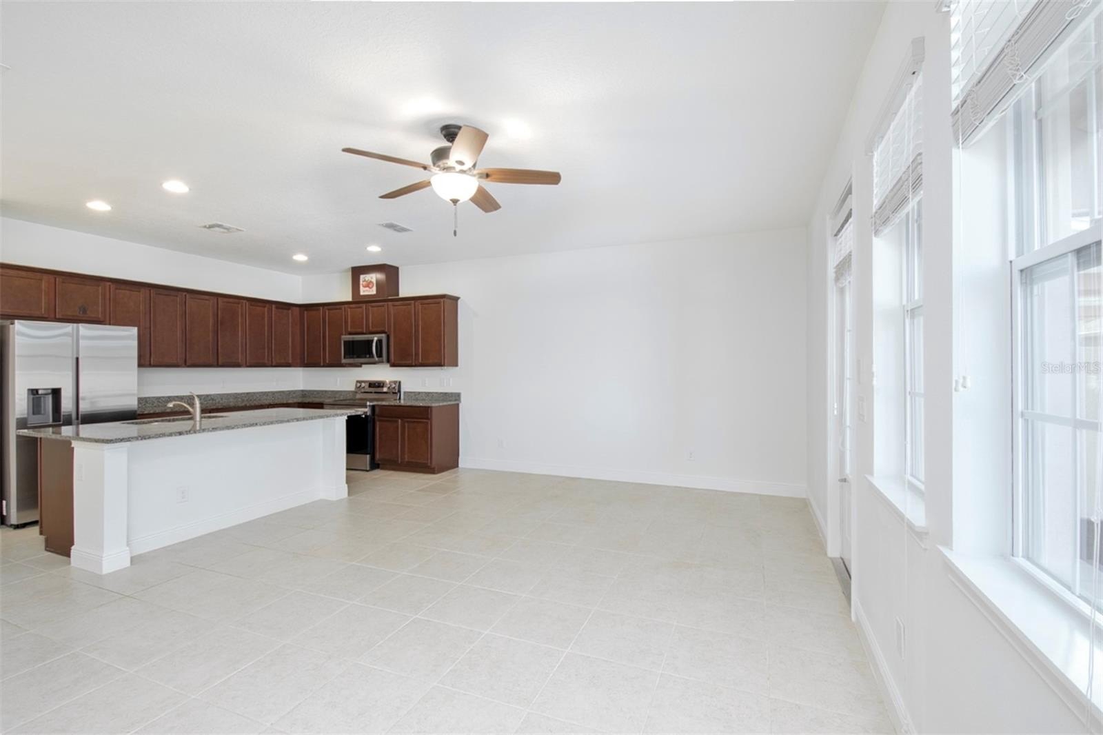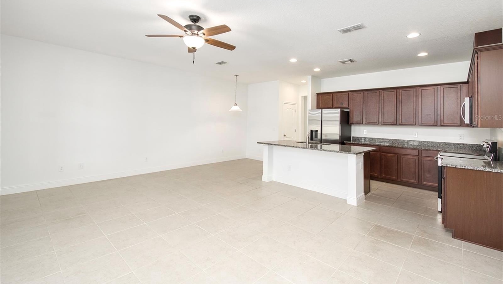The heart of the home is its open-concept living area, where the kitchen, dining, and living spaces flow together effortlessly. Highlights include gorgeous tile floors, 42” maple cabinetry, a large center island, quartz countertops, and sleek stainless steel appliances—perfect for everything from casual meals to entertaining guests.