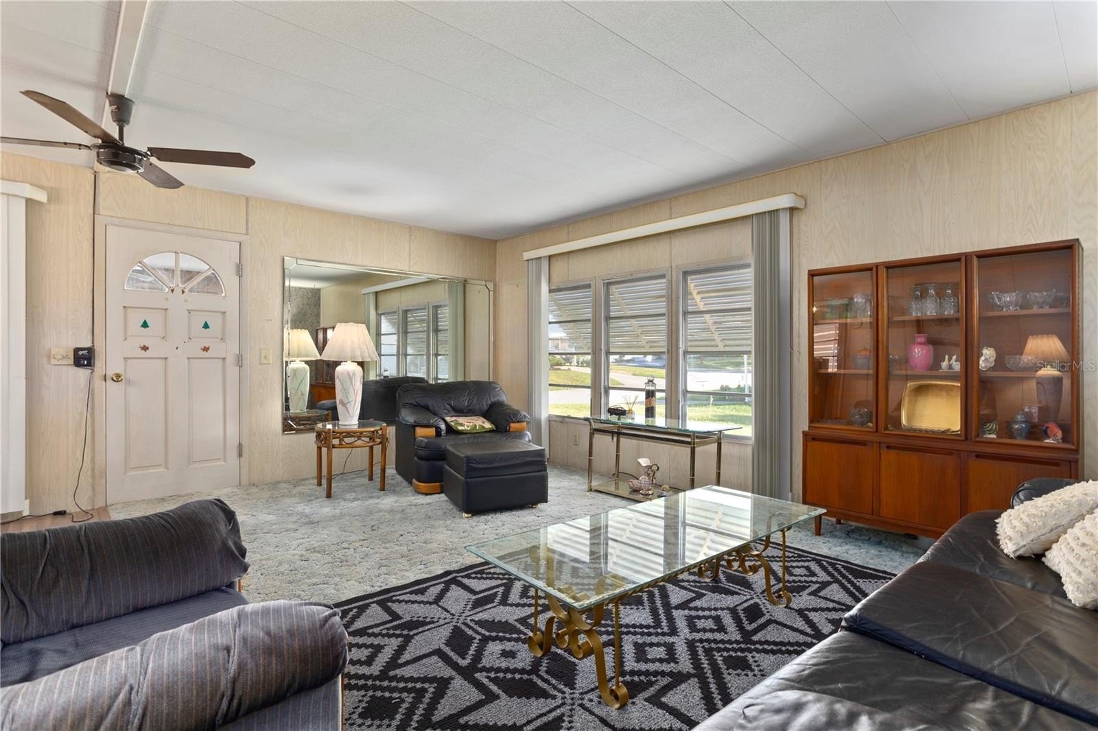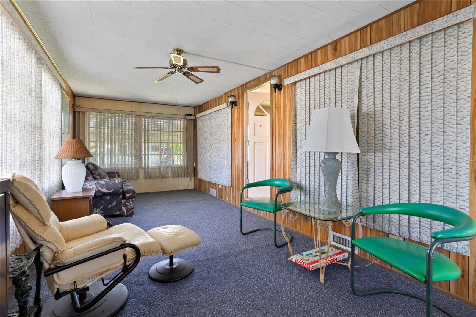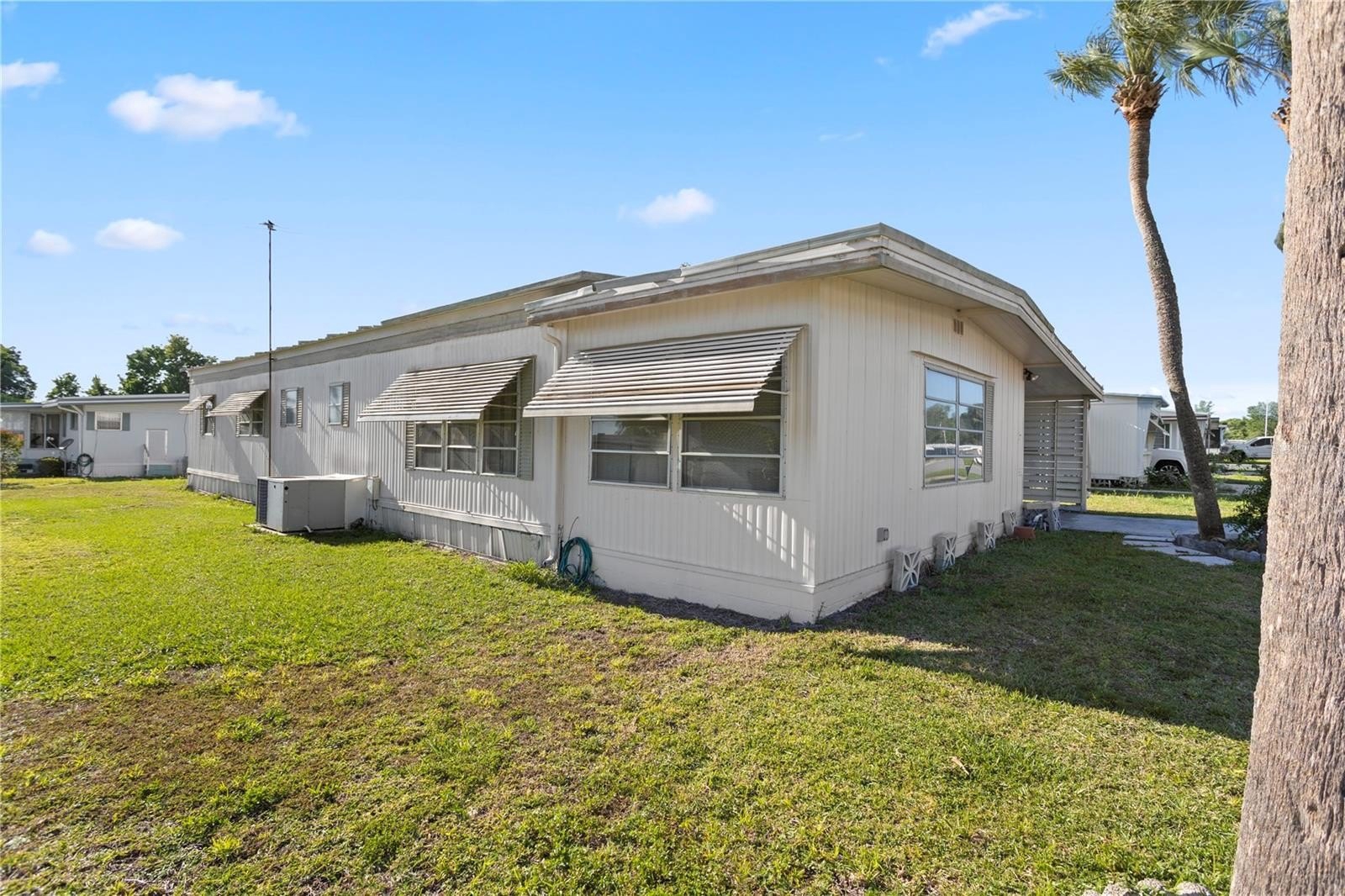 Located in the Coachwood Colony community in Leesburg, Florida, this home offers TREMENDOUS potential. Situated on an oversized lot with the unique advantage of NO LOT RENT. This charming property features two generously sized bedrooms, each bedroom could accommodate more than one bed, has 3 closets in each room for plenty of storage. This home also has two bathrooms with one in the primary bedroom. While the interior remains untouched by modern updates, this home presents a blank canvas, perfect for investor or those looking for a property to pour some TLC into. Expand your living area with an enclosed front room, perfect for enjoying the Florida sunshine in comfort. Relax in the screened porch, ideal for evening gatherings or a quiet morning coffee. Practical needs are also covered with an outside laundry room and a utility room, adding to the functional layout of this home. This home is being sold FULLY FURNISHED. Located just minutes from the picturesque Venetian Gardens and vibrant Downtown Leesburg, you have easy access to beautiful parks, waterfront relaxation, and a bustling downtown scene featuring shopping, dining, and regular community events. The property is also only 20 minutes from the Villages and all the area offers including many recreational options, restaurants and entertainment. This property is an EXCELLENT opportunity for anyone looking to invest in the growing Leesburg area or for someone searching for a prime location to call home.
