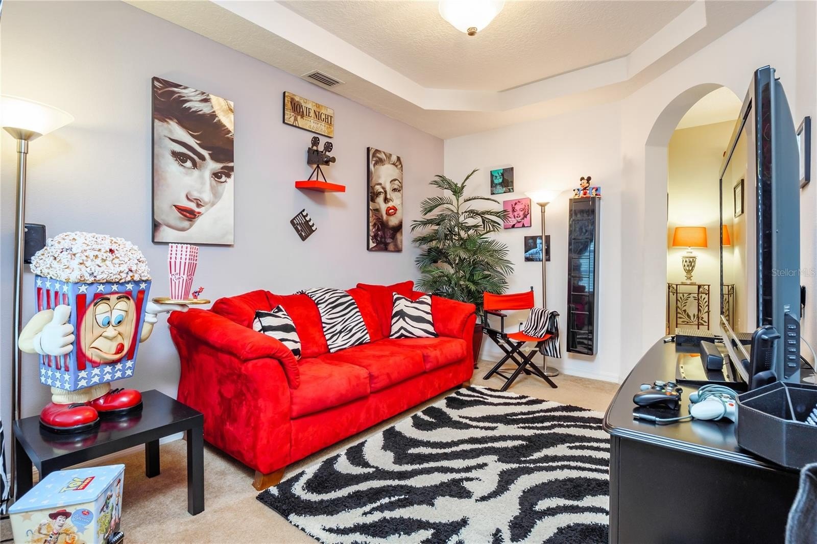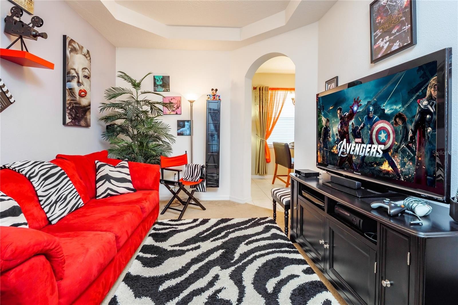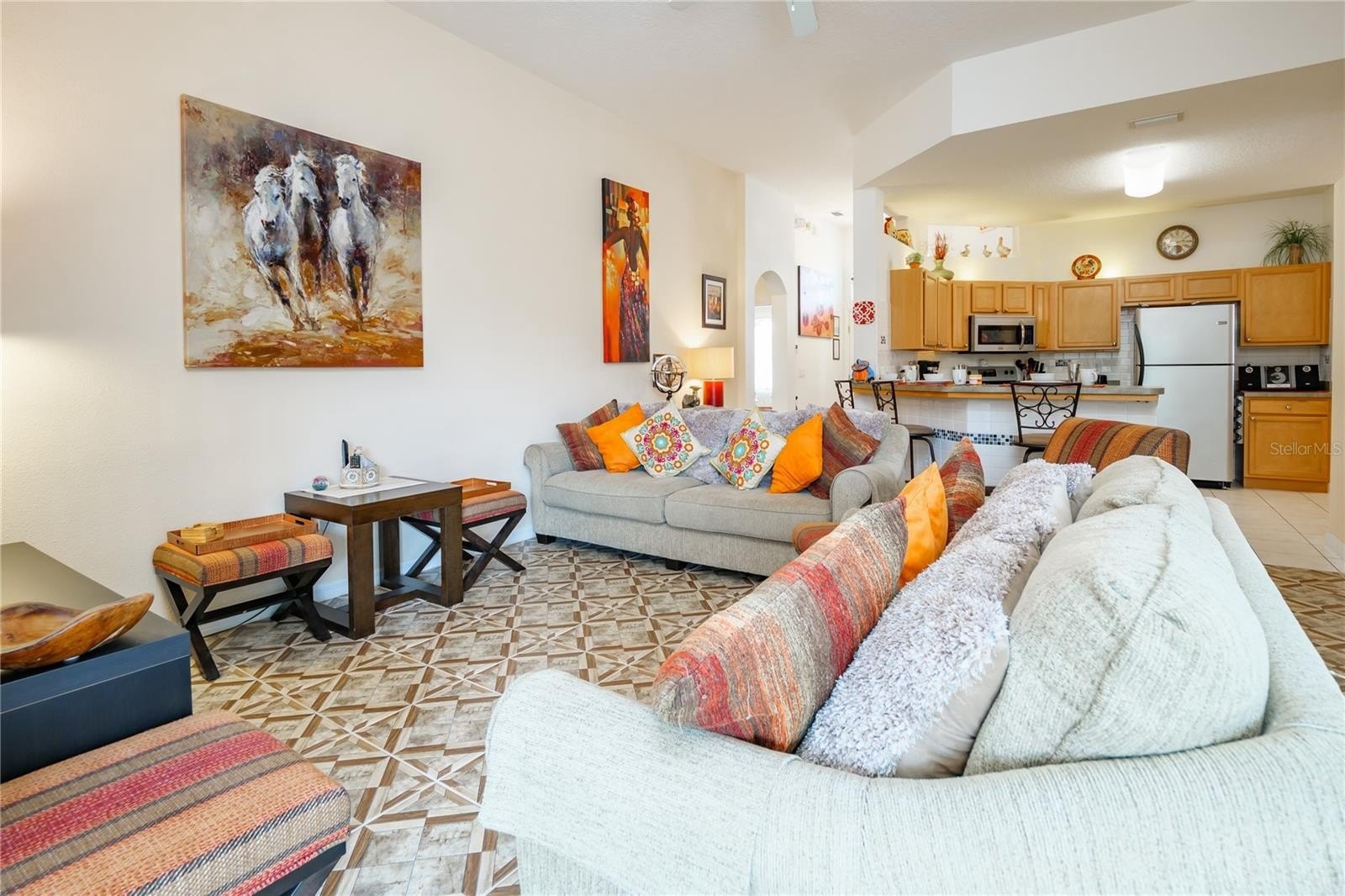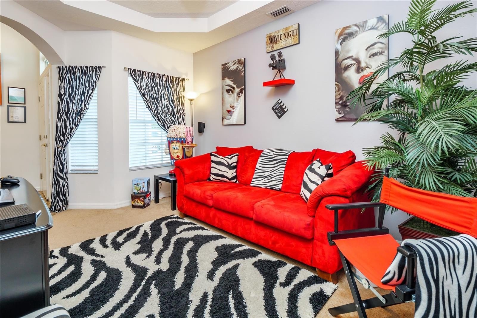 Welcome to this charming 4-bedroom, 3-bath home located in the desirable gated community of Calabay Park at Tower Lake. Set on a beautifully landscaped lot with mature greenery, this property offers both style and comfort. Inside, you’ll find a fully furnished home with high ceilings and a serene relaxed atmosphere. The remodeled kitchen features modern stainless steel appliances and flows easily into the breakfast room and living area, where large windows showcase a beautiful view of the pool. A dedicated media room offers the perfect space for movie nights or quiet relaxation.