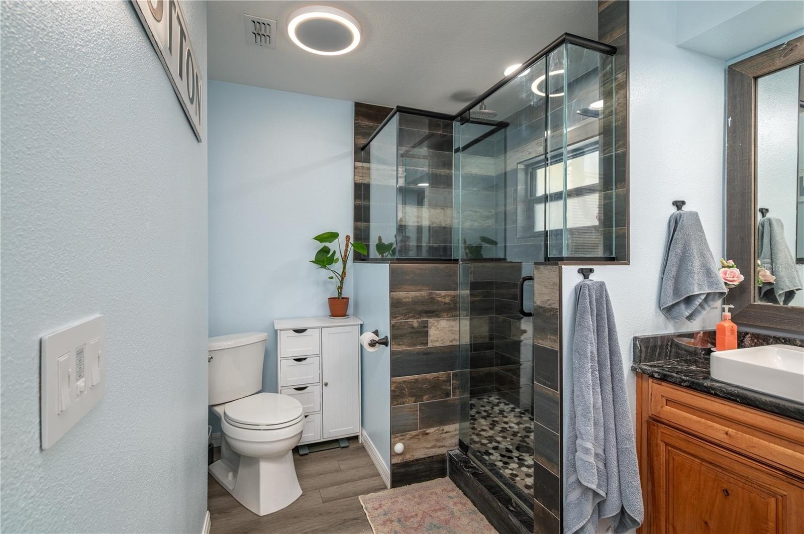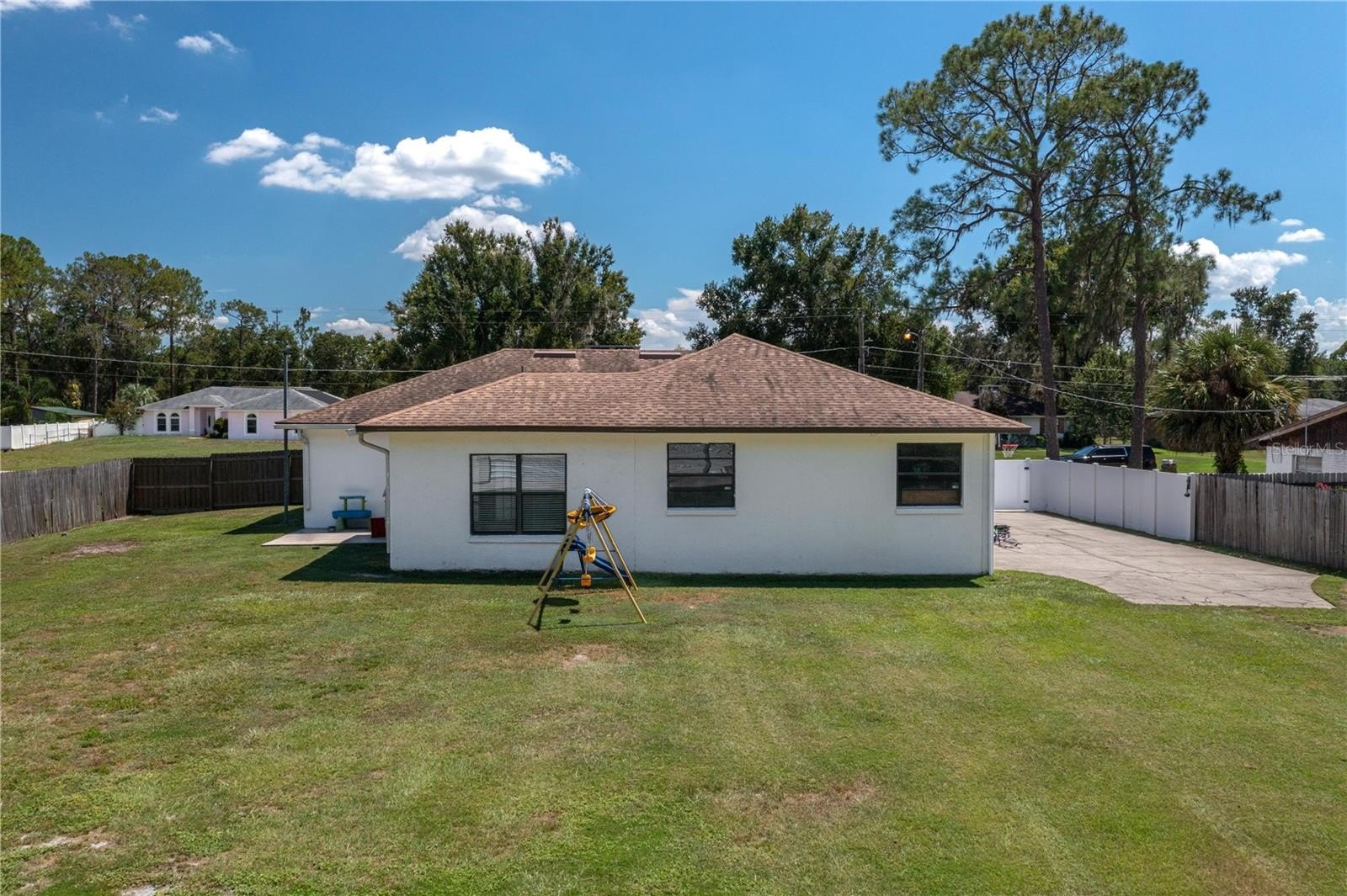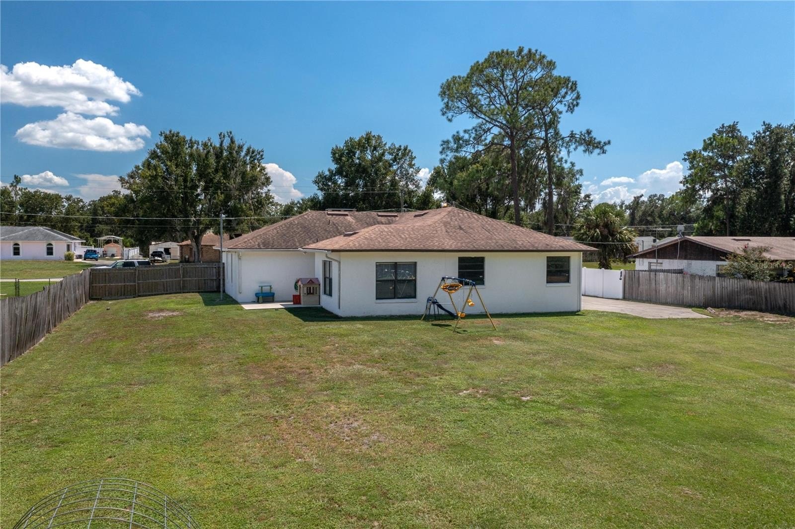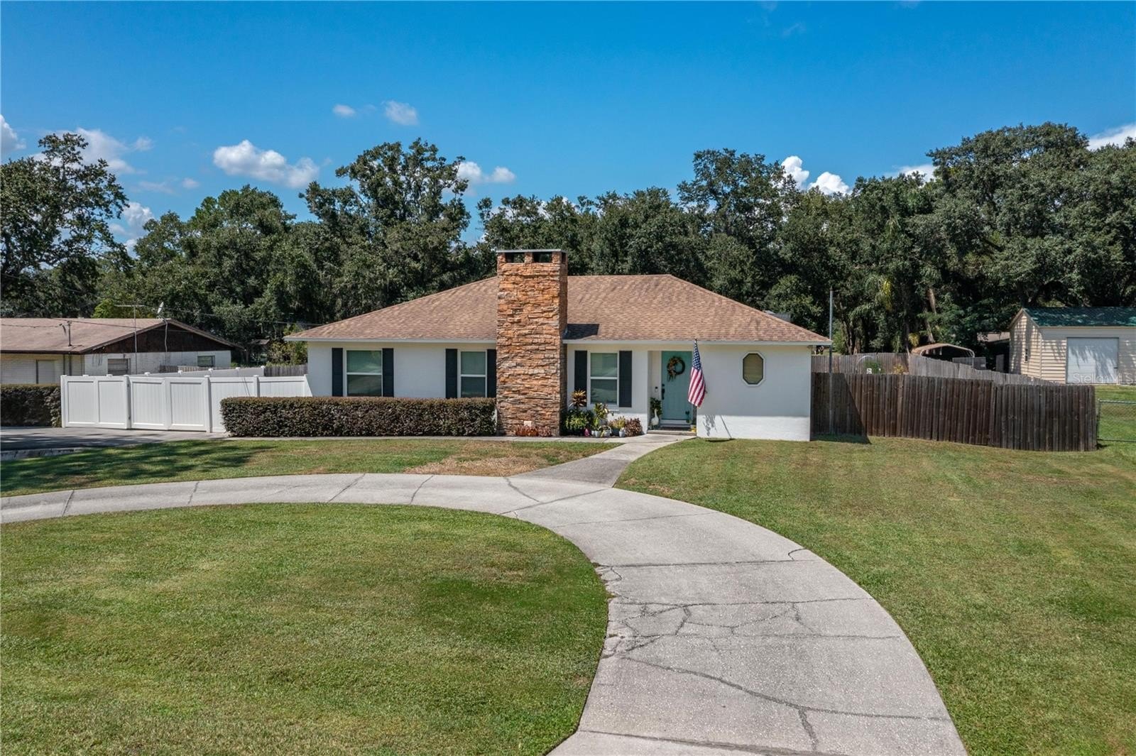 Country Living in Sugar Creek – No HOA. This beautifully updated 3-bedroom, 2-bath split-bedroom home sits on a spacious 0.51-acre lot and offers over 1,700 sq. ft. of heated living space plus a 2-car garage, and newly built shop and circular driveway. Perfectly situated near the Polk Parkway, it provides easy access to both Winter Haven and Lakeland. The exterior has been freshly painted, giving the home a modern, welcoming look. Step inside to a sunken living room that flows seamlessly into the kitchen and dining areas, creating the perfect space for entertaining. The kitchen features granite countertops and all-new KitchenAid appliances, while the dining area includes a built-in buffet and opens to a large bonus room, ideal for a second living space or game room. The primary suite boasts dual walk-in closets with built-ins and a relaxing master bath with a Bluetooth “smart” light switch and nightlight options. Two additional spacious bedrooms share a centrally located bathroom. Car enthusiasts will love the newly built 24x40 garage with electricity and a thickened slab (11'–14') ready for a future car lift, plus a 30-amp RV plug. Outdoors, the expansive yard offers endless opportunities for gatherings, play, or even a garden. Additional updates include- New septic drain field (2017), Double-pane insulated windows (2017). Irrigation is on private well. Located just minutes from the Circle B Bar Reserve with scenic walking trails, this home is perfect for those who love both indoor comfort and outdoor adventure. Call today for your private showing.
