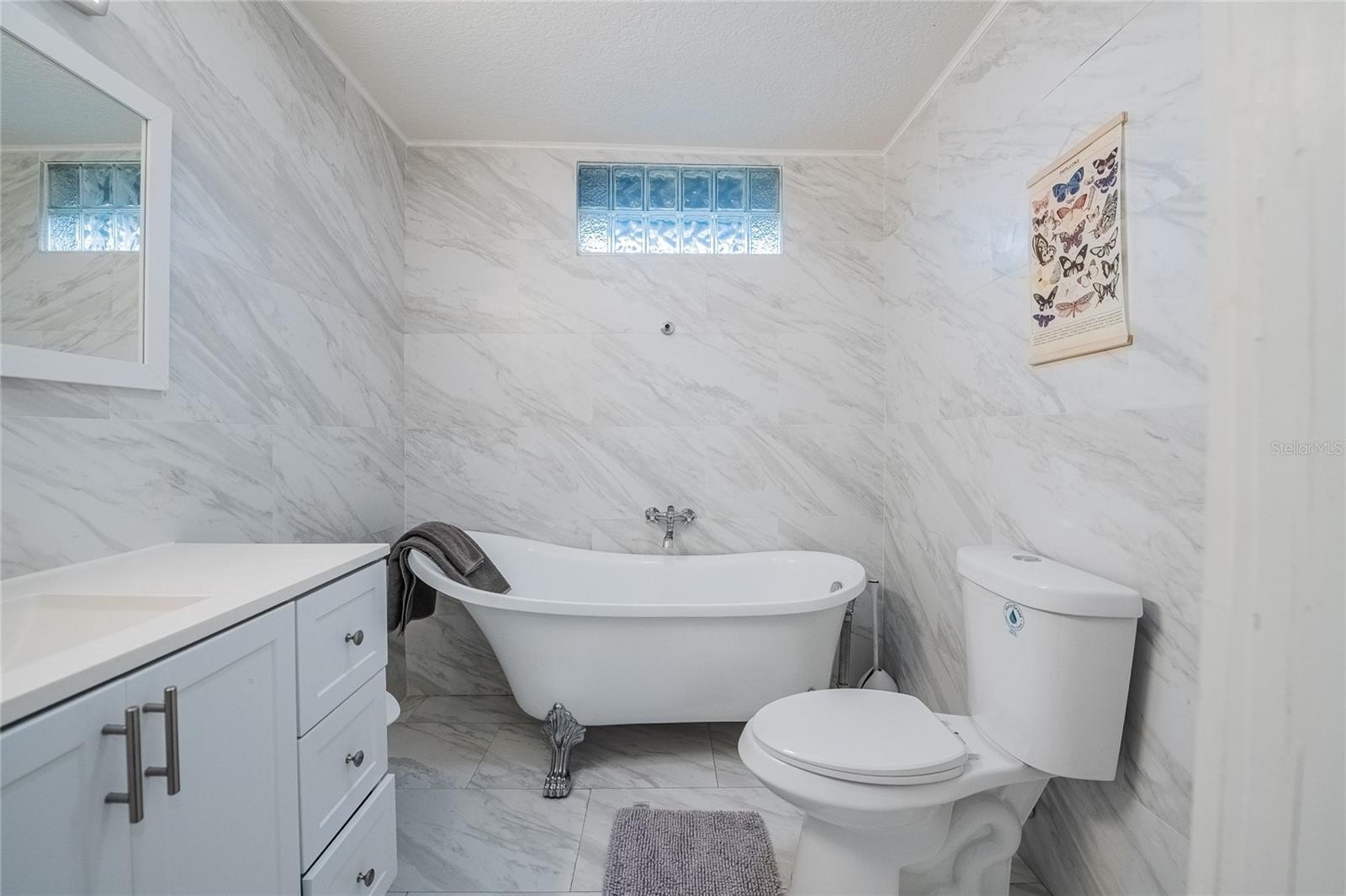 The primary suite is a serene retreat with a walk-in closet and a spa-inspired ensuite featuring a tiled walk-in shower and dual vanities. Two additional bedrooms and an updated guest bath offer comfort for family or visitors.