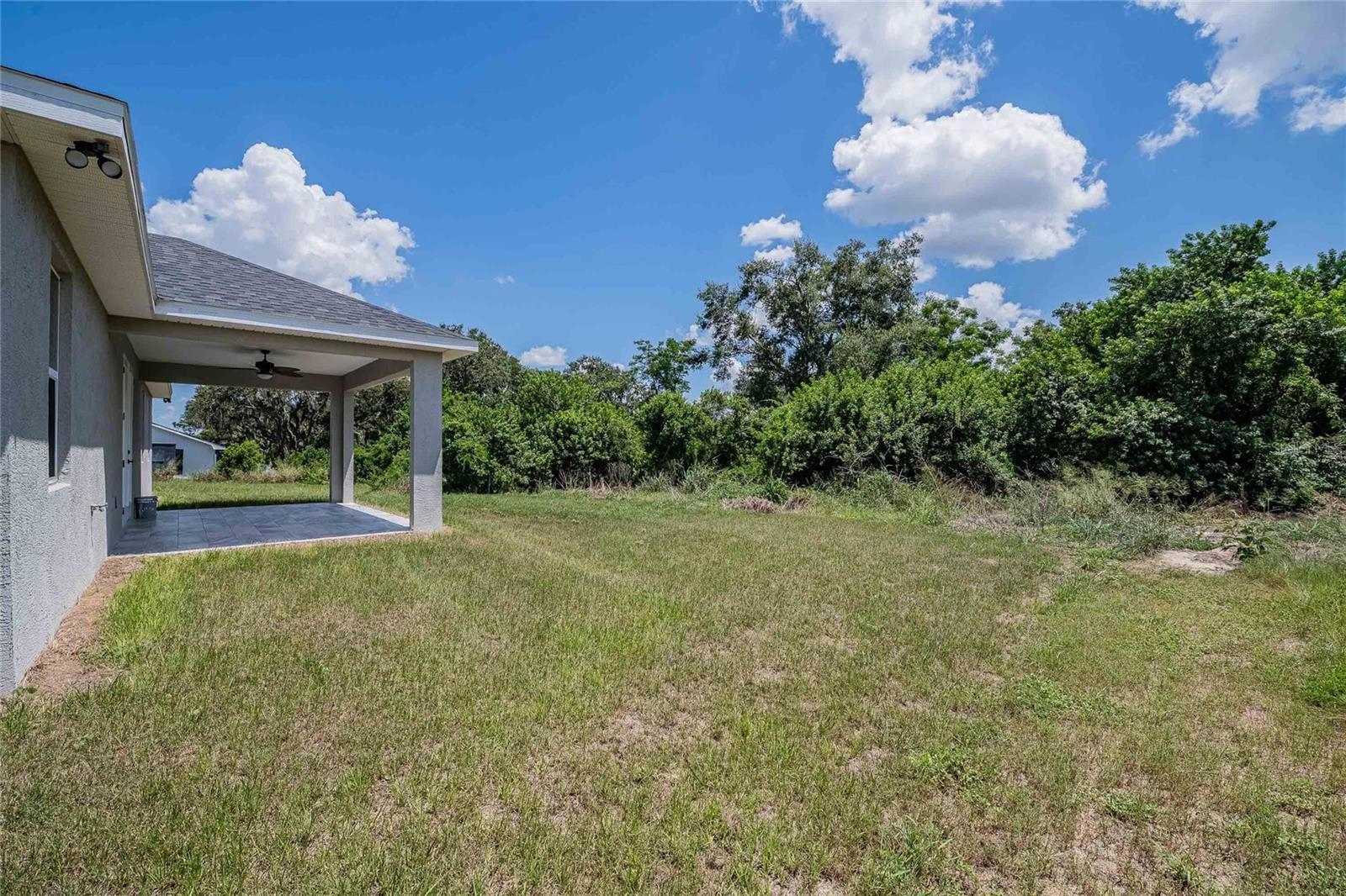 Step outside to your covered rear patio, complete with a ceiling fan and serene views of a wooded area—no rear neighbors for added privacy. The extra-long driveway leads to a two-car garage, offering ample parking and storage.