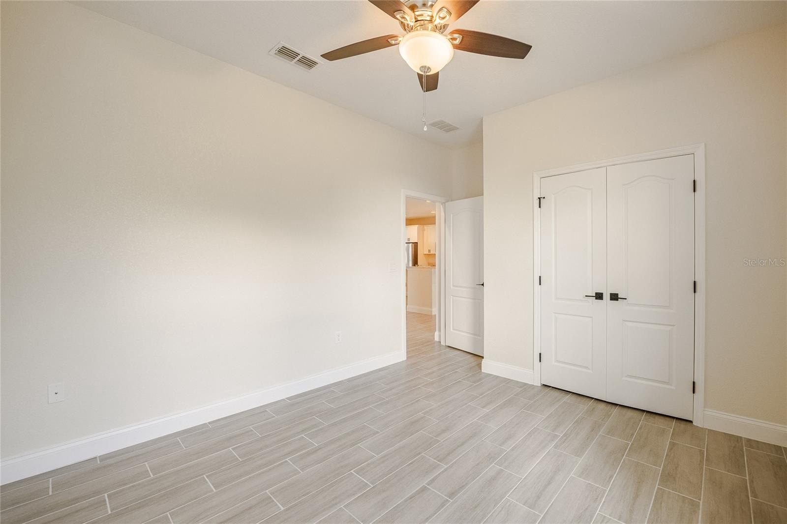 The two secondary bedrooms each include walk-in closets and ceiling fans, and one features its own private full bathroom—ideal for guests or multi-generational living.