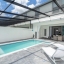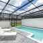 Each of the five generously sized bedrooms offers plush accommodations, with two en-suite baths for added privacy. The private splash pool and screened lanai create a tranquil outdoor space ideal for family fun or peaceful relaxation.