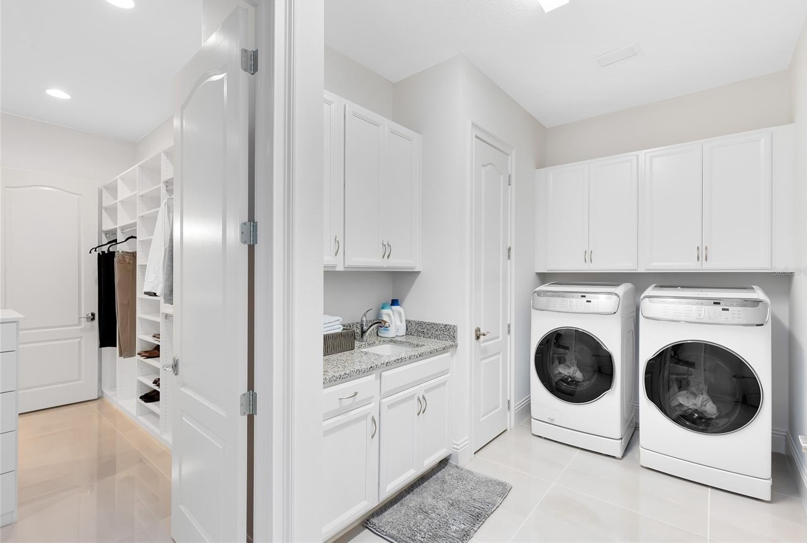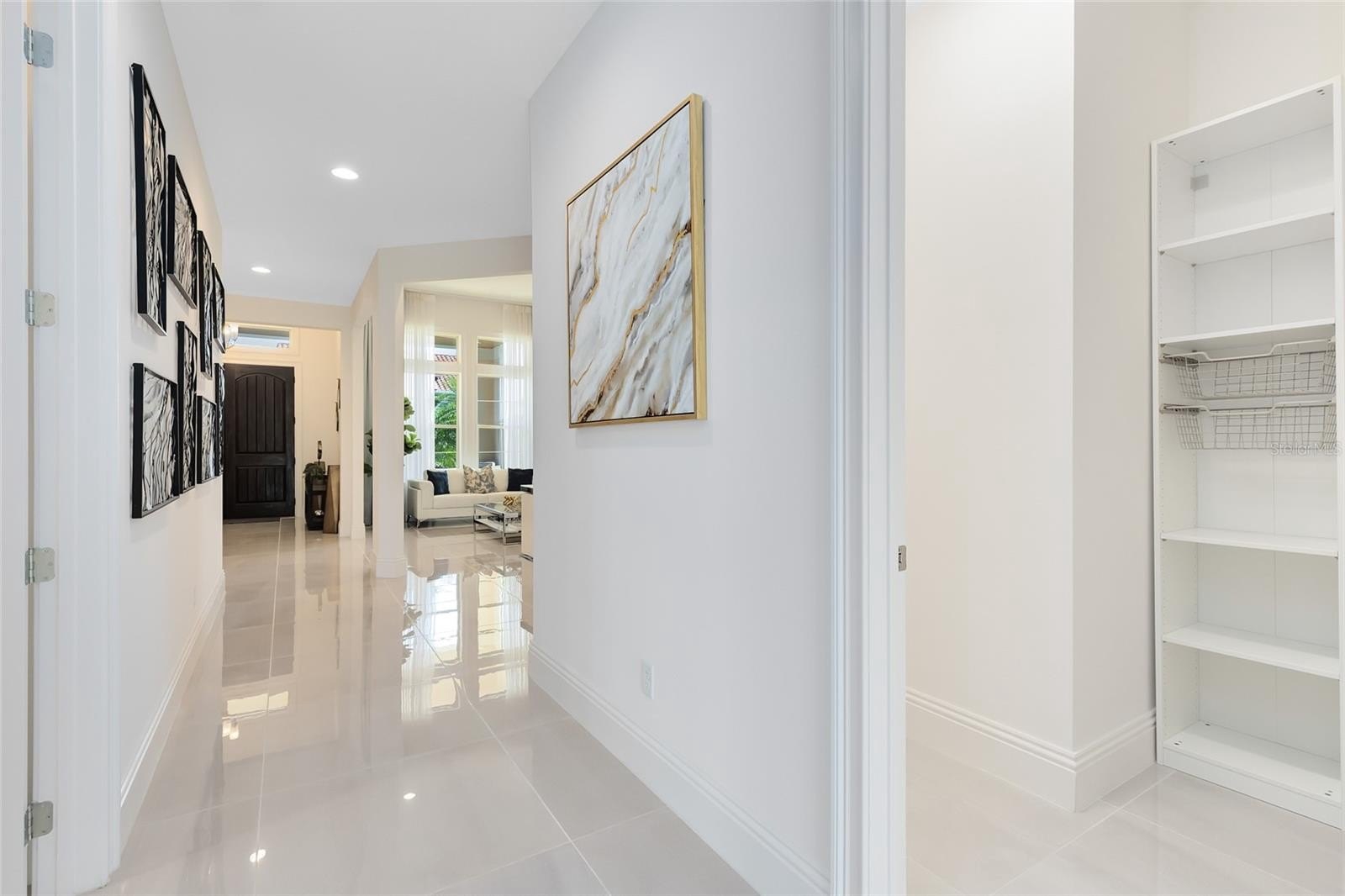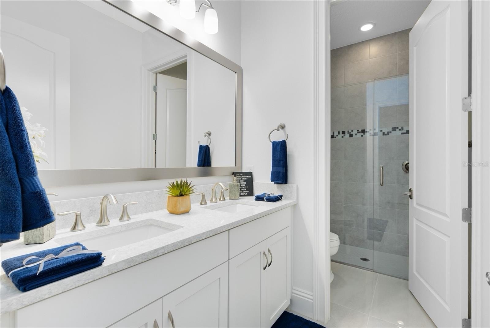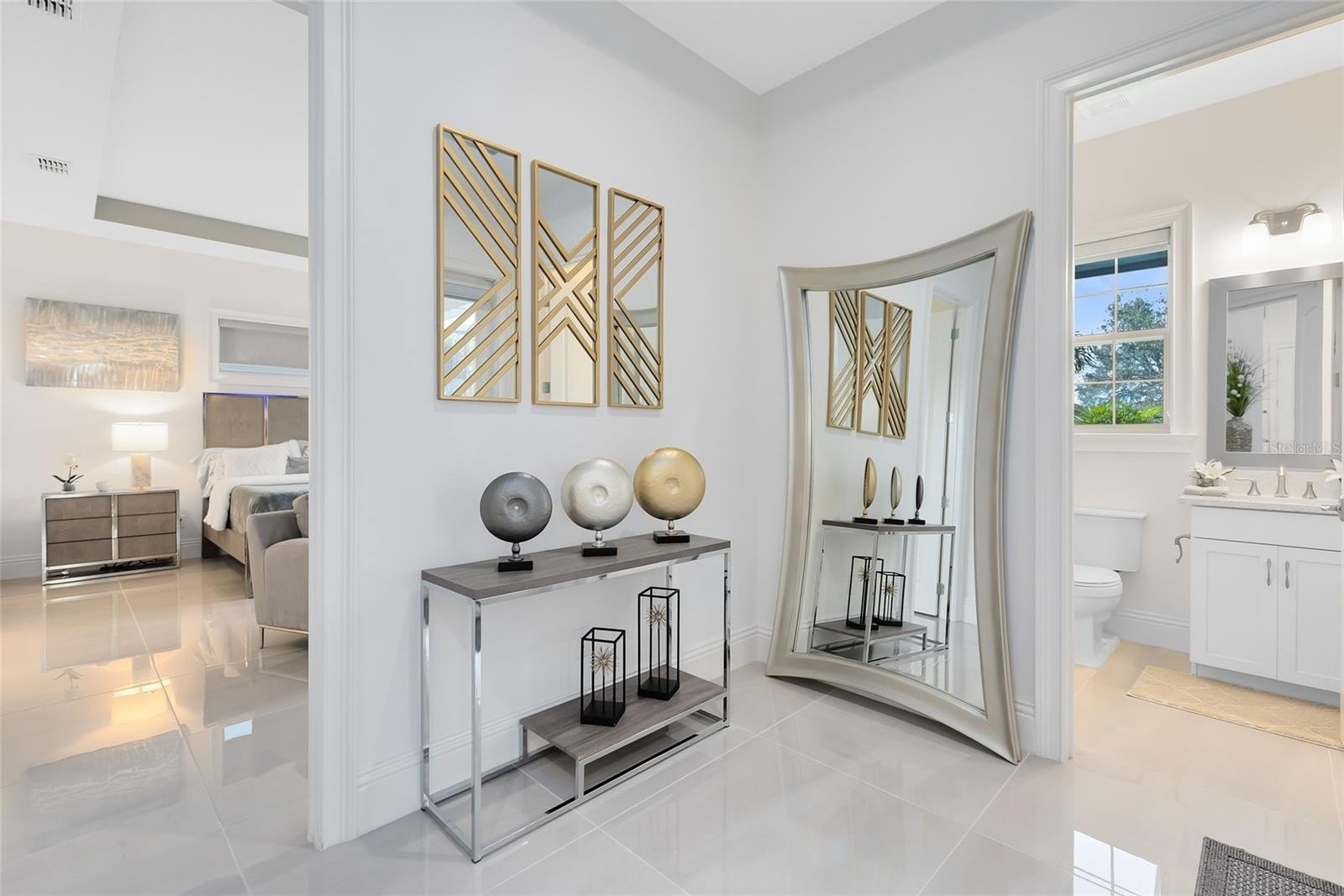 The home offers four spacious bedrooms and four elegant baths. The master suite is a private retreat, featuring double doors to a spa-like ensuite with a standalone Kohler tub, dual shower heads, and a custom walk-in closet with extra-tall storage.