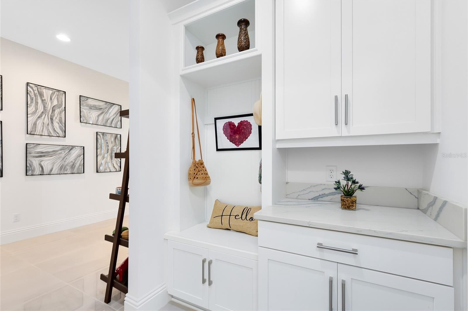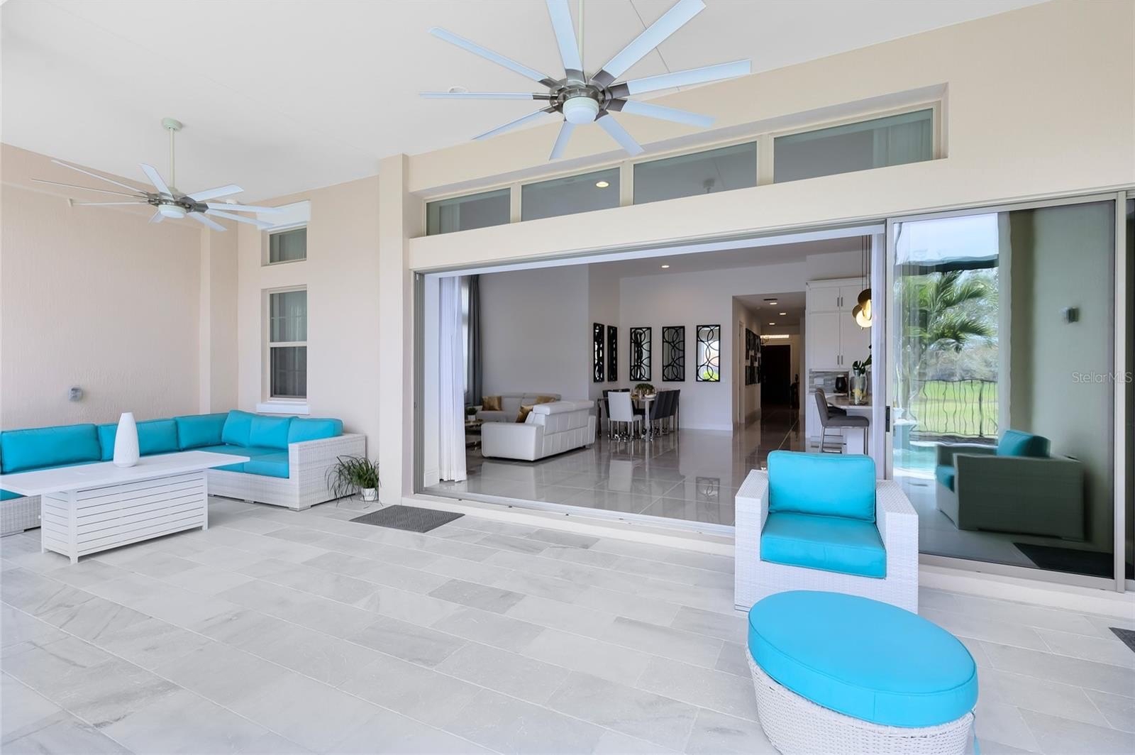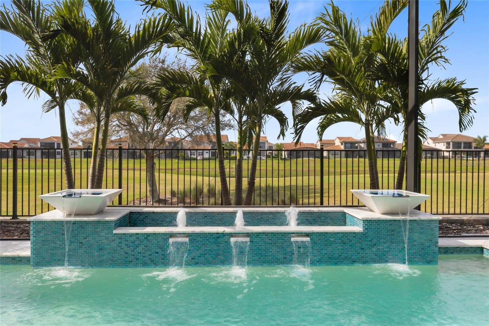Outdoor living shines with a travertine lanai, screen enclosure, and pre-plumbed BBQ setup. The smart pool system offers heating, jacuzzi jets, and programmable lighting, all controlled from your phone.