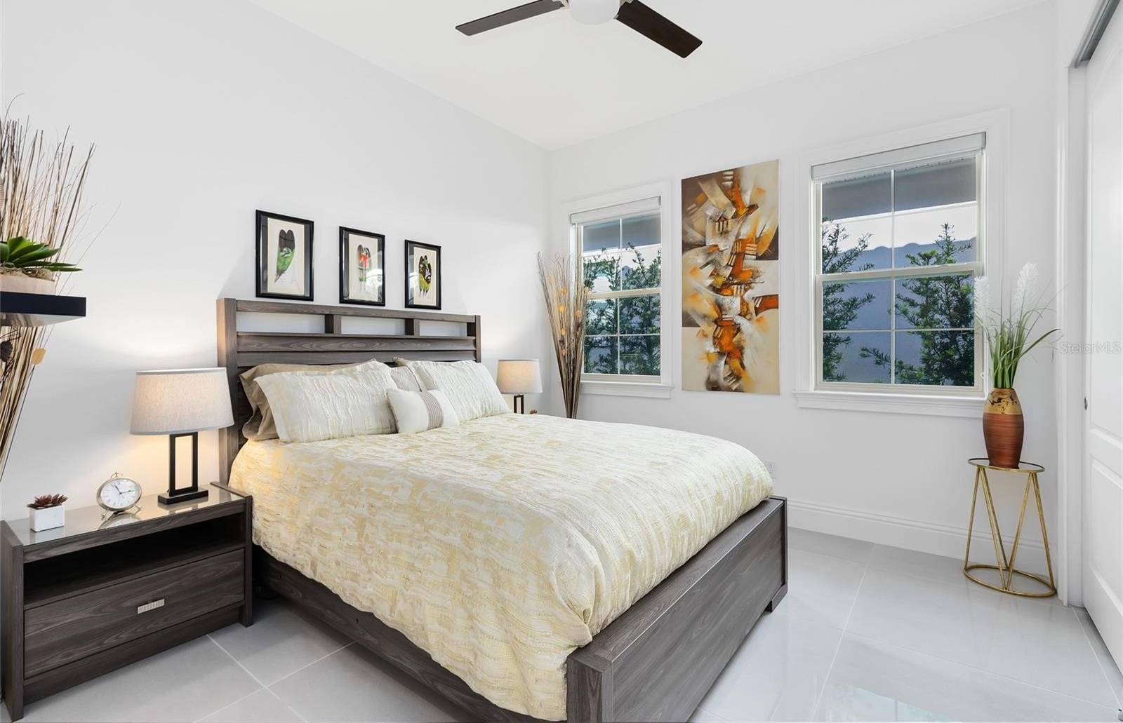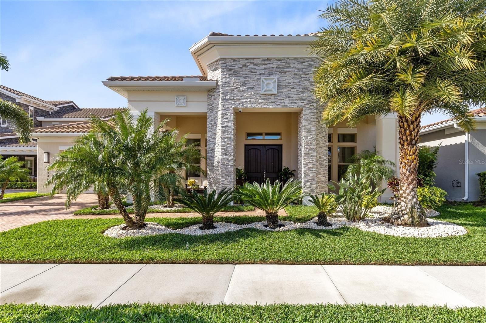 Welcome to an architectural gem in the esteemed Eagle Creek community, built in 2021 by Jones Homes. This luxury residence captures water views framed by lush landscaping, with smart exterior enhancements including a remote irrigation system and security lighting. Spanning 3,170 sq. ft., the open floor plan seamlessly connects indoor living to the saltwater pool and spa, ideal for entertaining.
