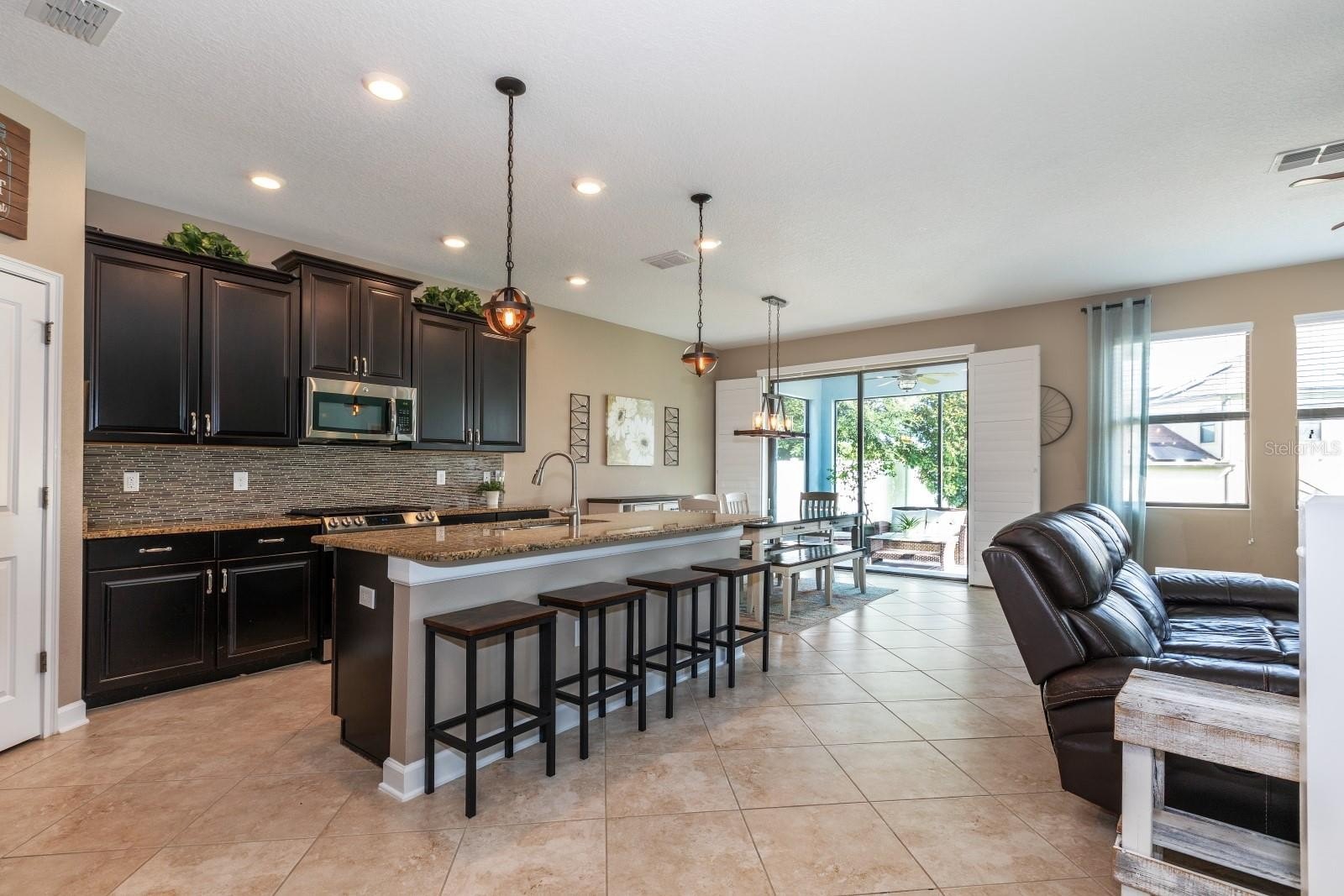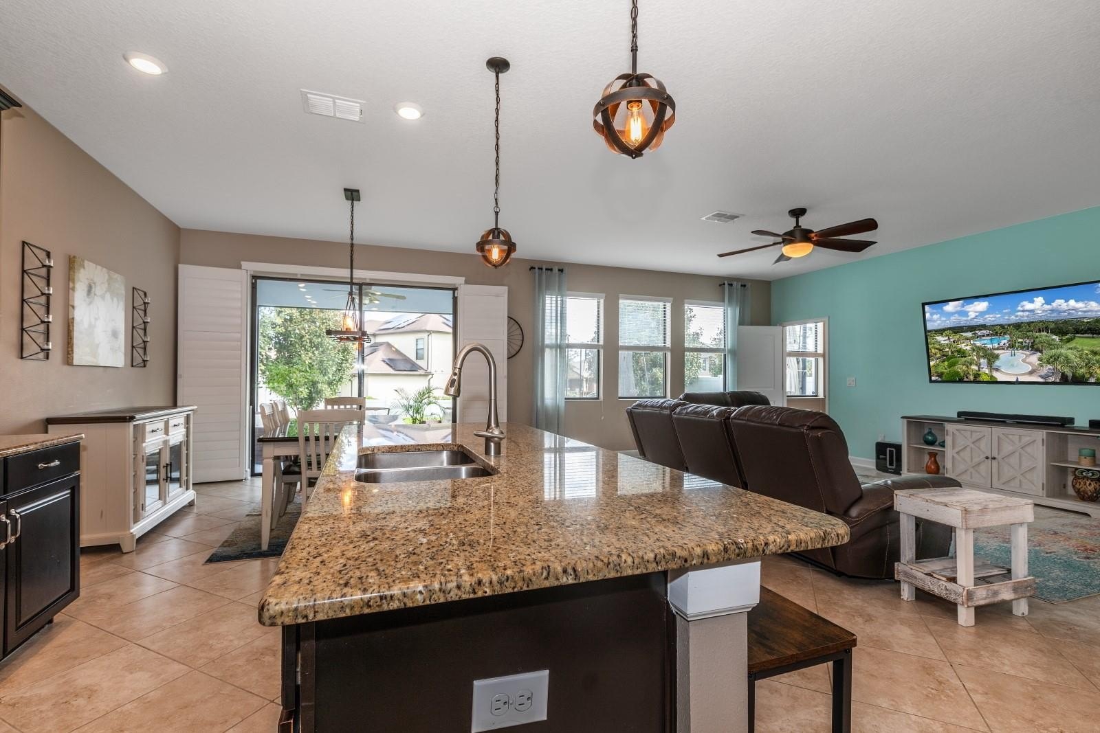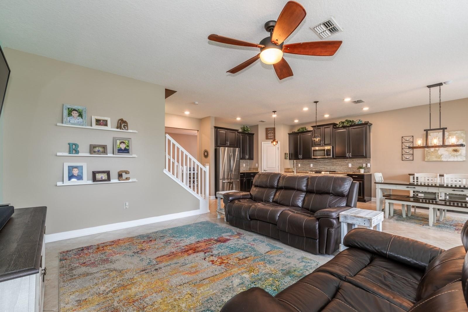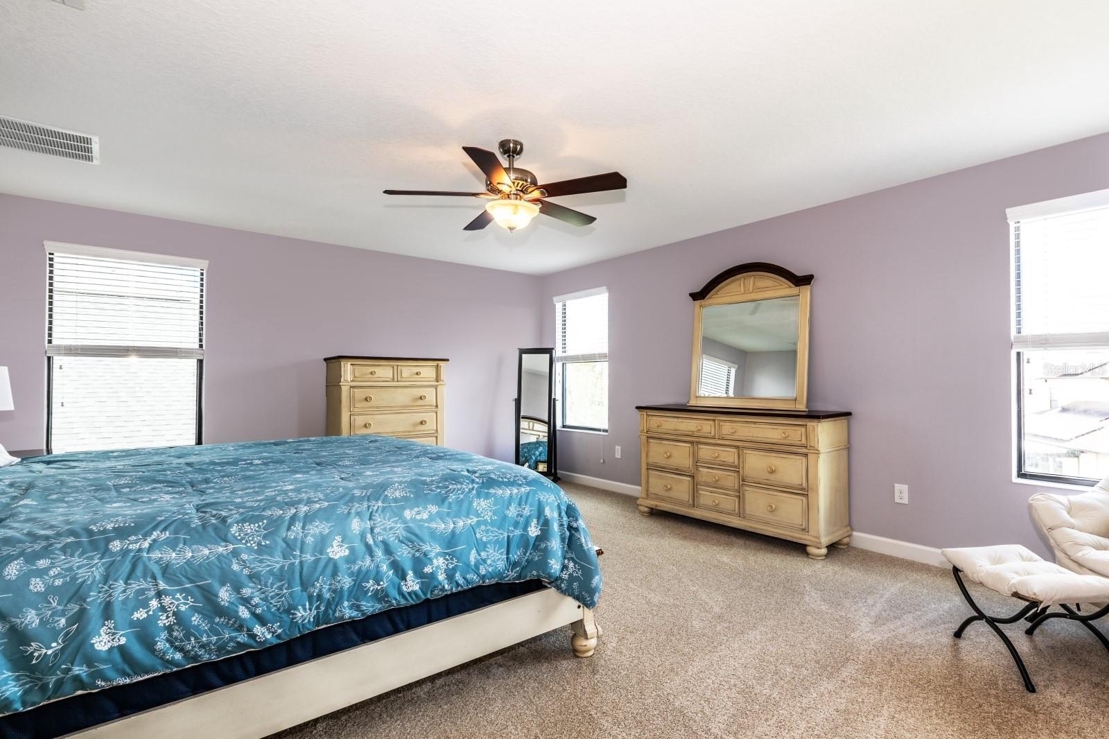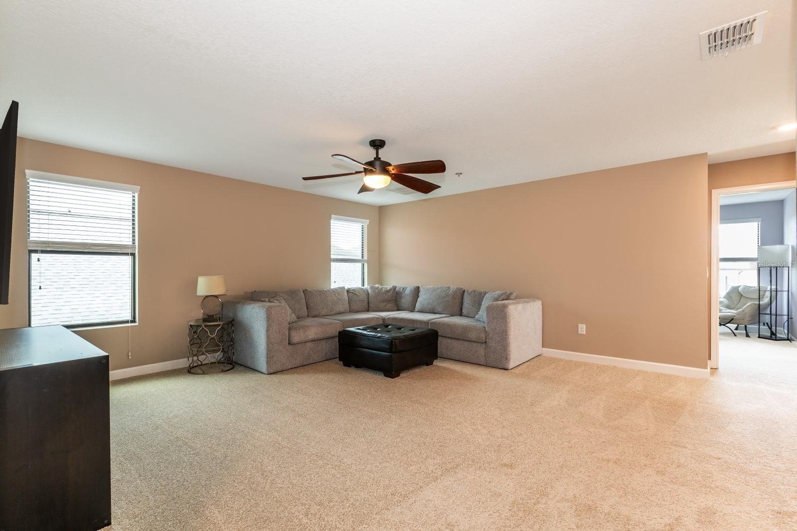 Welcome home! This bright and beautifully maintained five-bedroom, three-bathroom home with an office nook is located in the highly sought-after community of Summerlake in Winter Garden. Offering over 3,200 square feet of living space, a spacious fully fenced backyard, and a three-car tandem garage, this home features fresh exterior paint in 2024, brand new carpeting upstairs, and luxury vinyl plank flooring on the stairs and in the downstairs guest suite. The kitchen boasts wood cabinets, granite countertops, a newer gas stove, newer refrigerator, center island, breakfast bar, and an eat-in nook, all flowing seamlessly into the living and dining spaces. Sliding doors with plantation shutters open to a screened porch and extended paver patio overlooking the backyard. The upstairs primary suite offers his and hers walk-in closets, dual sinks, a soaking tub, and a walk-in shower. All upstairs bedrooms include walk-in closets, and an expansive loft is perfect for a game room or second living area. Community amenities include a resort style pool, clubhouse, fitness center, fishing dock, zipline, playgrounds, tennis and basketball courts, dog park, and nightly Disney fireworks views. Conveniently located just minutes from Hamlin Town Center, Winter Garden Village, Historic Downtown Winter Garden, and FL 429, with easy access to Orlando’s top attractions including Disney, Universal Studios, and SeaWorld.