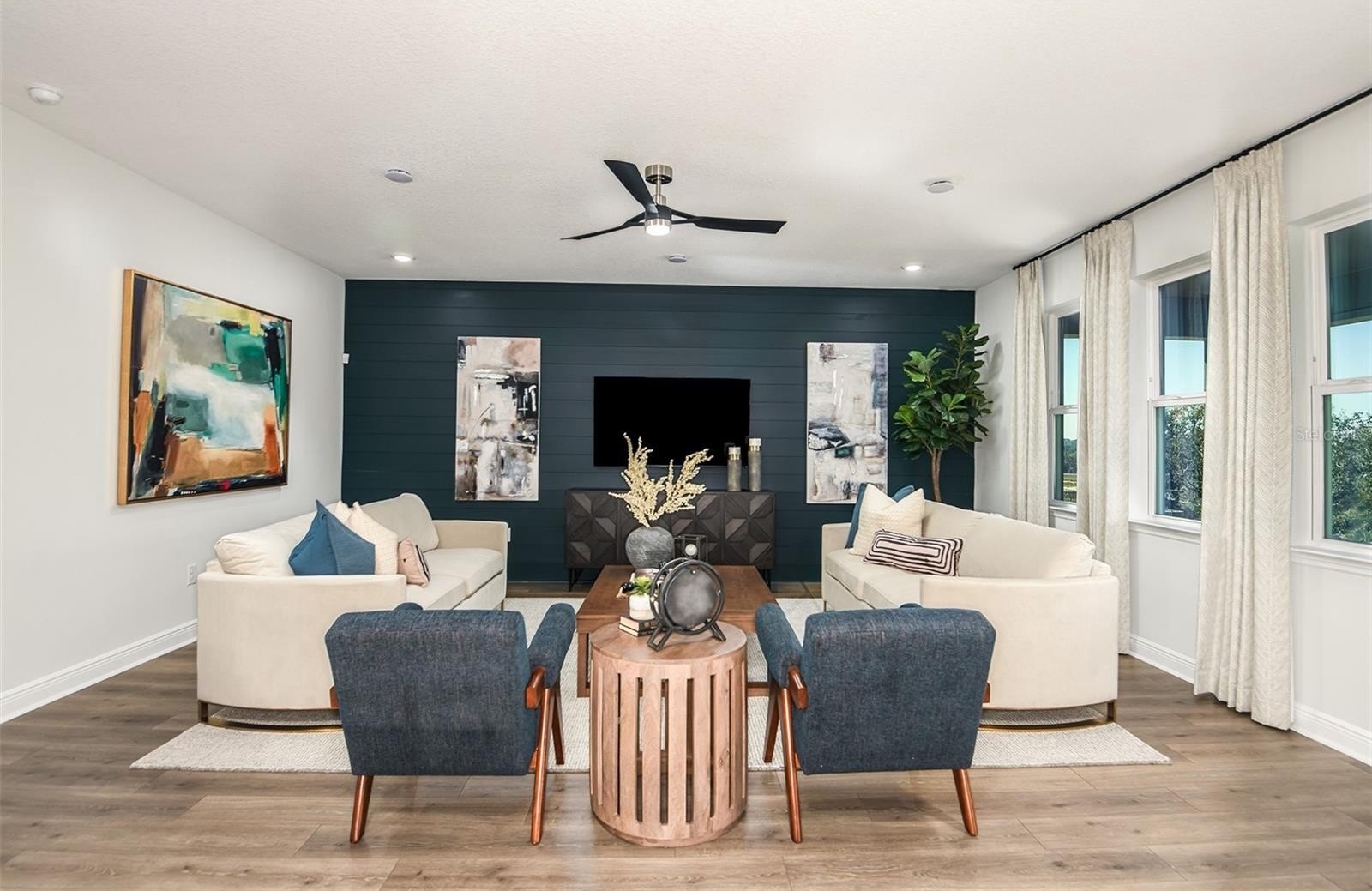 room, a modern kitchen with quartz countertops, and a cozy dining area. The primary suite boasts a tray ceiling, while the additional bedrooms provide plenty of room for family or guests.