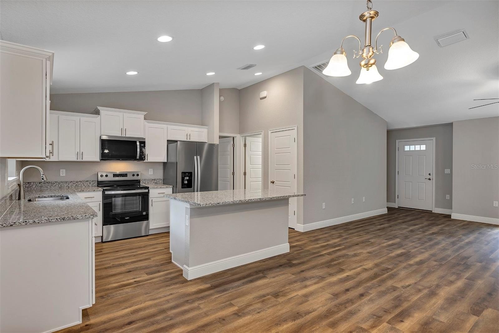 This home is fully fenced!!! I'm excited to share some details about the Hemlock II model, a home that beautifully combines modern style with comfortable living. Here are some of the features that make this home stand out: * **Spacious and Flowing Layout:** The Hemlock II boasts high ceilings and an open-concept design. Its thoughtful split-floor plan creates a spacious feel and allows for effortless movement throughout the home. * **Quality Finishes:** You'll find durable and stylish luxury vinyl plank flooring throughout, which is also very easy to maintain. The kitchen and bathrooms feature soft-close cabinets and elegant granite countertops. * **Modern Kitchen:** The kitchen is equipped with sleek stainless steel appliances, recessed lighting, and a generous island that can serve as a cooking space, breakfast bar, or casual dining area. * **Owner's Retreat:** The owner's retreat is enhanced with tray ceilings and includes a large walk-in closet and an en suite bathroom. The bathroom features dual sinks and a walk-in shower with beautiful floor-to-ceiling wall tile. * **Outdoor Living:** Enjoy the outdoors in comfort on the screened and covered lanai, which provides protection from the elements. * **Turnkey Ready:** For added convenience, this home comes with ceiling fans, blinds, and a garage door opener, making it truly turnkey. It also includes an indoor laundry room. The property is fully fenced, offering privacy and security. Special Financing: Rates as Low as 5.5 . Act now and get interest rates as low as 5.5 with the builder's preferred lender. Ask how to qualify or for more details . Please feel free to call today to schedule a showing!