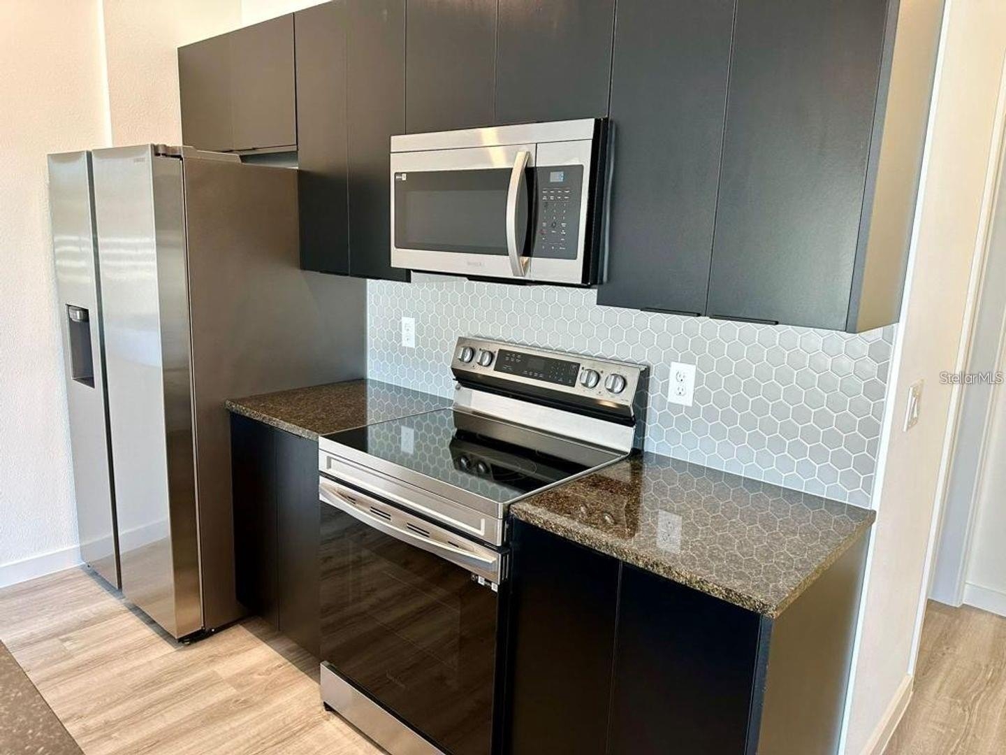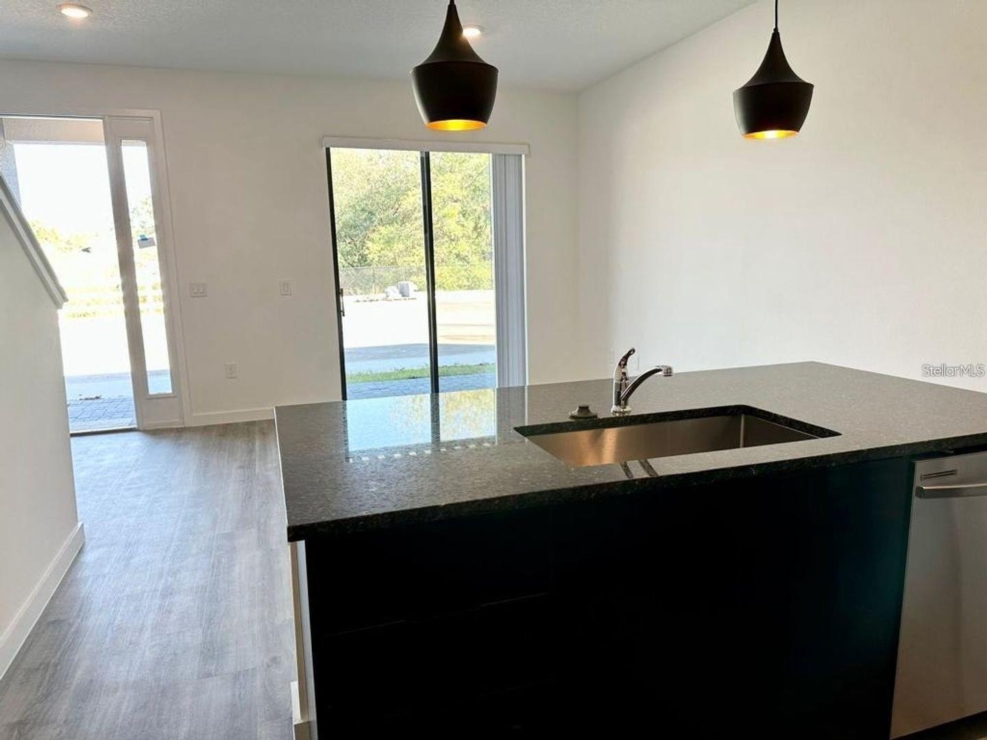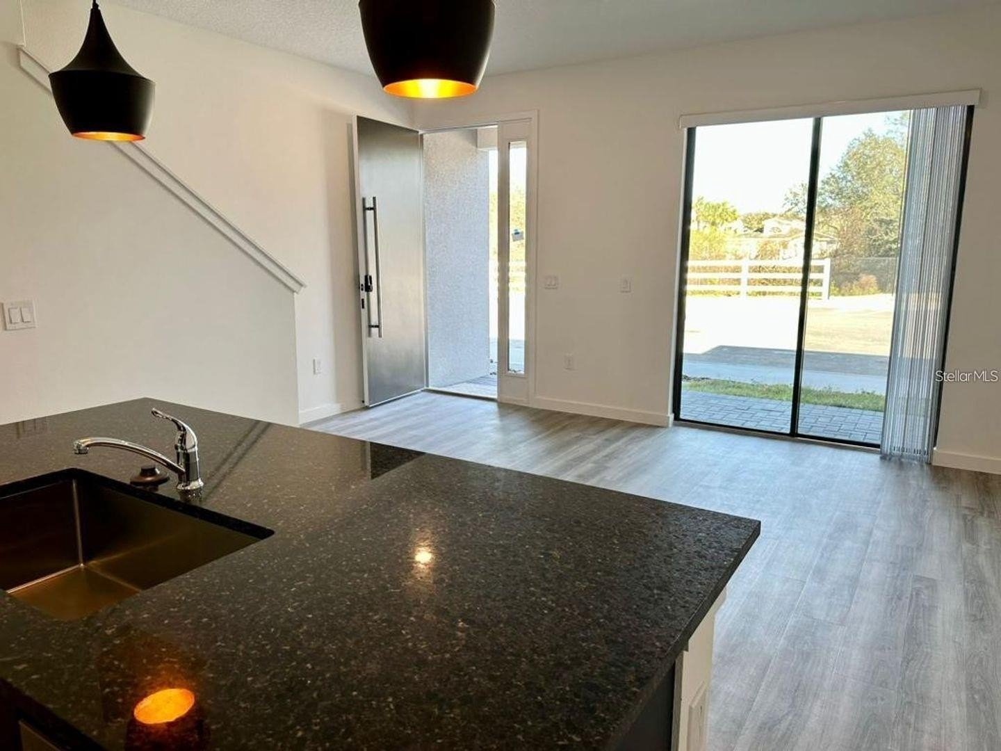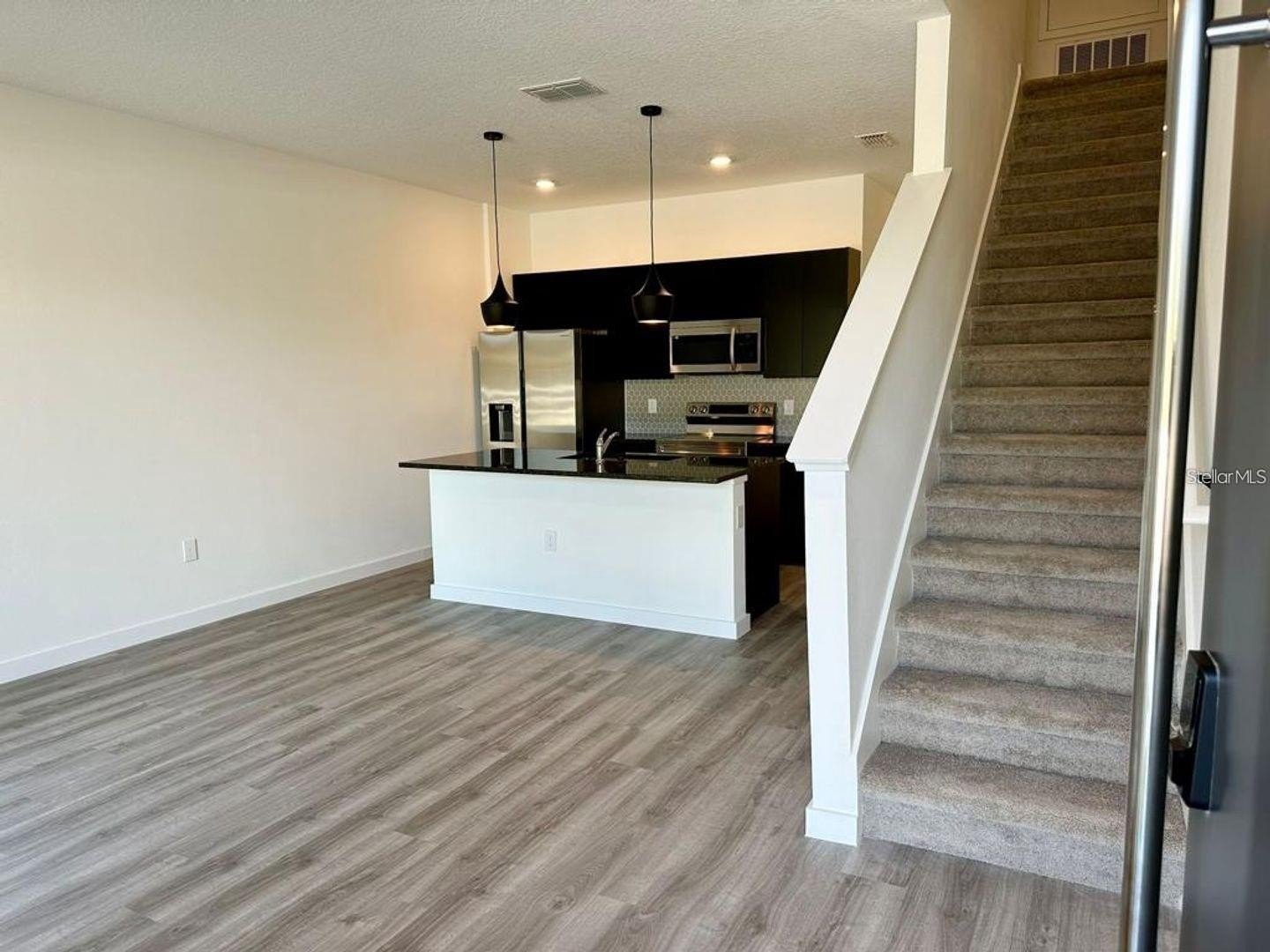With high-end finishes, the property features vinyl flooring that imitates wood throughout, providing elegance and practicality. The open-concept kitchen is a true highlight: equipped with sophisticated cabinetry, quartz countertops, and stainless steel appliances, all accented by contemporary light fixtures that complete the space with charm and sophistication.