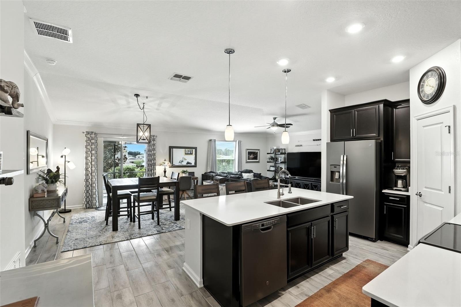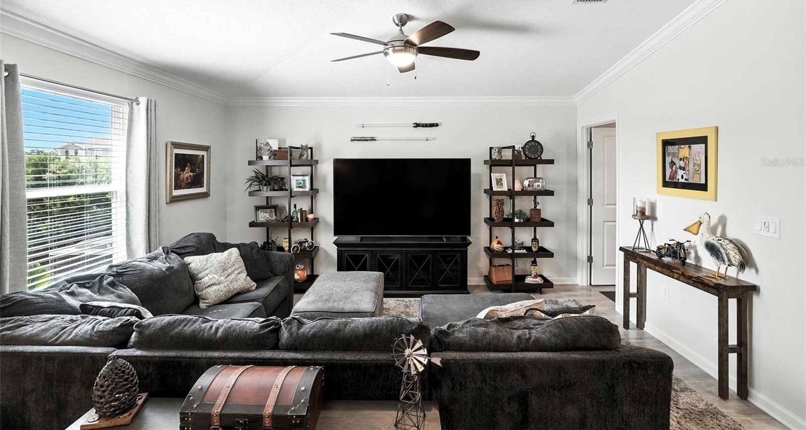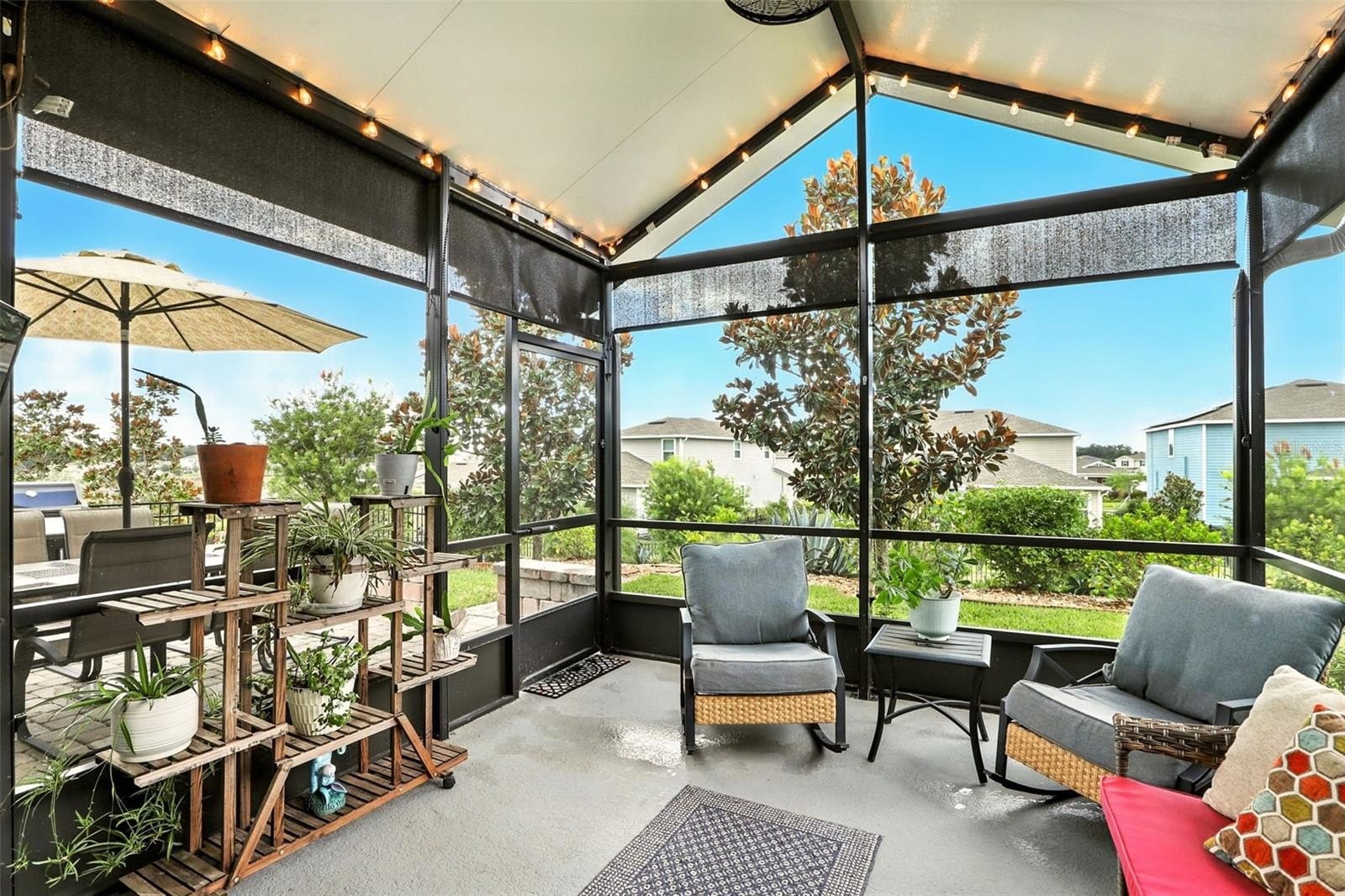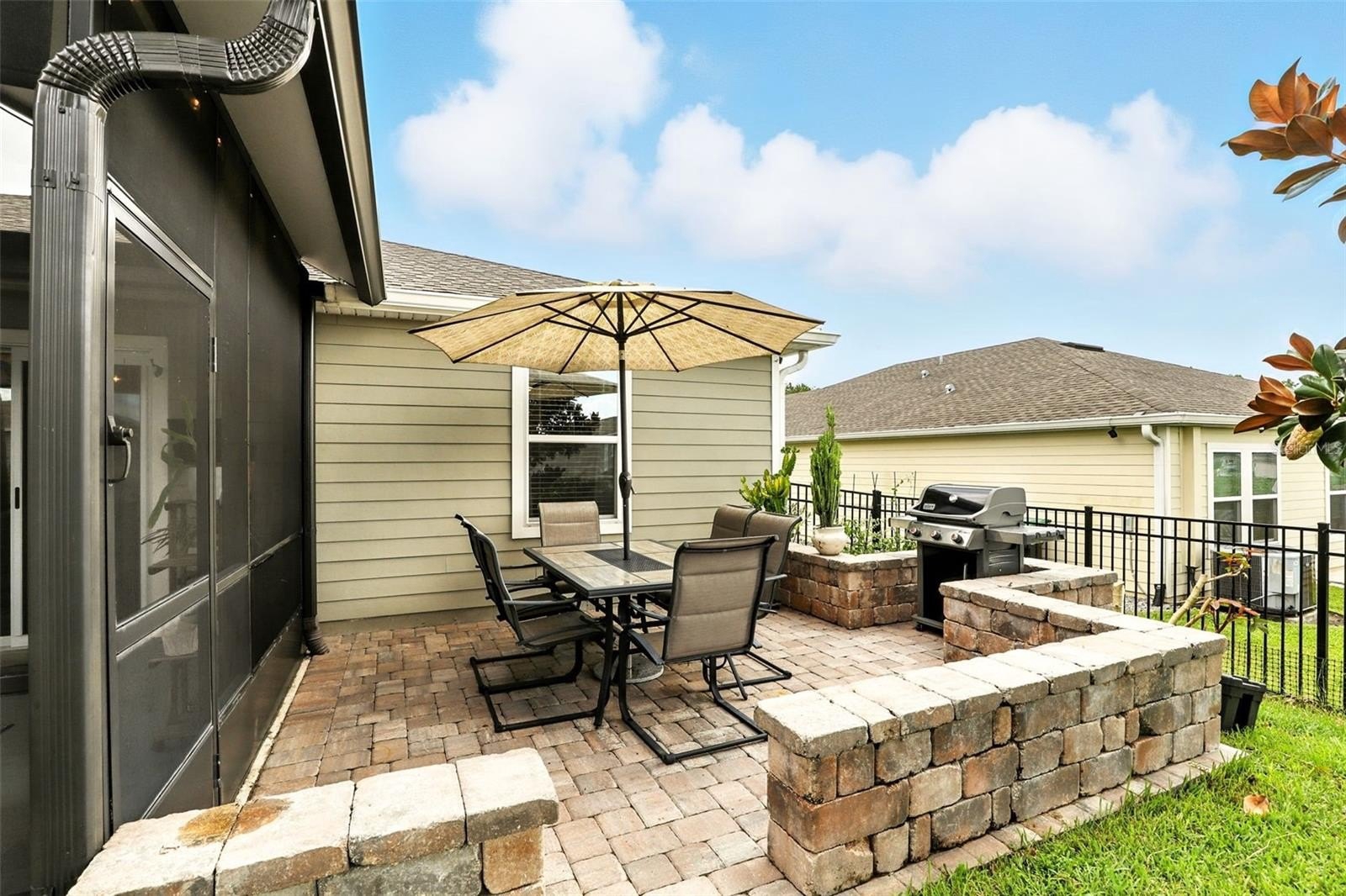 Welcome to your beautiful new home in charming Mount Dora. The open floor plan creates a perfect space for entertaining, with a seamless flow from the living area to the kitchen. The kitchen is a chef's dream, featuring STAINLESS STEEL APPLIANCES, QUARTZ COUNTERTOPS, and a convenient WALK IN PANTRY. The SPLIT FLOORPLAN provides ultimate privacy, separating the bedrooms from the main living areas. Step into the master suite, which offers a serene view of backyard. The master bathroom features double sinks and a CUSTOM WALK IN CLOSET, providing both luxury and ample storage. Outside, your own retreat awaits. The custom screened patio, complete with RETRACTABLE SHADES and BUILT IN FAN, is ideal for relaxing in any weather. Beyond the screen, an additional UNCOVERED PAVER PATIO with a BUILT IN CUSTOM GRILL NOOK is perfect for al fresco dining. Gardening enthusiasts will fall in love with the backyard. It's a lush and vibrant sanctuary, with a stunning variety of mature trees and colorful flowers, creating a truly serene and beautiful environment. Stoneybrook Hills is a beautiful GATED COMMUNITY packed with resort-style amenities: a sparkling pool, fitness center, tennis and basketball courts, baseball field, and playground. Schedule your private showing today and fall in love!