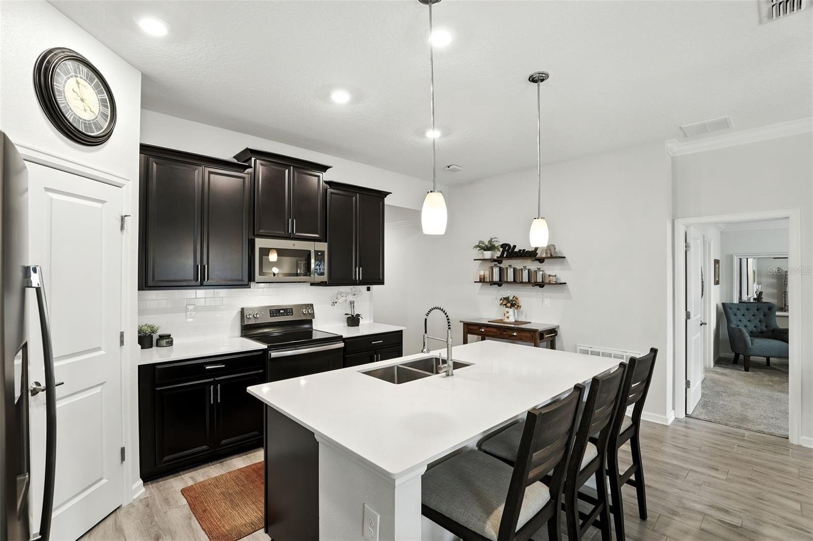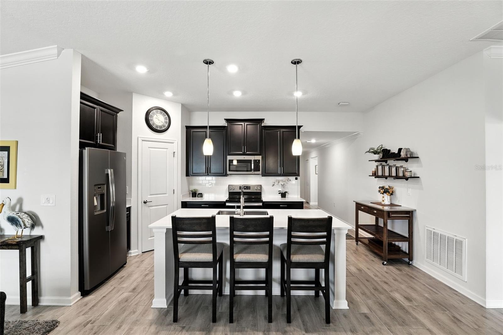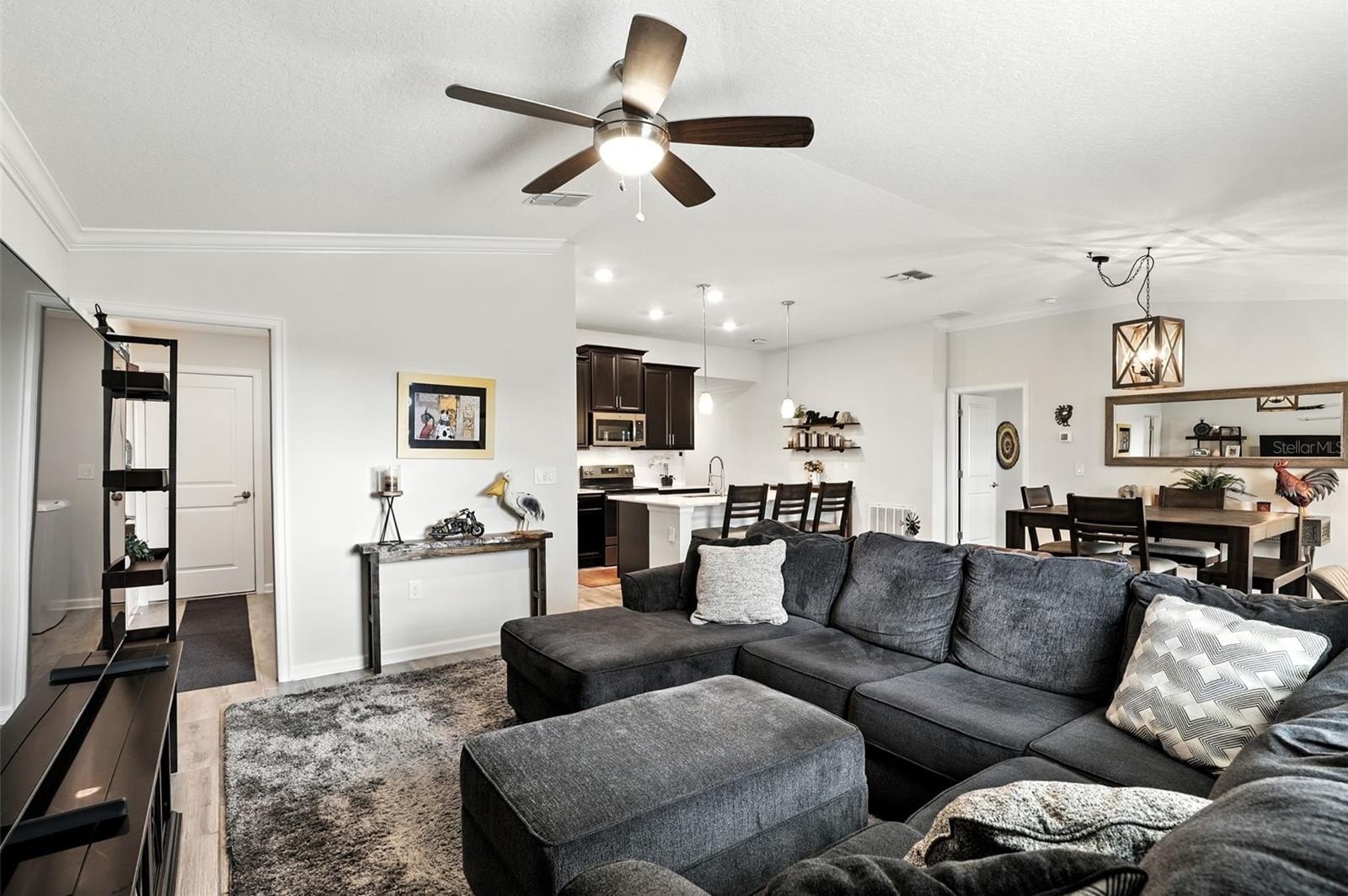 Welcome to your beautiful new home in charming Mount Dora. The open floor plan creates a perfect space for entertaining, with a seamless flow from the living area to the kitchen. The kitchen is a chef's dream, featuring STAINLESS STEEL APPLIANCES, QUARTZ COUNTERTOPS, and a convenient WALK IN PANTRY. The SPLIT FLOORPLAN provides ultimate privacy, separating the bedrooms from the main living areas. Step into the master suite, which offers a serene view of backyard. The master bathroom features double sinks and a CUSTOM WALK IN CLOSET, providing both luxury and ample storage. Outside, your own retreat awaits. The custom screened patio, complete with RETRACTABLE SHADES and BUILT IN FAN, is ideal for relaxing in any weather. Beyond the screen, an additional UNCOVERED PAVER PATIO with a BUILT IN CUSTOM GRILL NOOK is perfect for al fresco dining. Gardening enthusiasts will fall in love with the backyard. It's a lush and vibrant sanctuary, with a stunning variety of mature trees and colorful flowers, creating a truly serene and beautiful environment. Stoneybrook Hills is a beautiful GATED COMMUNITY packed with resort-style amenities: a sparkling pool, fitness center, tennis and basketball courts, baseball field, and playground. Schedule your private showing today and fall in love!