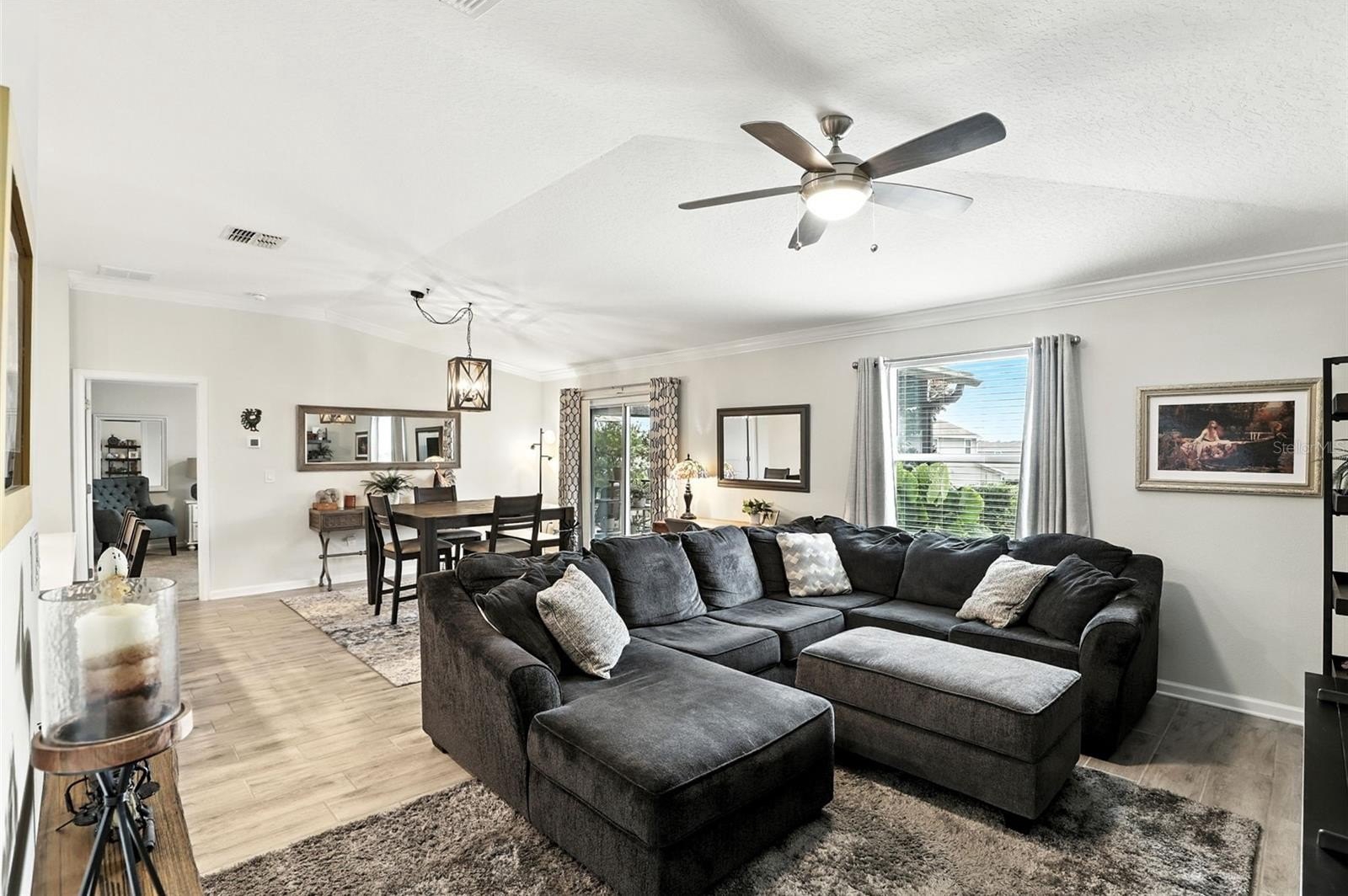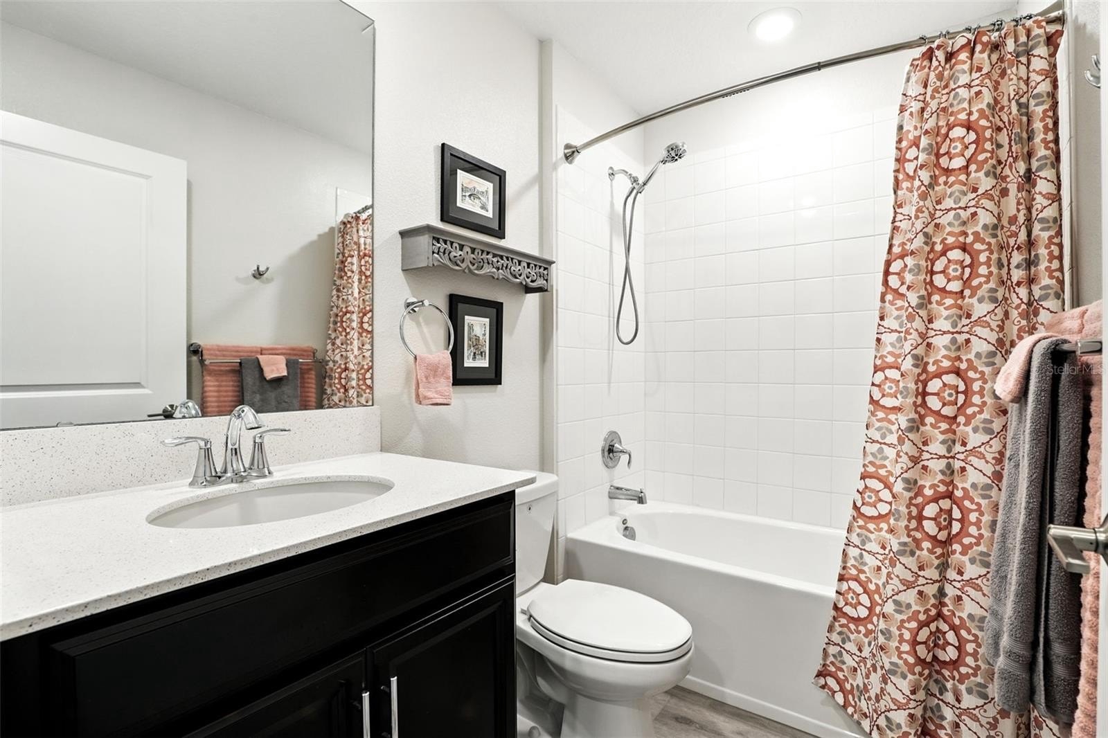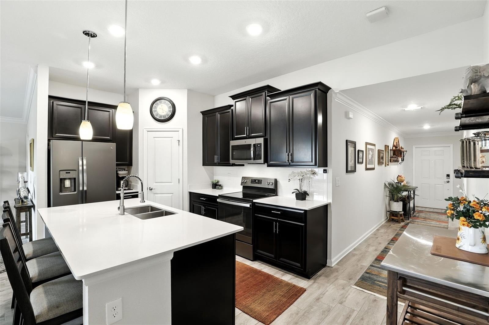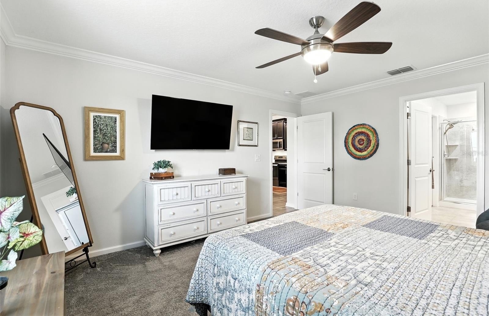 Welcome to your beautiful new home in charming Mount Dora. The open floor plan creates a perfect space for entertaining, with a seamless flow from the living area to the kitchen. The kitchen is a chef's dream, featuring STAINLESS STEEL APPLIANCES, QUARTZ COUNTERTOPS, and a convenient WALK IN PANTRY. The SPLIT FLOORPLAN provides ultimate privacy, separating the bedrooms from the main living areas. Step into the master suite, which offers a serene view of backyard. The master bathroom features double sinks and a CUSTOM WALK IN CLOSET, providing both luxury and ample storage. Outside, your own retreat awaits. The custom screened patio, complete with RETRACTABLE SHADES and BUILT IN FAN, is ideal for relaxing in any weather. Beyond the screen, an additional UNCOVERED PAVER PATIO with a BUILT IN CUSTOM GRILL NOOK is perfect for al fresco dining. Gardening enthusiasts will fall in love with the backyard. It's a lush and vibrant sanctuary, with a stunning variety of mature trees and colorful flowers, creating a truly serene and beautiful environment. Stoneybrook Hills is a beautiful GATED COMMUNITY packed with resort-style amenities: a sparkling pool, fitness center, tennis and basketball courts, baseball field, and playground. Schedule your private showing today and fall in love!