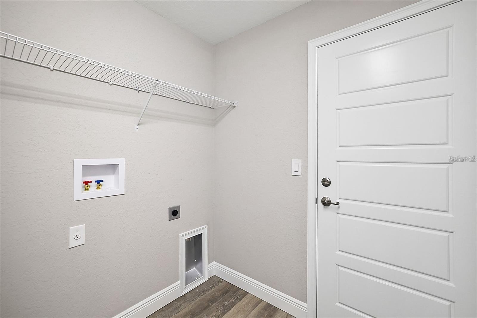 The primary suite is a private retreat, highlighted by elegant tray ceilings, a generous walk-in closet, dual vanities, and a beautifully tiled recessed shower. Two additional bedrooms share a full bath, and a linen closet in the guest hallway provides extra storage. Durable plank-style flooring runs throughout the entire home with no carpet anywhere, offering both style and easy maintenance. A separate inside utility closet in the laundry room adds further convenience.