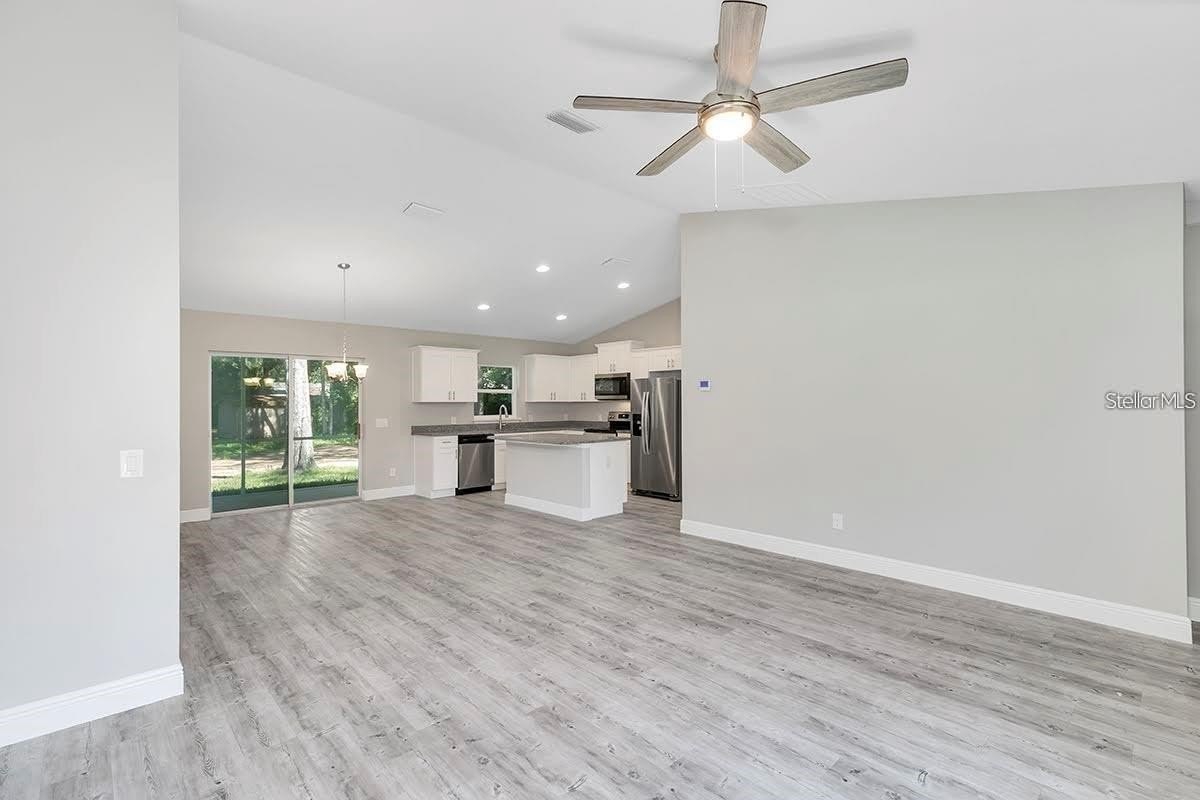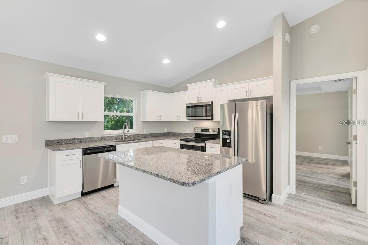 Located on a highly desirable lot, this completed home offers 3 bedrooms, 2 full bathrooms, and a spacious open-concept layout designed for modern living. As you enter, vaulted ceilings create an airy and welcoming atmosphere that flows seamlessly into the main living area. The eat-in kitchen is a true centerpiece, featuring an oversized island with bar seating, granite countertops, soft-close wooden cabinetry, and a conveniently placed pantry. Perfect for both everyday living and entertaining, the kitchen opens directly to the family room so you’re always part of the conversation.
