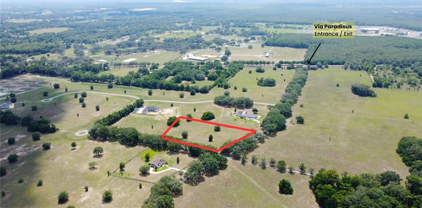 In the country, but convenient to everything, Via Paradisus is a horse-lover's paradise. Majestic golden gates with mature oak tree lined streets welcome you to this paradise in southeast Ocala. Offering just over 4 acres of clear countryside, this property is an inviting option for those looking for luxurious place to build their dream home. This high and dry parcel needs minimal site work for building. This deed restricted community offers direct access to the Florida Greenway’s miles of pristine trails. Or, ride your horses without every leaving the neighborhood thanks to myriad bridle trails.