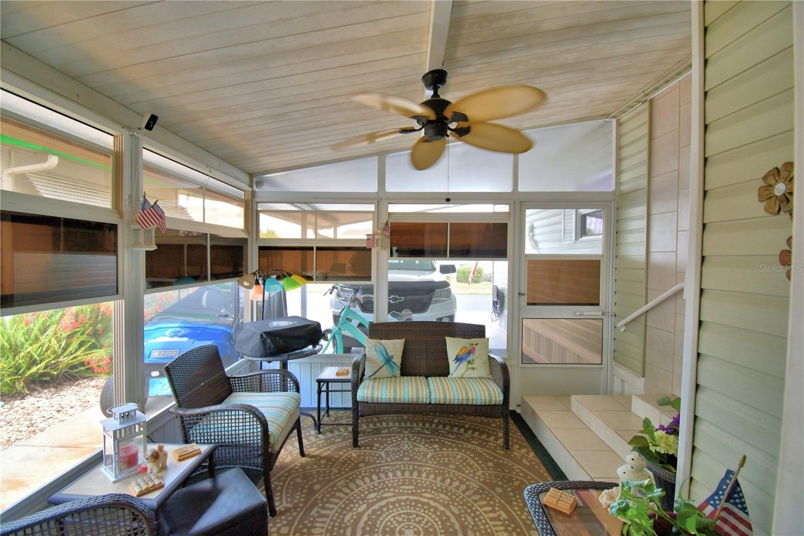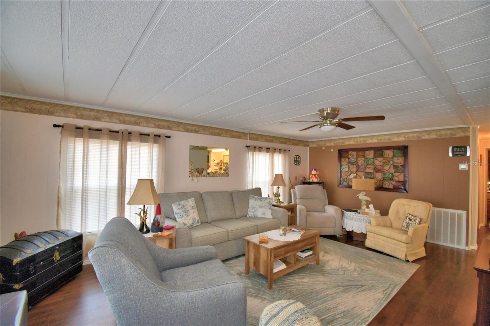 This is a must see home!! This home has two porch areas plus a bonus room. The side porch is perfect for enjoying your morning coffee and watching the world go by. Pass through the laundry and shop area and find the bonus room. Perfect for a home office or man cave. The living room is spacious and comfortable. Each bedroom has it's own walk in closet for lots of storage. Walk through the home to the back porch that is vented with air conditioning and included in the living square footage. This is a perfect area to sit and read your favorite book, or just enjoy the peaceful view and wildlife. Or you can step outside and enjoy the patio which offers two sheds for extra outdoor storage. This home is located in Oakwood Estates, an active 55+ community. You can join in on the monthly dinner pot lucks, or the Wednesday morning coffee and donuts, or the bi monthly ice cream socials. Oakwood offers many amenities including two pools, two clubhouses, shuffleboard, tennis courts, miniature golf, and much much more!! Call for your appointment today.