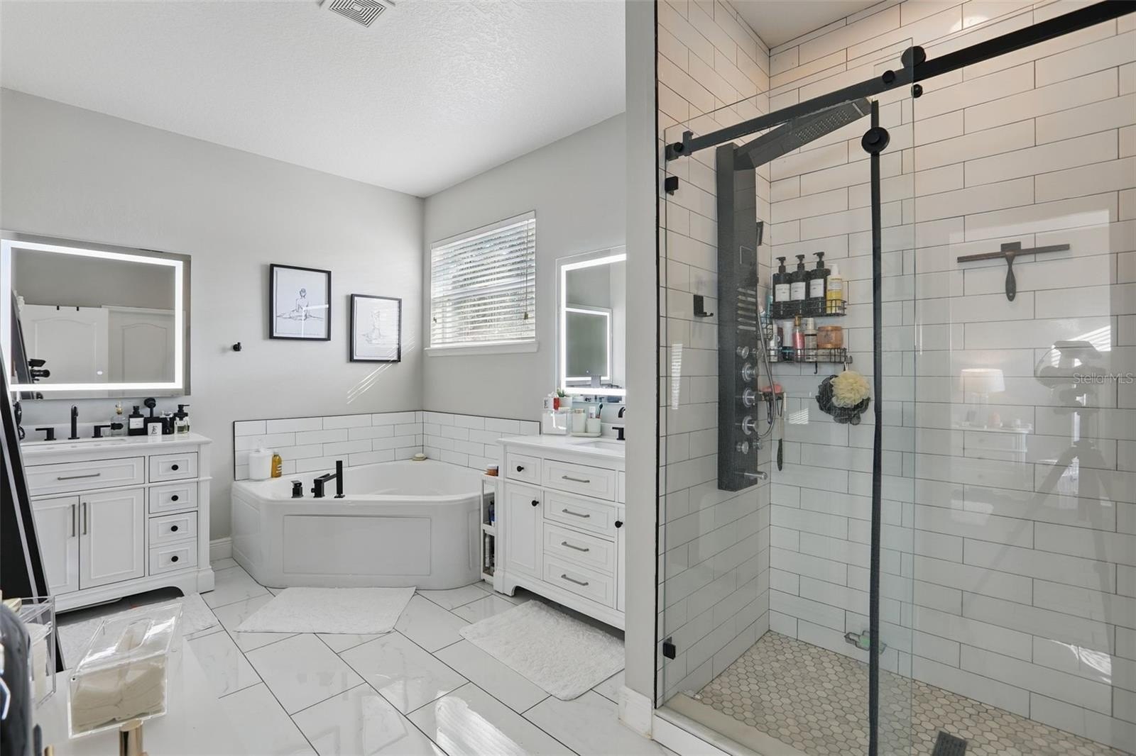connecting formal living and dining areas—perfect for entertaining. The primary suite is a dream retreat with a spa-like rain shower and