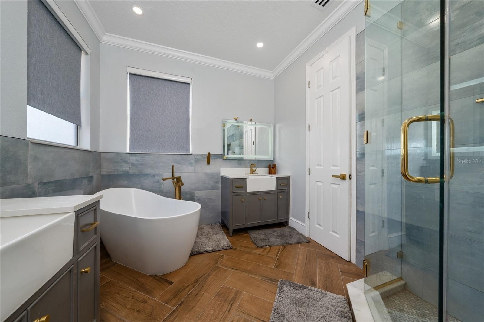 Step into calm and luxury in one of the two expansive master suites—each offering deluxe wet-room showers, dreamy garden tubs, and generous walk-in closets. The junior suite on the main floor adds convenience and versatility for guests.