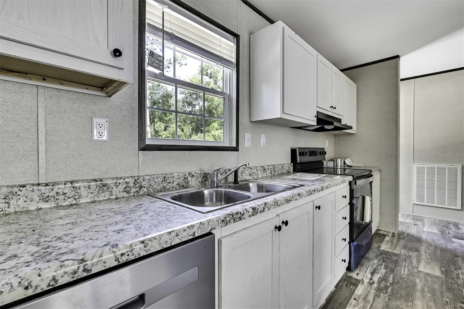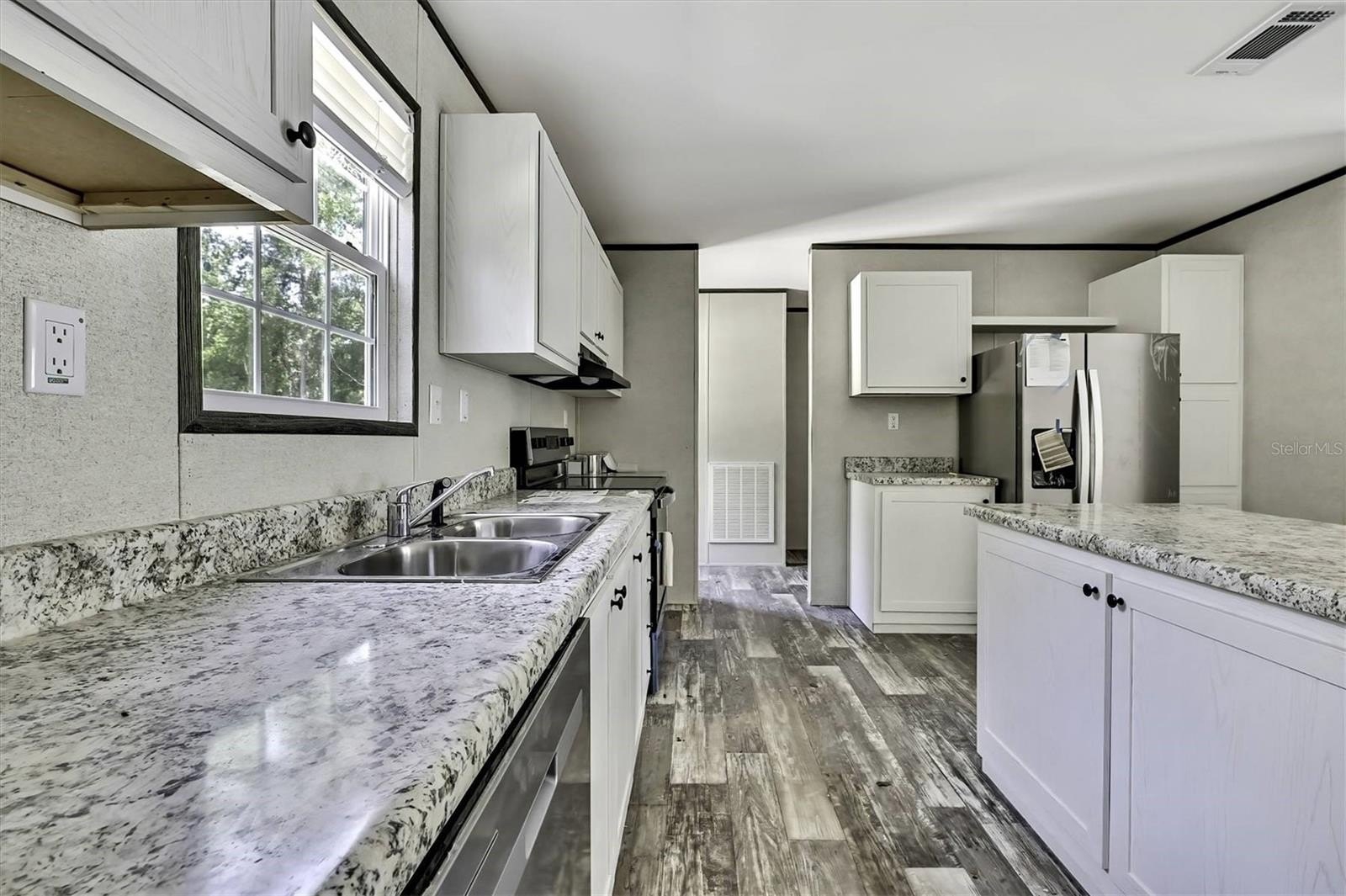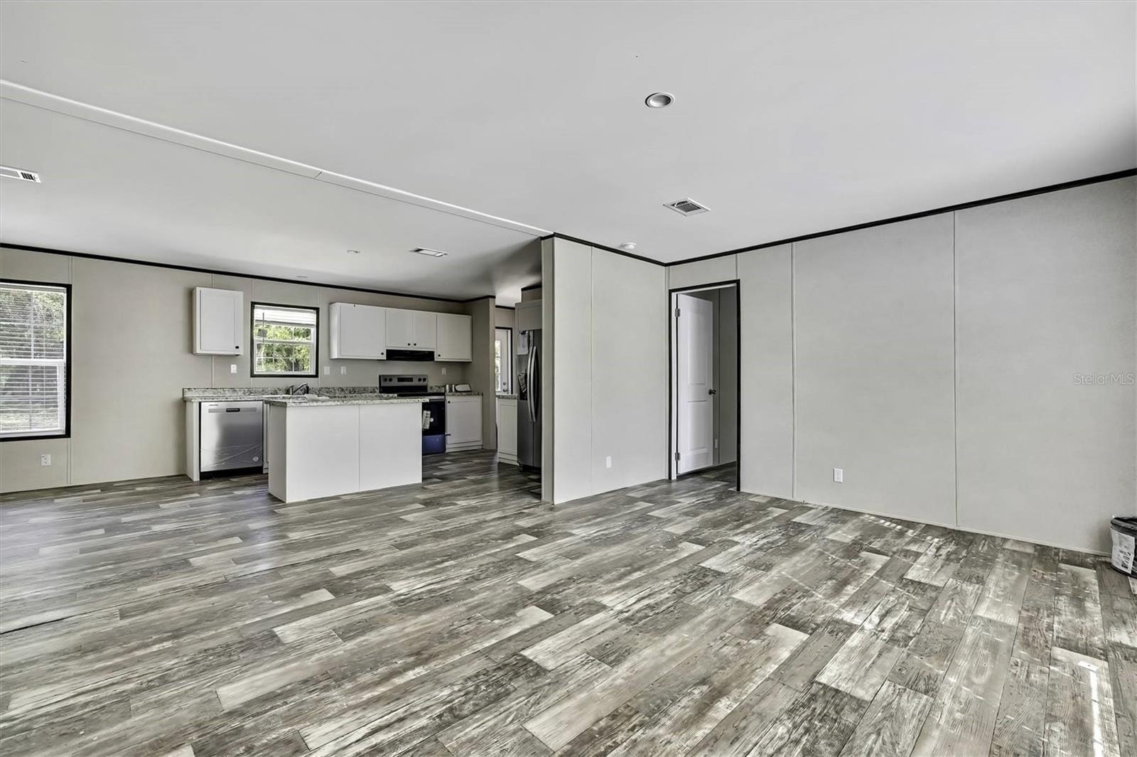 This brand new & never lived in 3/2 Champion Prime manufactured home is nestled on almost an acre of land with paved road access, offering the perfect blend of comfort and privacy. Each bedroom features a generous walk-in closet, ensuring plenty of storage space. The master bedroom includes a double-sink vanity in the en-suite bathroom for added convenience, plus a large walk-in shower. The open floorplan is filled with natural light, making it ideal for both family gatherings and quiet relaxation. In addition, there is a spacious & separate den that can even be used as a home office or bedroom. The modern kitchen features stainless steel appliances, white cabinetry, and an island. The large lot has plenty of room for all your toys & gardening. This home is move-in ready, all set for you & your family to enjoy! EVERYTHING is brand new & never used; well, septic, home, appliances, AC, etc. All of this is being offered for an amazing price, so schedule your showing today!