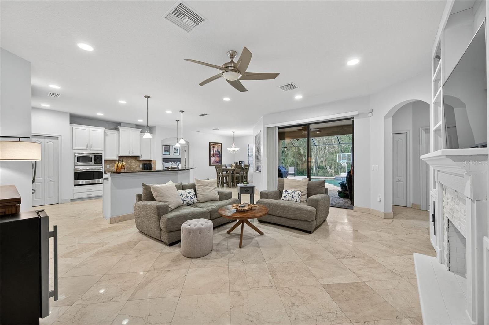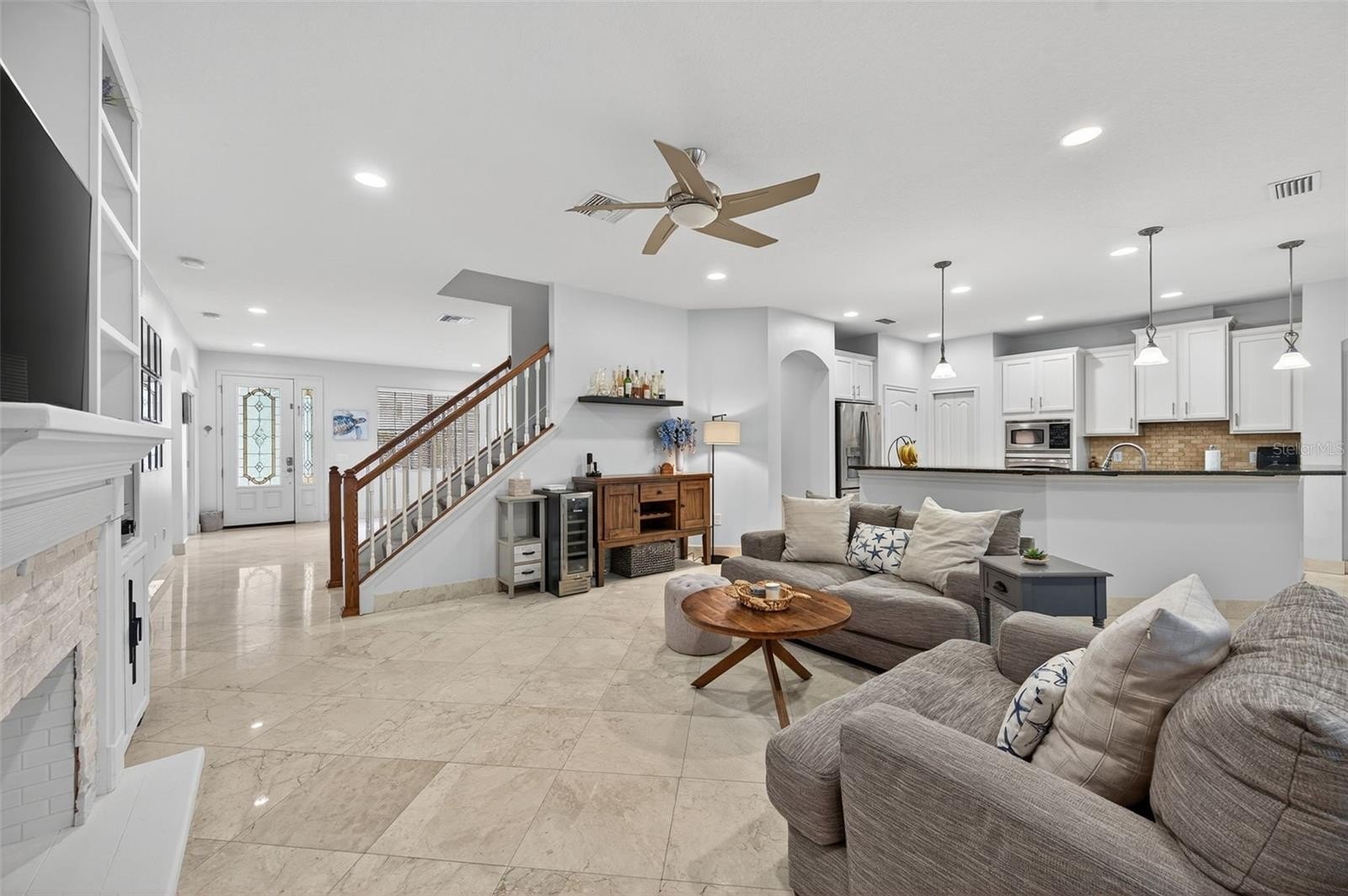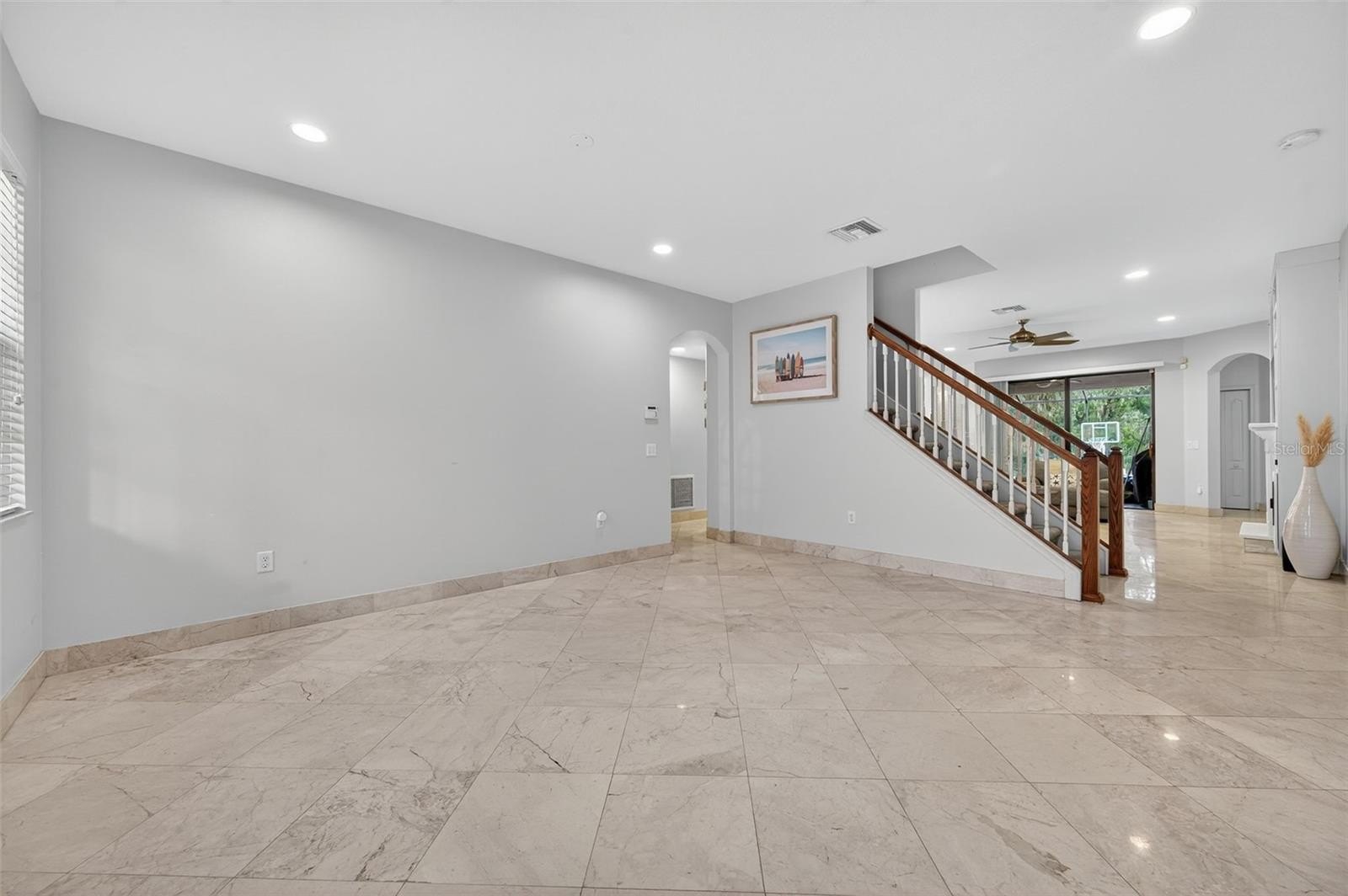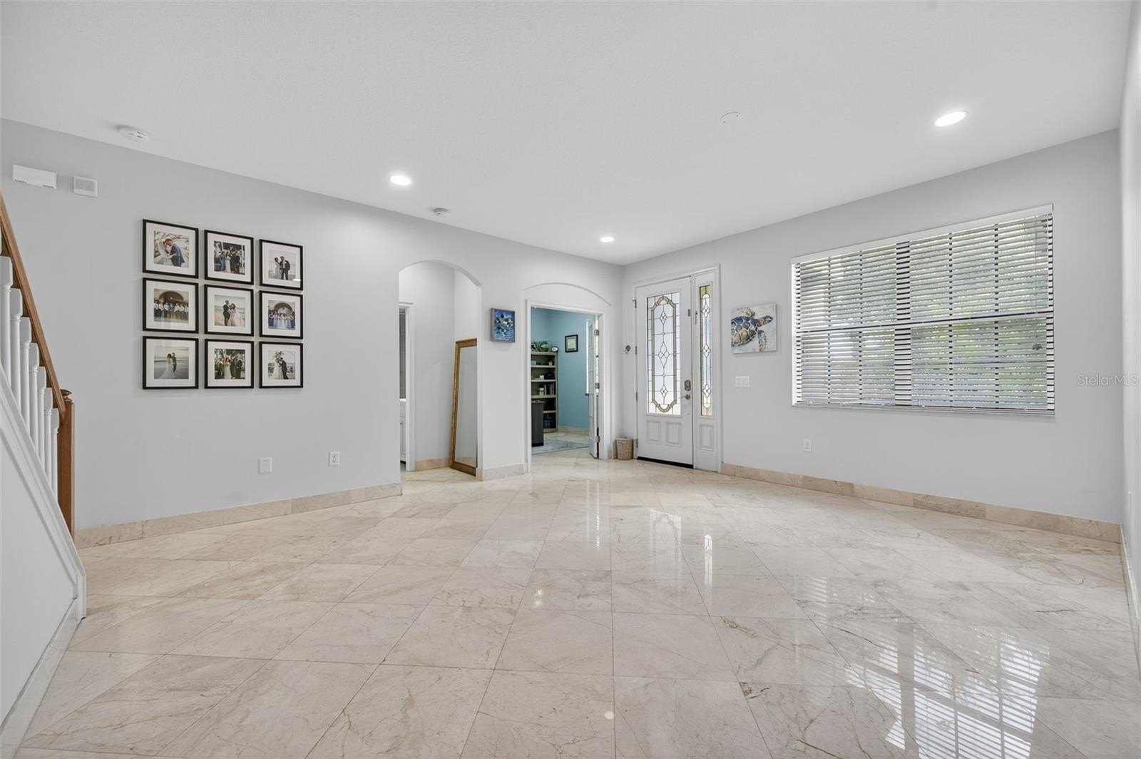 Step inside to soaring ceilings, elegant marble floors, and neutral paint that create a light, open, and sophisticated atmosphere. The spacious layout includes a separate formal dining room and an expansive kitchen/living combo perfect for both entertaining and everyday living.