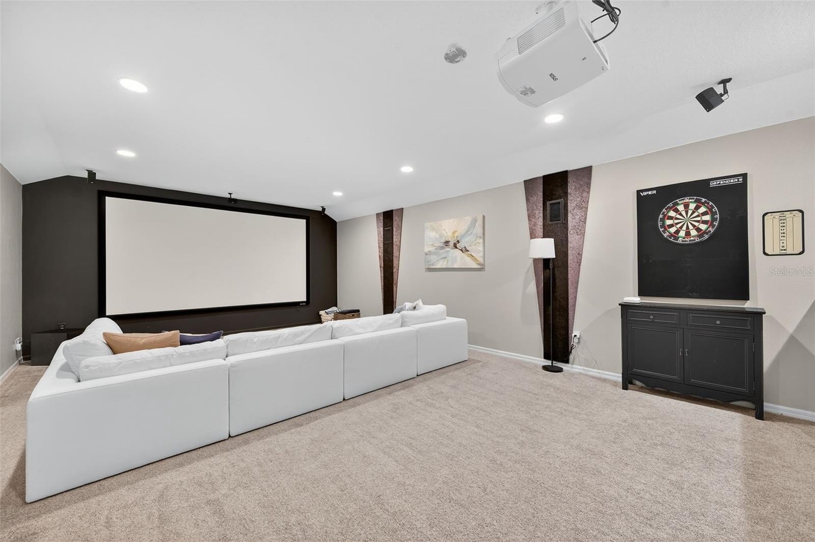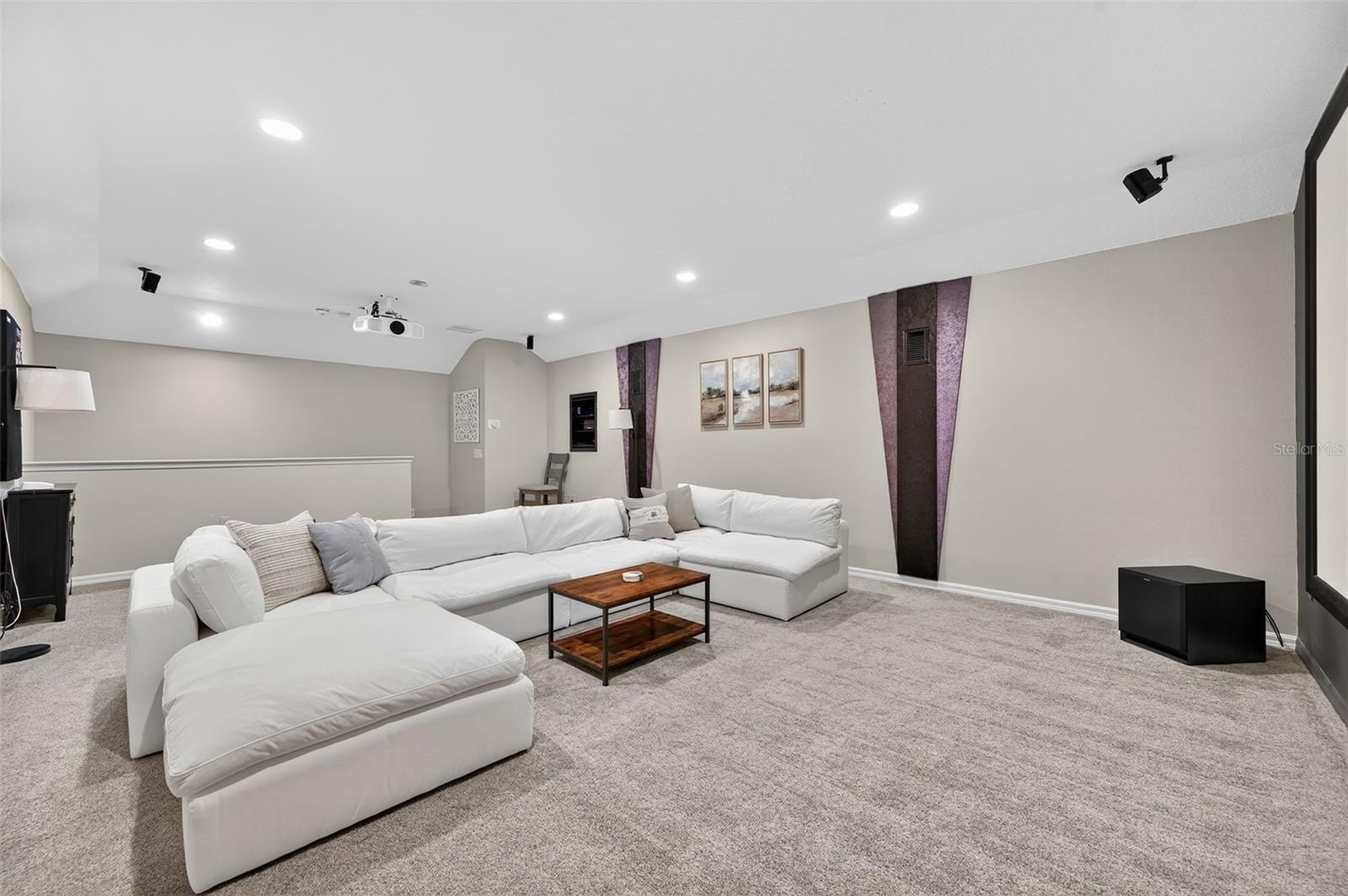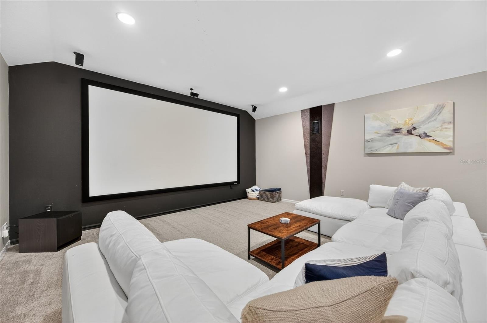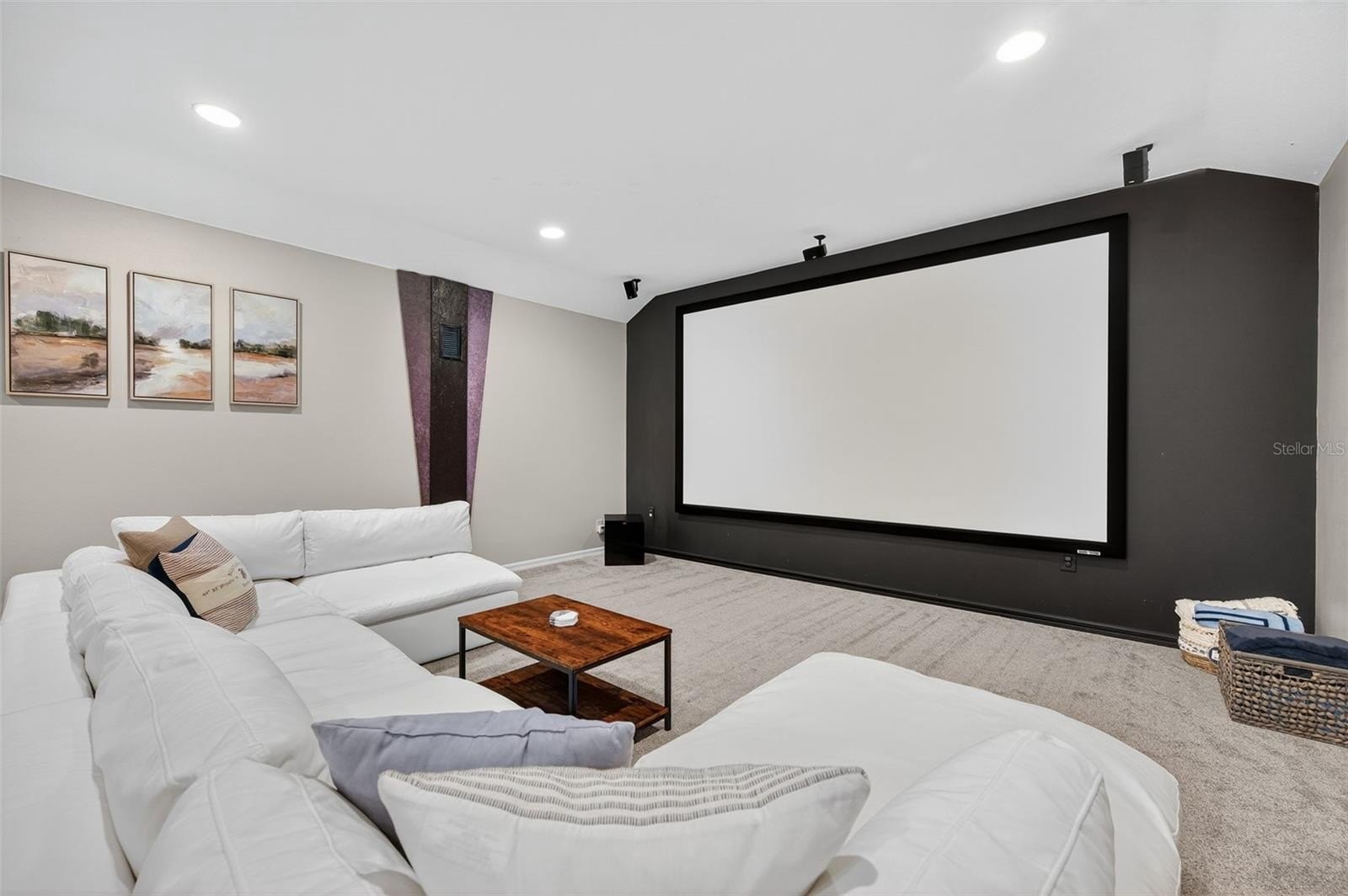Upstairs, the bonus room currently serves as a home theater, offering the ultimate movie night experience or the perfect spot for a game room or second living area. The dedicated office adds even more flexibility for remote work, playroom, or library.