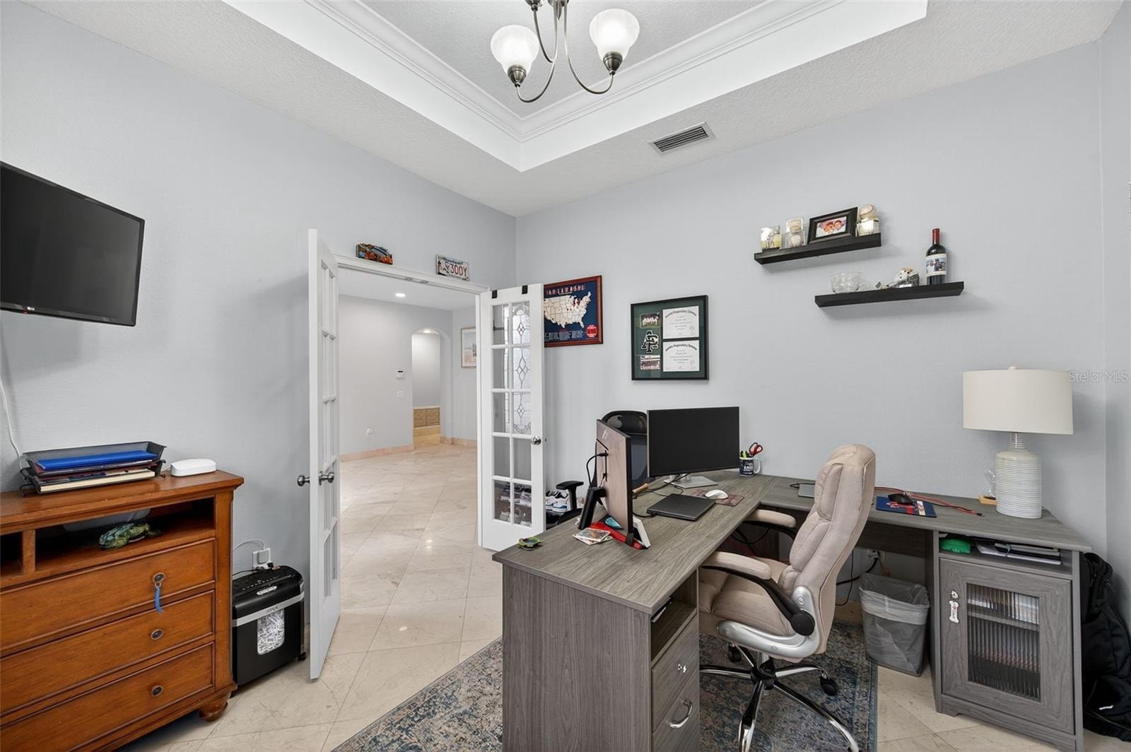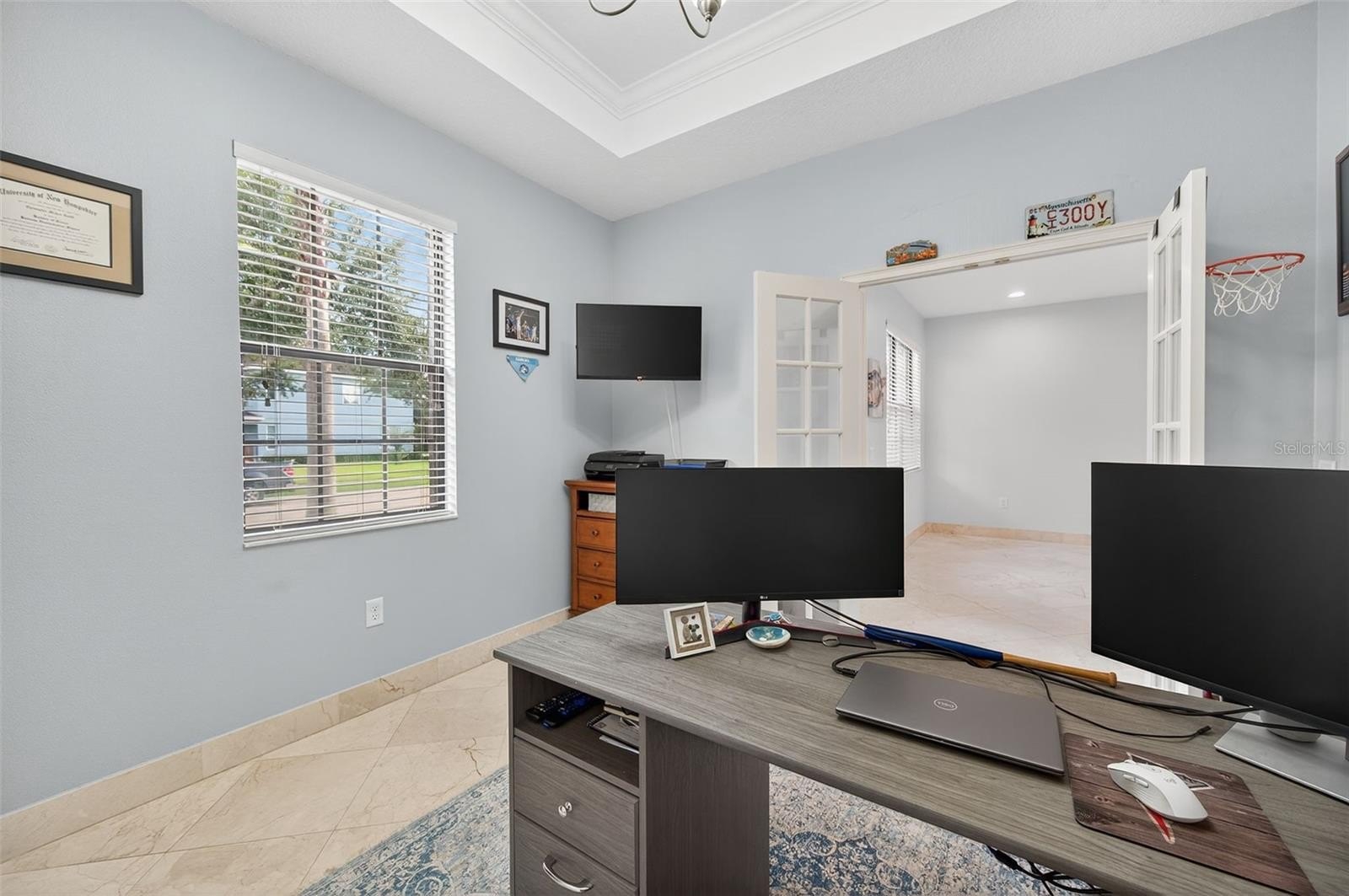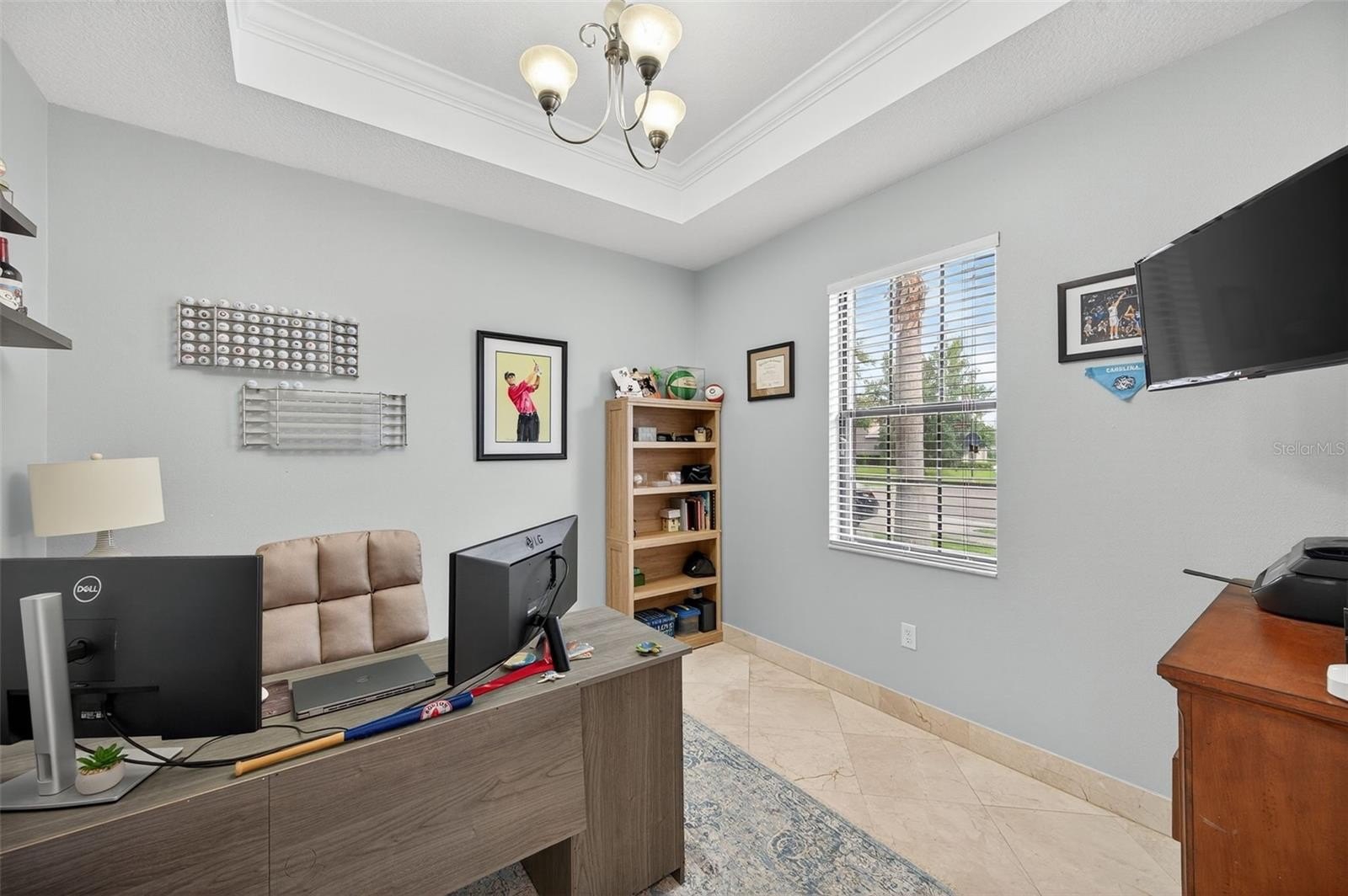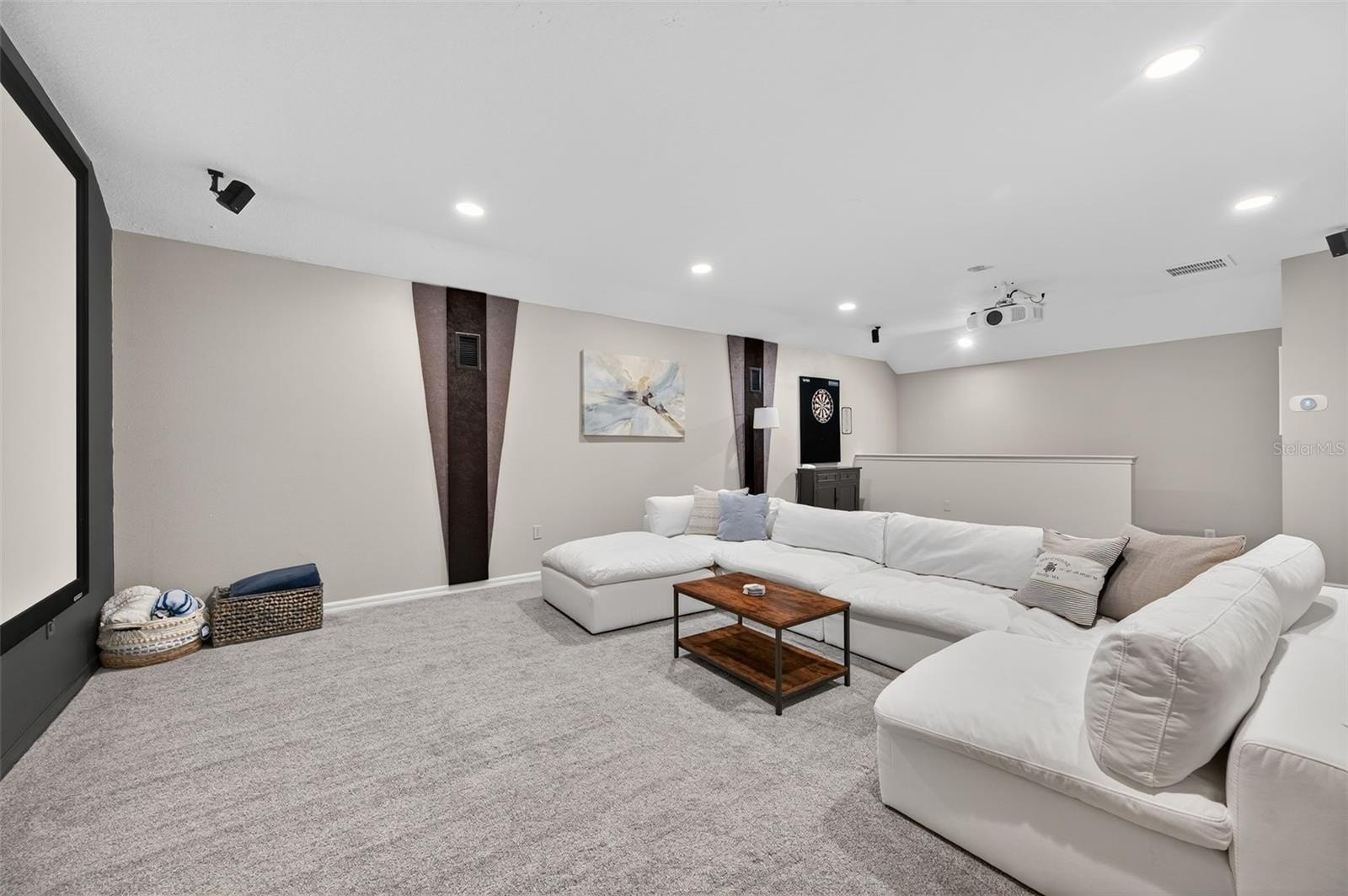 Upstairs, the bonus room currently serves as a home theater, offering the ultimate movie night experience or the perfect spot for a game room or second living area. The dedicated office adds even more flexibility for remote work, playroom, or library.