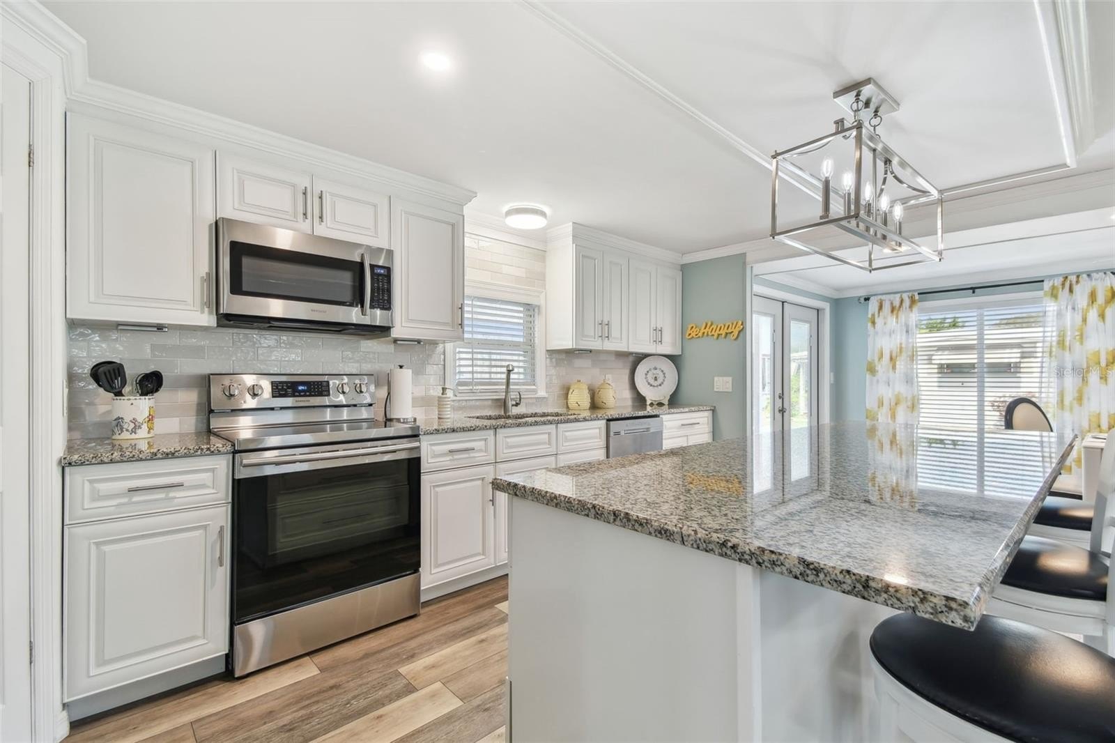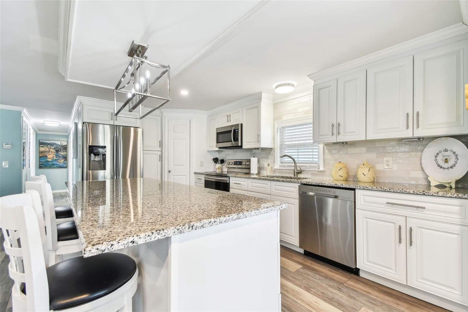WOW WOW WOW! THIS HOME HAS BEEN COMPLETELY UPDATED FROM FLOOR TO CEILINGS!! This exquisite 2 bedroom, 2 bathroom doublewide home has been thoughtfully updated to meet the needs of today's discerning homeowner. Experience the perfect combination of style, functionality, and comfort in a residence that truly feels like home. As you step inside, you are greeted by a spacious and light-filled living area, perfect for entertaining guests or simply relaxing in style. The modern kitchen is a chef's delight, featuring high-end Stainless Steel appliances, sleek Granite countertops, and ample storage space. Designed for both entertaining and everyday living, the expansive living space seamlessly connects to the dining area and the Kitchen with custom cabinetry ensuring a warm and inviting atmosphere. The Kitchen is the heart of this home with state-of-the-art appliances, Granite Island, double sink, dishwasher, wine bar and custom cabinetry, including a large closet pantry making meal preparation a delight. You only need your toothbrush and Flip Flops because this home is being sold furnished with Designer Finishes Throughout! From the freshly painted warm and inviting color tones, quality furniture, custom cabinetry, and hand-selected fixtures, are just some of the great interior features. Retreat to the primary bedroom featuring a generous walk-in closet and an en-suite bathroom equipped with a Walk in shower, modern fixtures and finishes. Recent upgrades include the Durable and stylish Waterproof Luxury Vinyl throughout, New appliances, New windows, All new Sub-Flooring, Finished drywall on the walls and ceilings, New plumbing, New Wiring throughout, New Electrical Panel, All new Lighting and that's just on the inside!! Enjoy maintenance free exterior all year round!! From the custom pavers in front to the Astro turf in the back and a newly painted sealcoat driveway, a huge shed for all your Florida toys that only leaves you all day to play!! Located in the highly desirable Pointe West age- qualified community... this home is just steps to the pool and clubhouse, minutes to dining, shopping, and recreational amenities including Lake Seminole and our Award winning beaches. Discover the charm and convenience of Pointe West Resident Owned Community ...a vibrant and welcoming mobile home community designed for comfortable, community living. Whether you're looking for a peaceful retreat or an active lifestyle, this community offers beautiful homes, well-maintained grounds, and a Golf Cart friendly neighborhood atmosphere. Enjoy the perfect blend of privacy and convenience,Just 4 miles to our Award Winning Beaches,with easy access to major highways for a quick trip to Downtown St. Petersburg, Tampa or the airport.