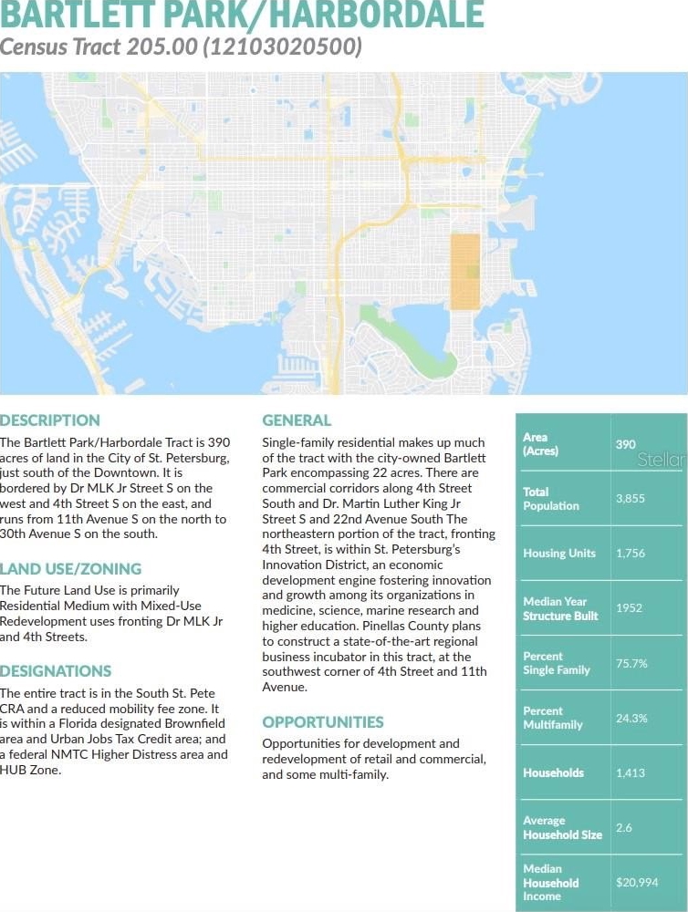 Incredible investment opportunity! Being offered for two months only or the sellers will move forward with the project themselves. Value-add triplex located in an Opportunity Zone and a HUB zone with CRT-1 zoning and NTM-1 overlay meaning tons of use options and increased density along with amazing tax efficiencies. All three units are 2BR/1BA units. Additionally. the property is BLOCK construction, NON-flood zone, and comes with a 2 car garage. The remodel is already in progress with STAMPED plans! The City of St. Petersburg has APPROVED $98,000 in transferrable grant funding through the Rebates for Affordable Residential Rehabs (RRR) program toward the total remodel cost of $244,700 with a general contractor ready to start right away. In return, the property qualifies for 15 years of affordable housing rentals. Current affordable rent for 2BR units in 33705 is $2,343/month, meaning this property would generate around $85,000 in income per year and almost half of the remodel cost would be covered through the grant program. Call today and seize one of the most lucrative multifamily opportunities!