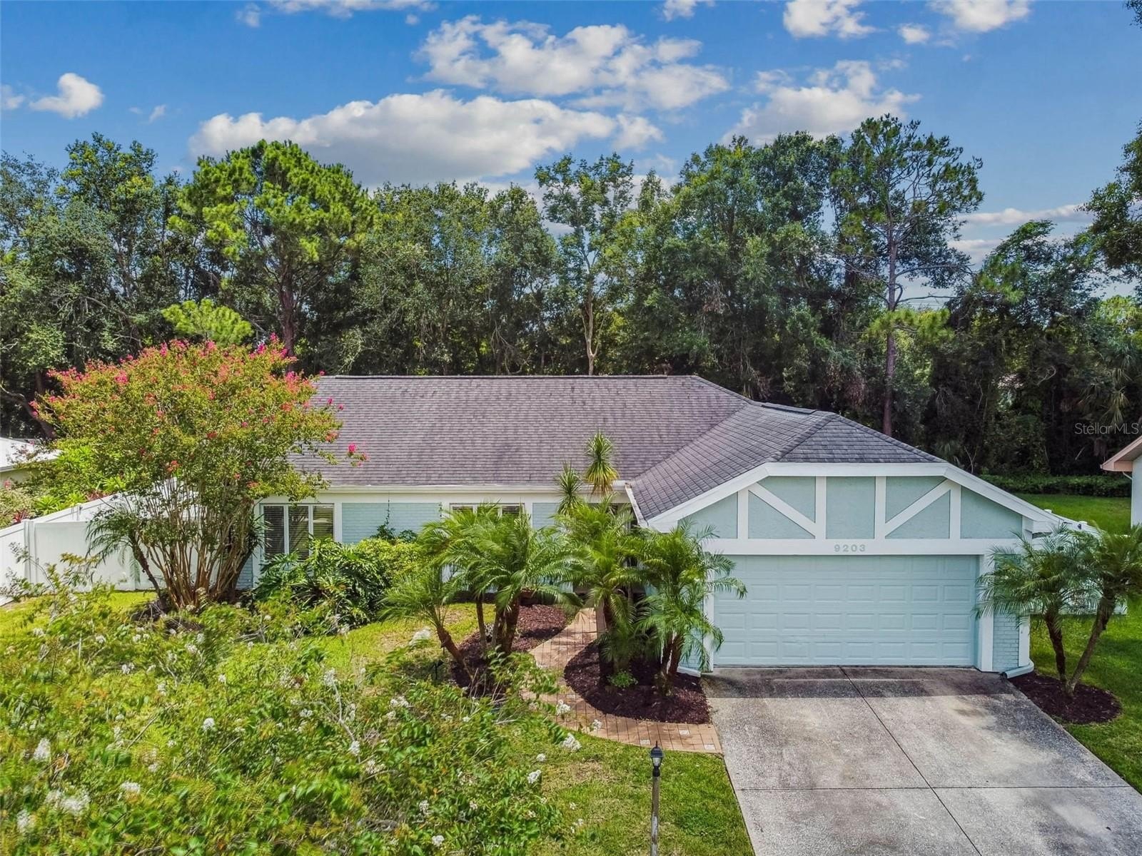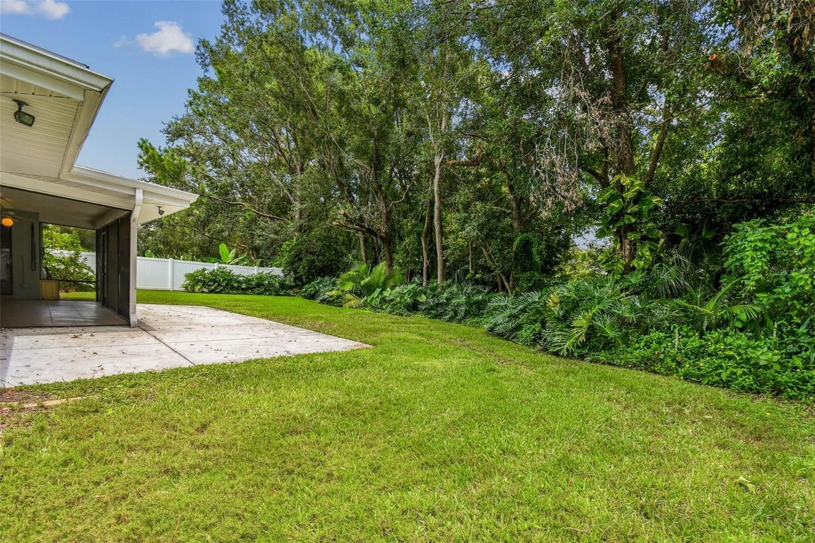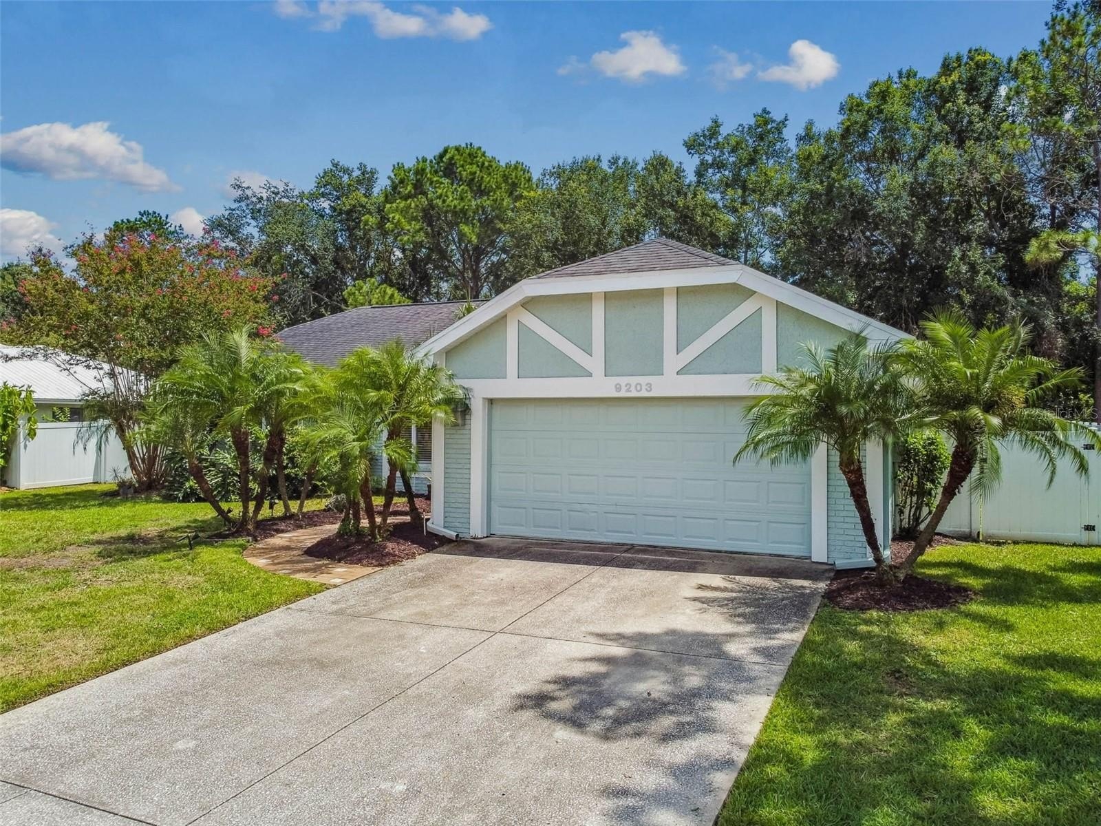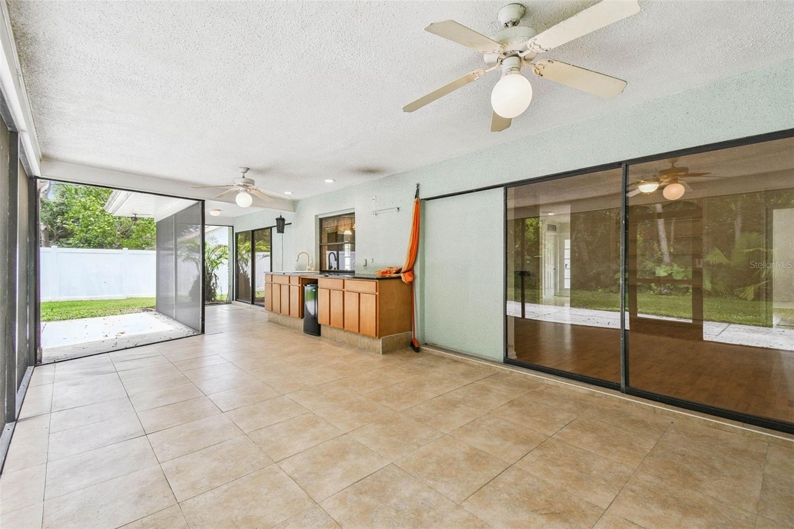 Located in the lovely community of Pebble Creek Village in New Tampa, this charming single story home offers 3 bedrooms, 2 bathrooms and generous living spaces throughout. The extra large living room is perfect for relaxing or entertaining and is conveniently connected to a stylish wet bar-ideal for hosting or enjoying an evening cocktail. A bright dining area with sliding glass doors leads to the over-sized screened lanai, featuring a built in sink and minifridge for outdoor entertaining. The expansive kitchen is equipped with a breakfast bar, newer appliances, window to the porch and open views into the separate family room, making it the true heart of the home. The spacious owner's suite is a private retreat, boasting an ensuite bath and walk in closet. Two additional bedrooms are separate with their own full bathroom, providing comfort and privacy for family or guests. Set on a fenced 86 x 112 lot, the back of the property provides mature trees for ambiance and privacy. Take advantage of the ample greenspace for outdoor living or family sports. The indoor laundry room includes washer, dryer, large sink basin and cabinets galore for all your storage needs. Enjoy all the conveniences of Pebble Creek living-just minutes to schools, shopping, restaurants and major interstates for easy commutes.